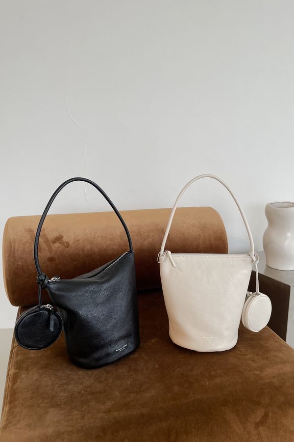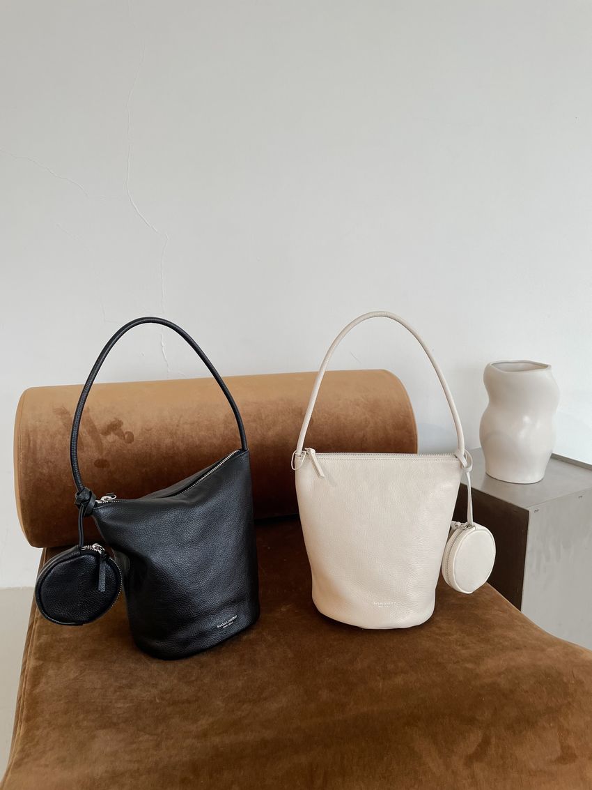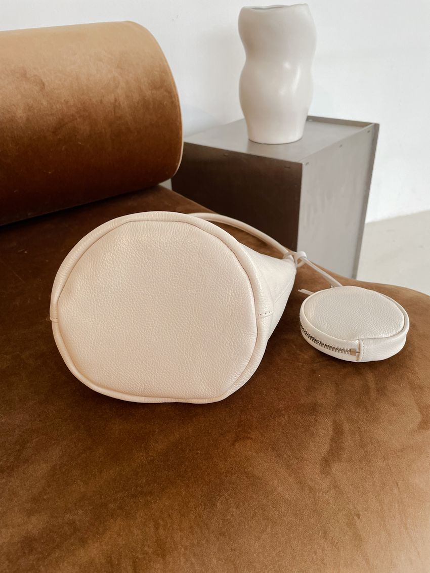 > 單提帶牛皮水桶包(附掛飾小圓包)(特)(直播款)