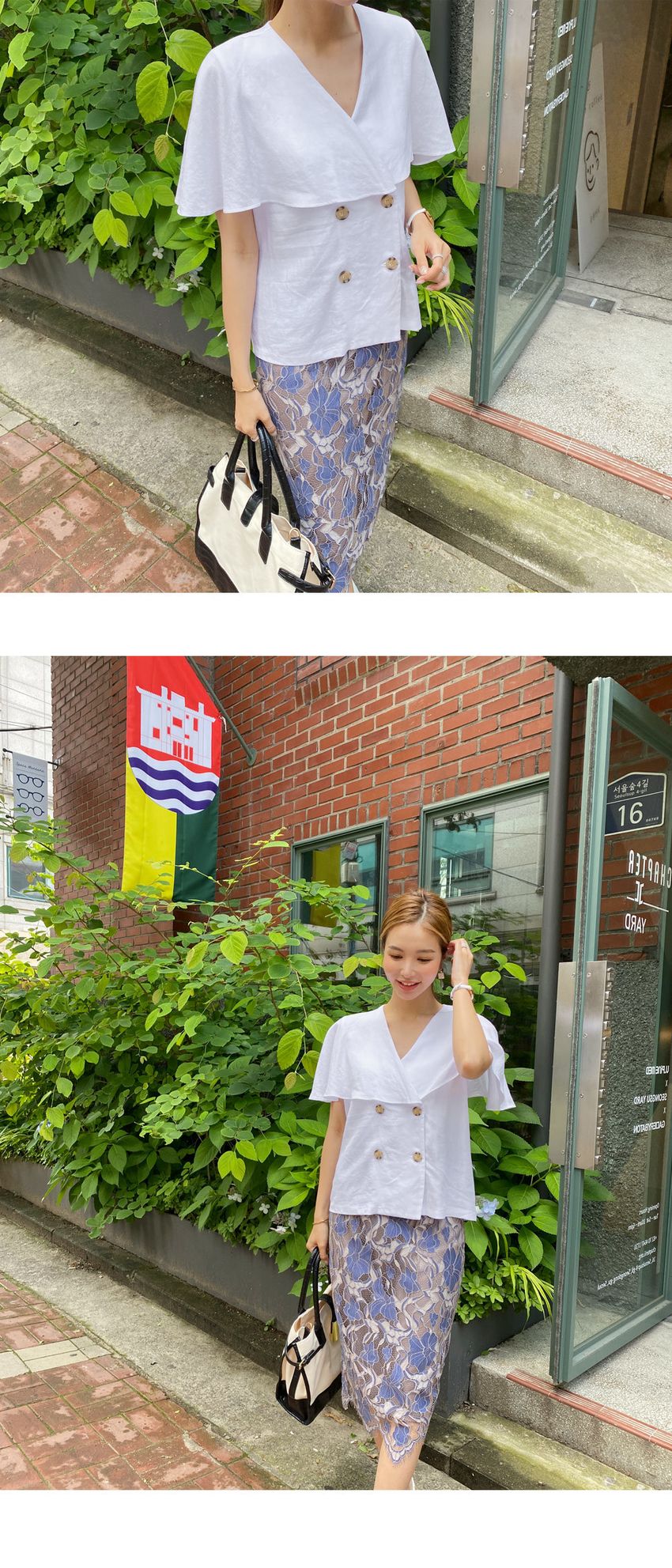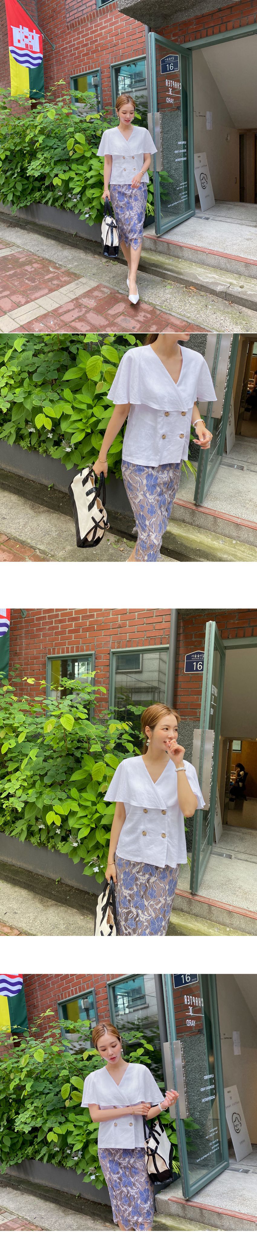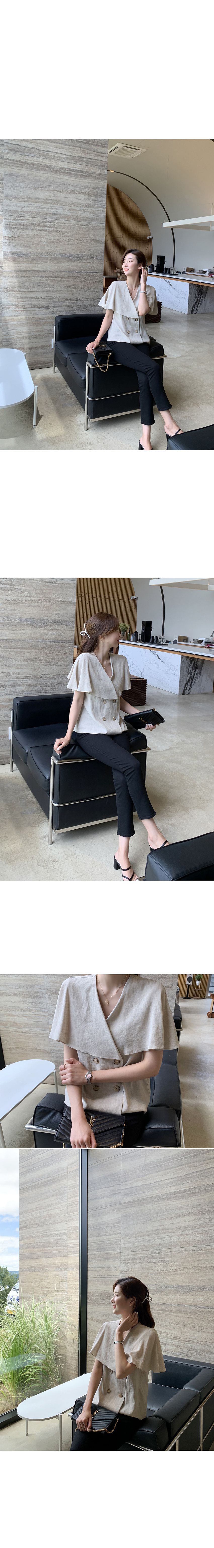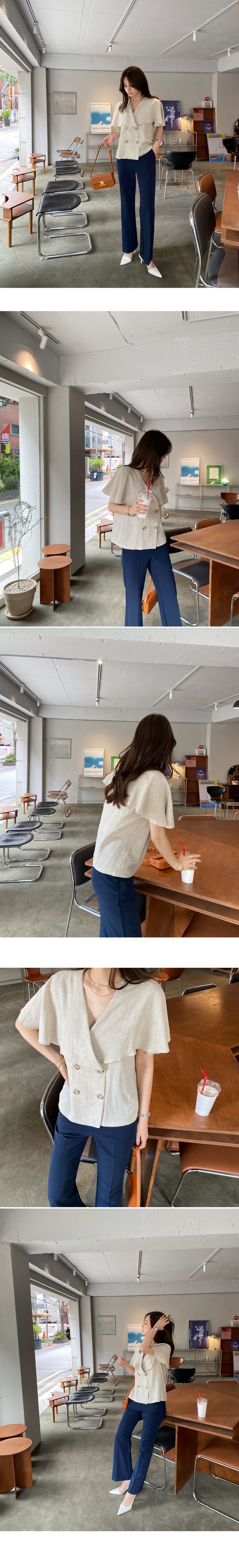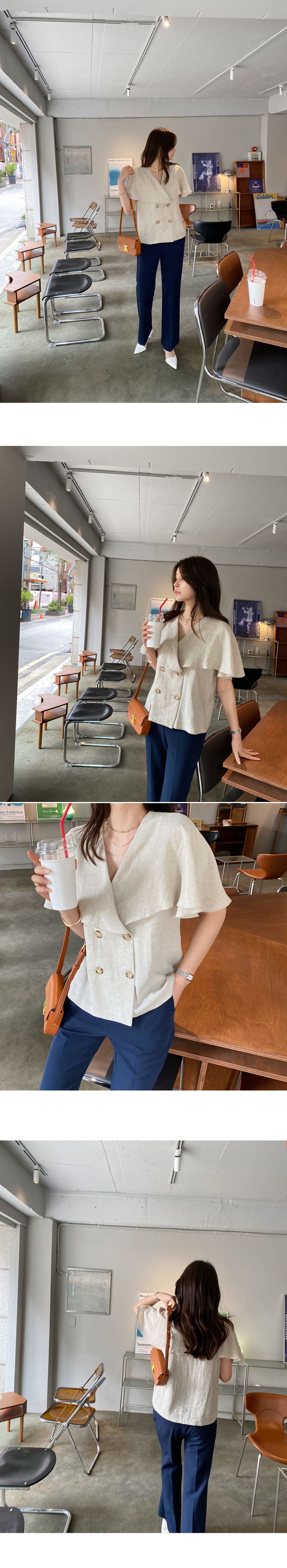 40%linen 60%tencel這款設計很別出新意V領交錯雙排釦設計大圓領像小斗篷批肩的感覺小斗篷剛好會遮住手臂最肉的地方 穿起來不會顯壯搭配裙裝或褲裝都可以呈現不一樣的風格這款領口沒有暗釦 直接穿會建議要搭配內搭避免彎腰會曝光或是建議要買這件的話 可以試穿以後 以自己的身形在領口適當的地方縫一顆暗釦 就可以直接穿不怕曝光了