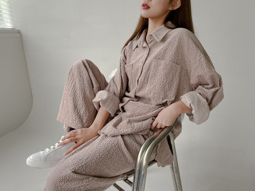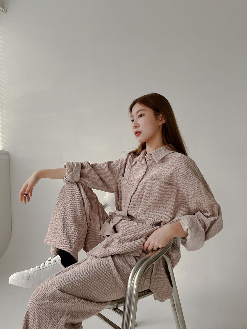 燈心絨坑條休閒套裝(特)