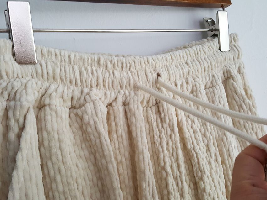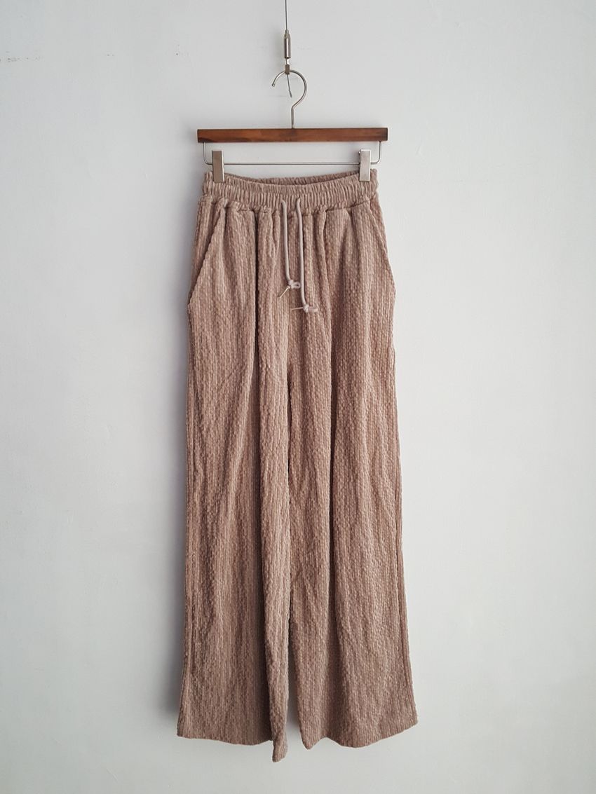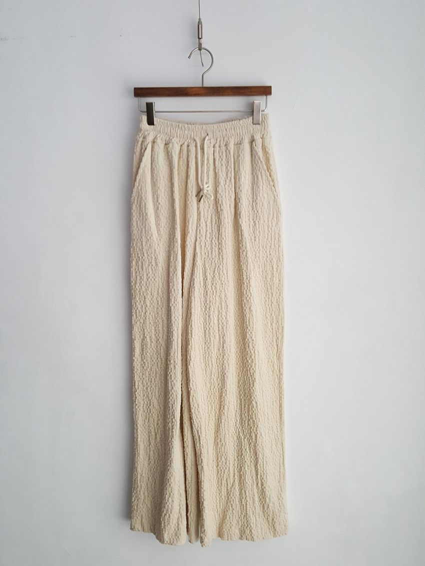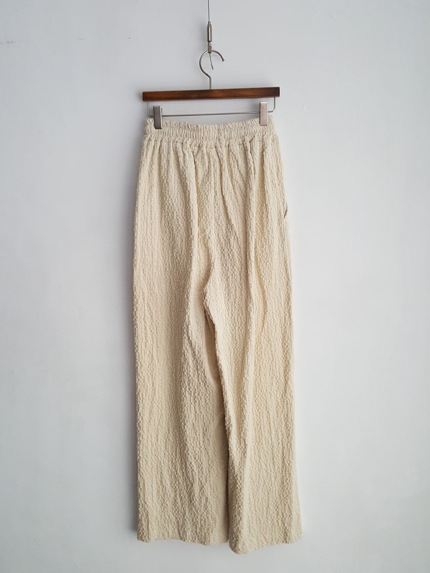 下身褲頭整圈鬆緊的直筒落地褲