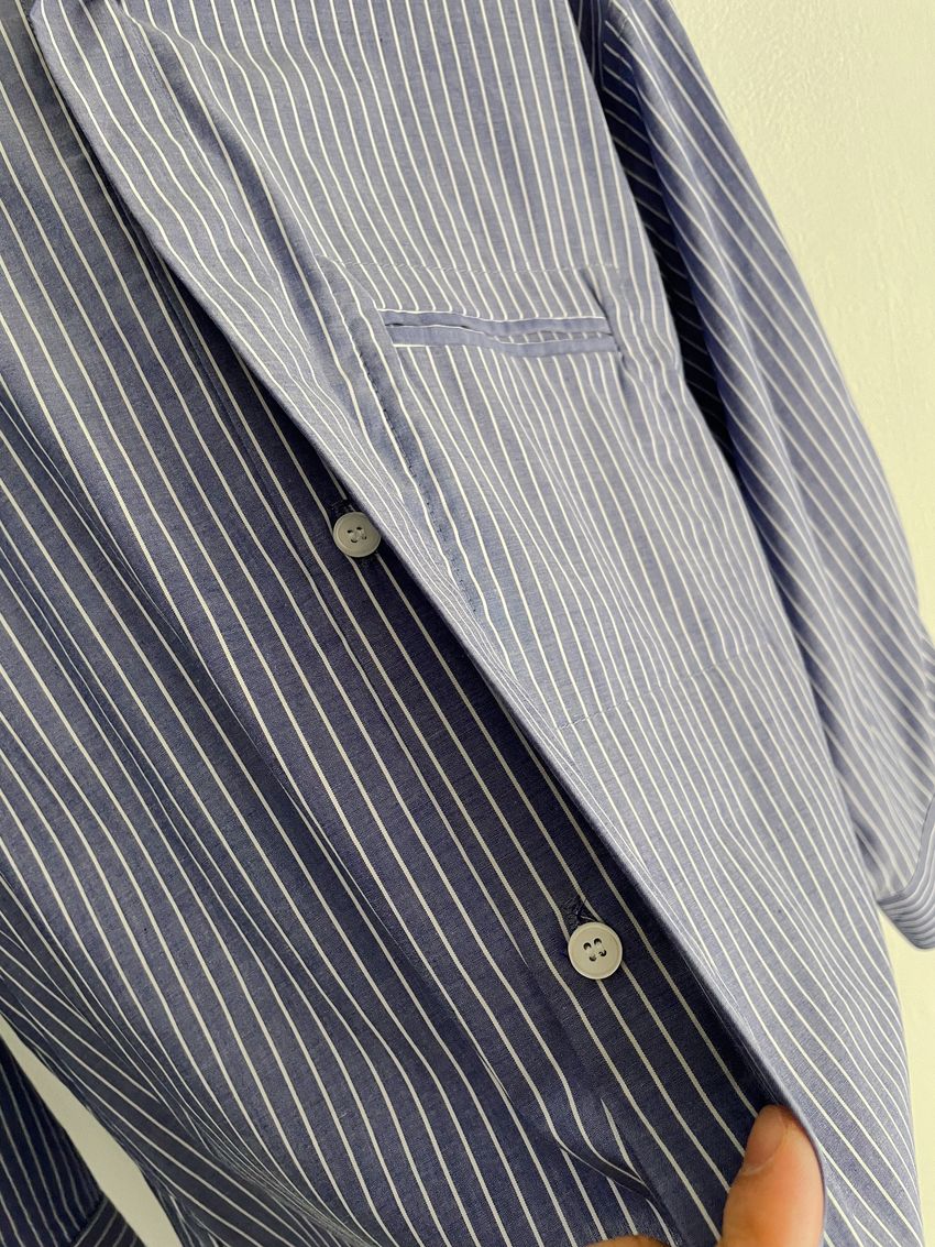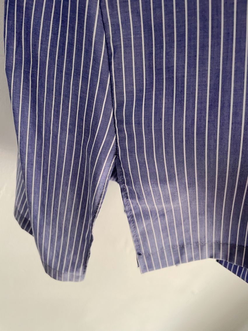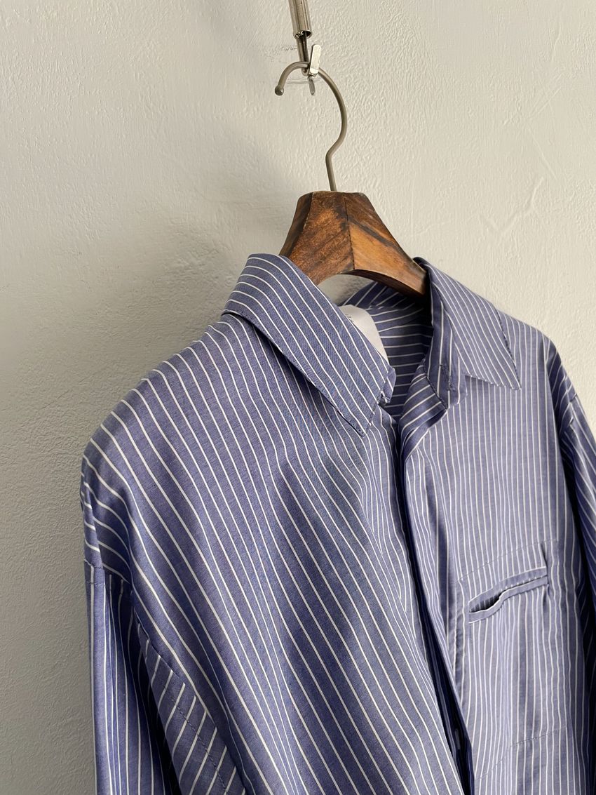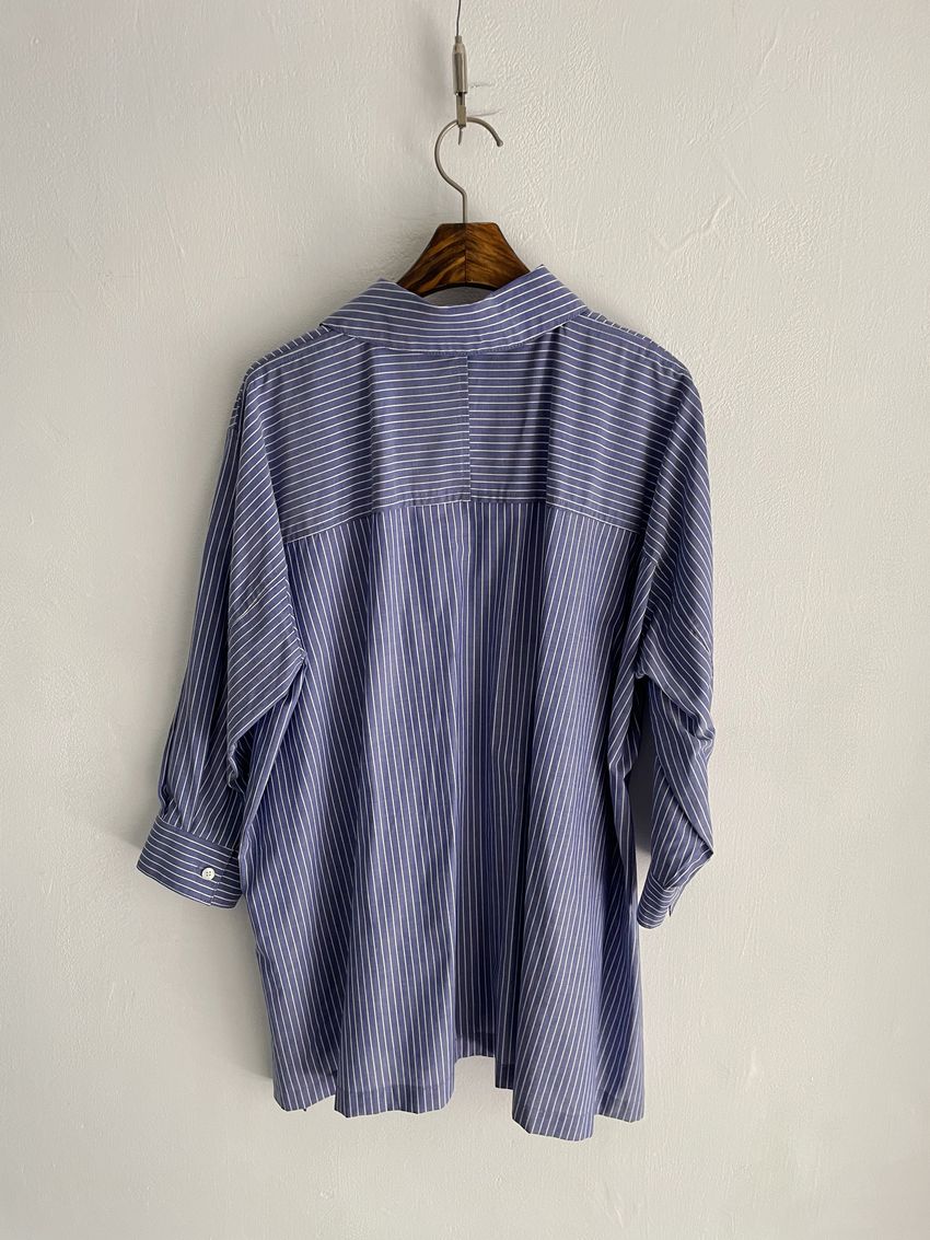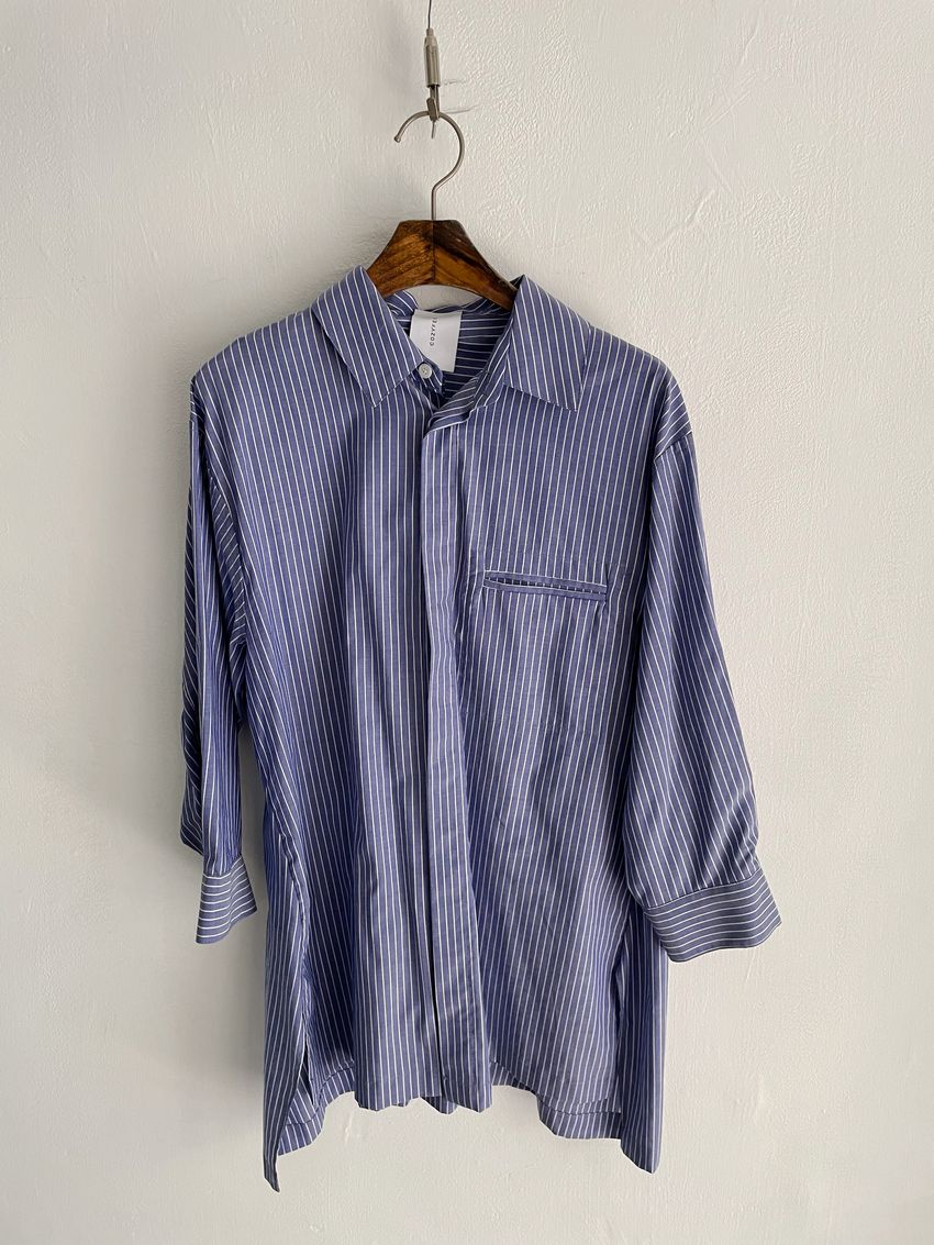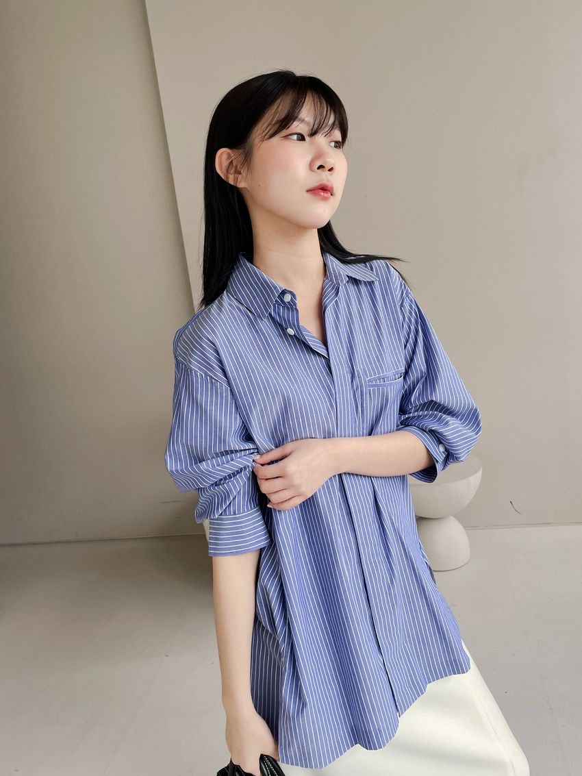 > (條紋)斜角剪裁隱藏釦襯衫(直播影片)