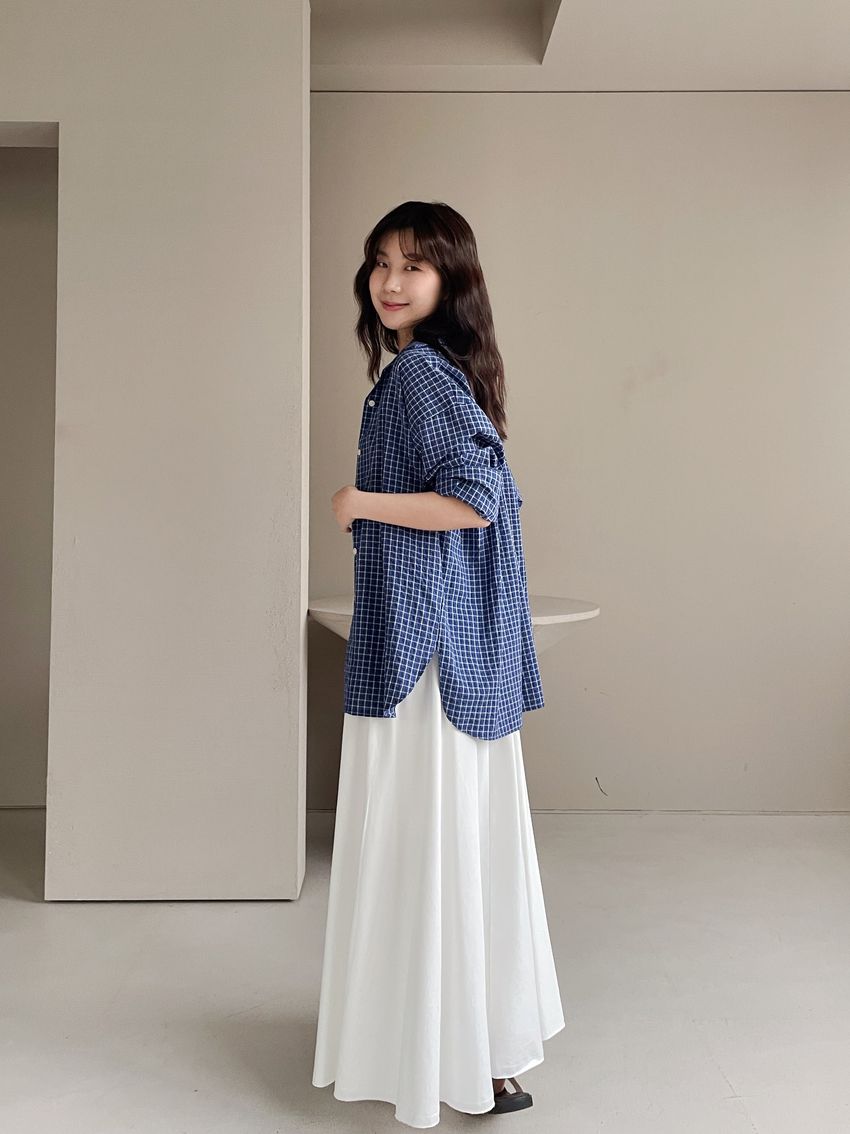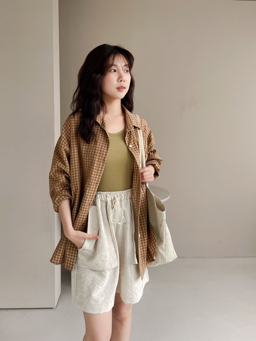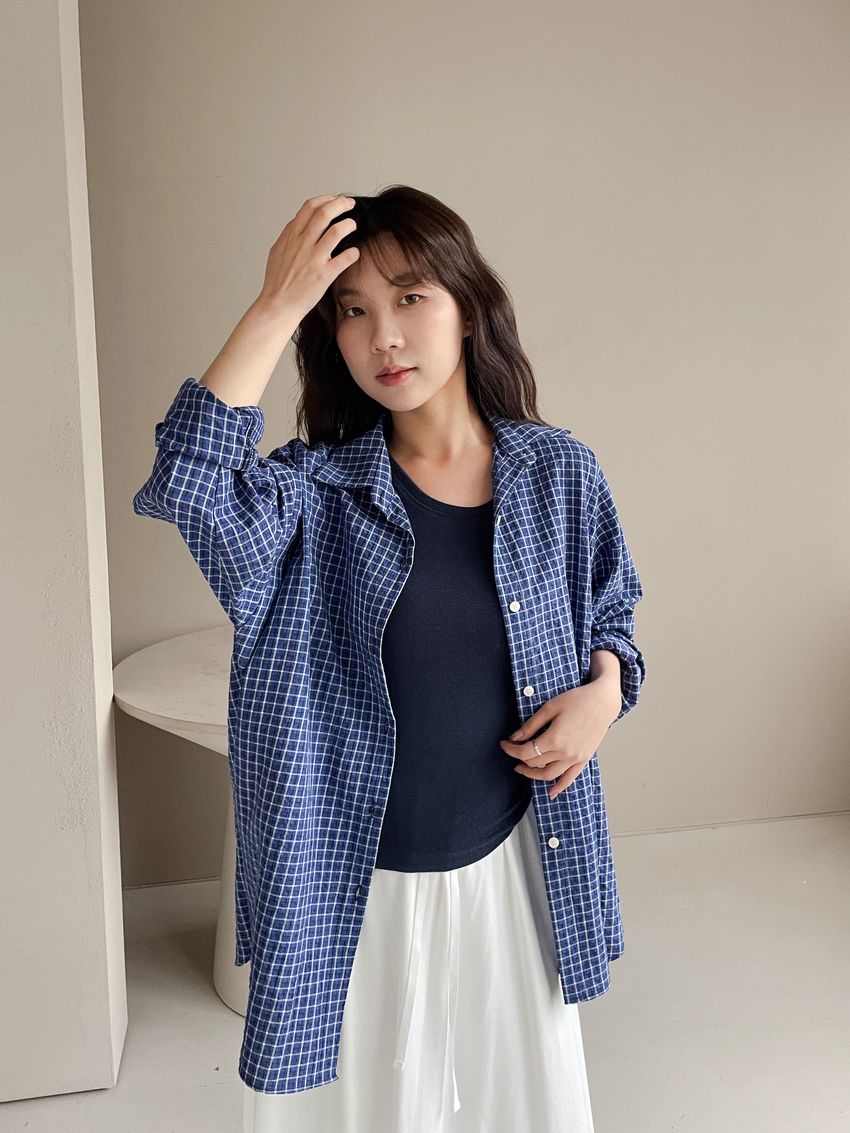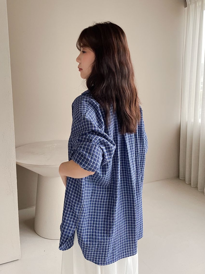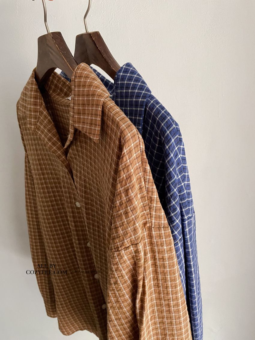 > 日常格紋泡泡紗襯衫(直播款)