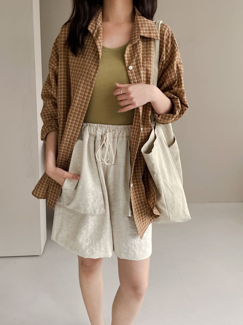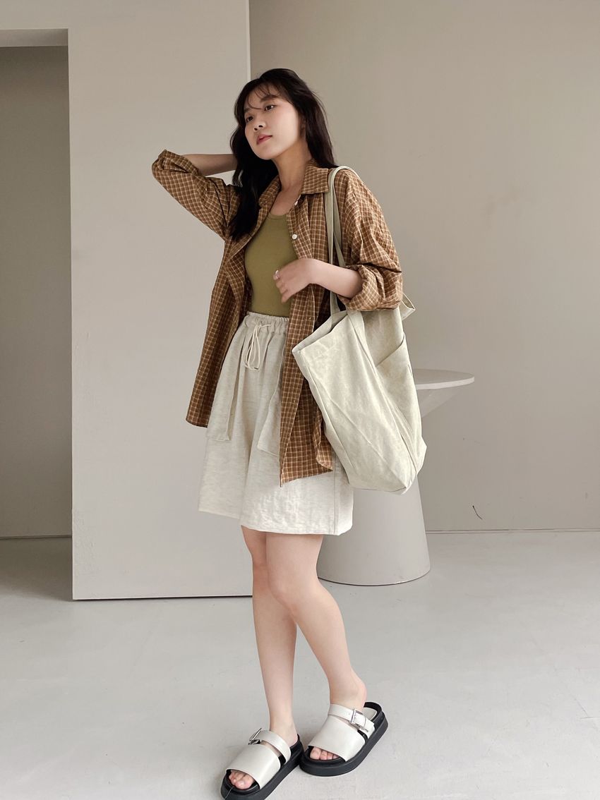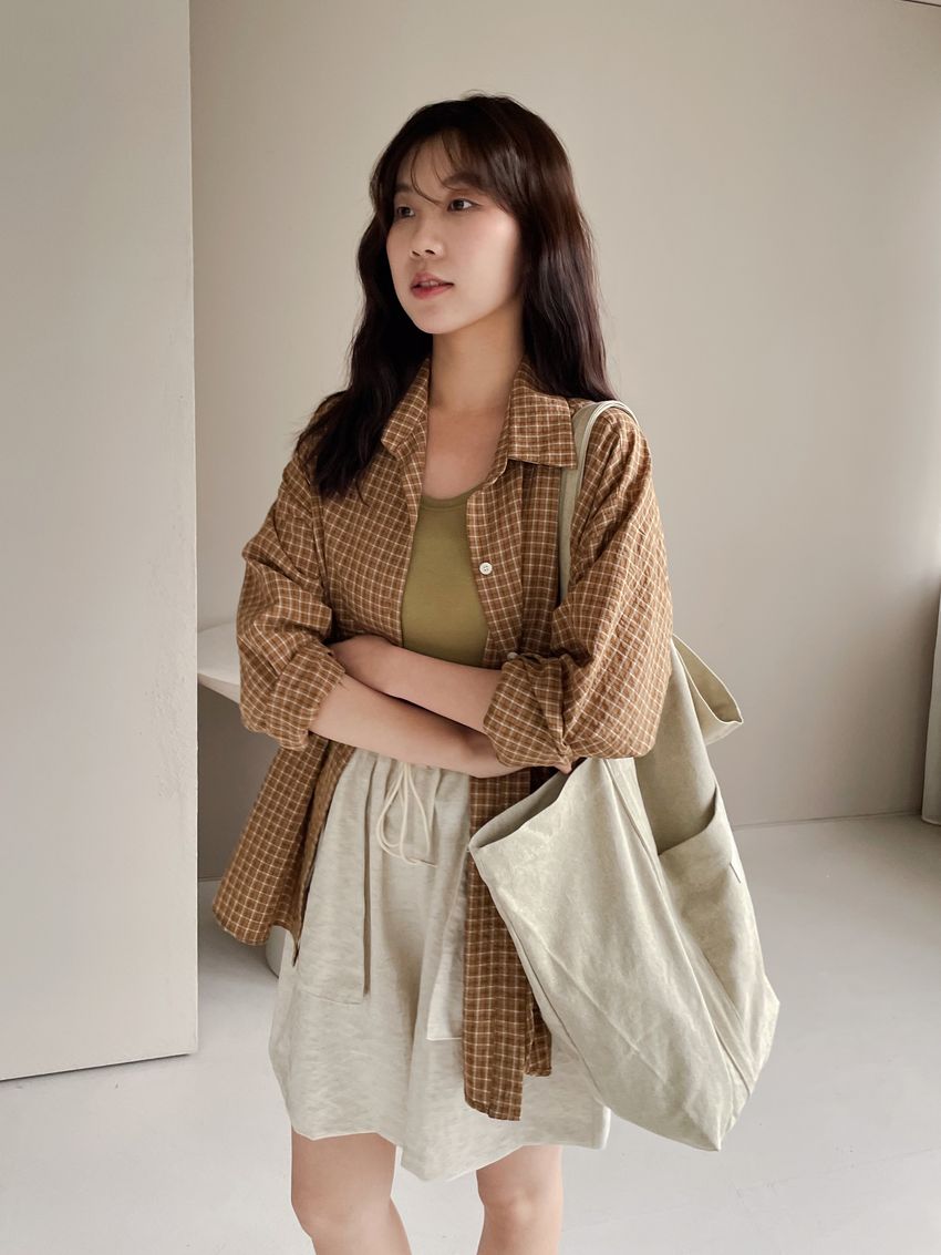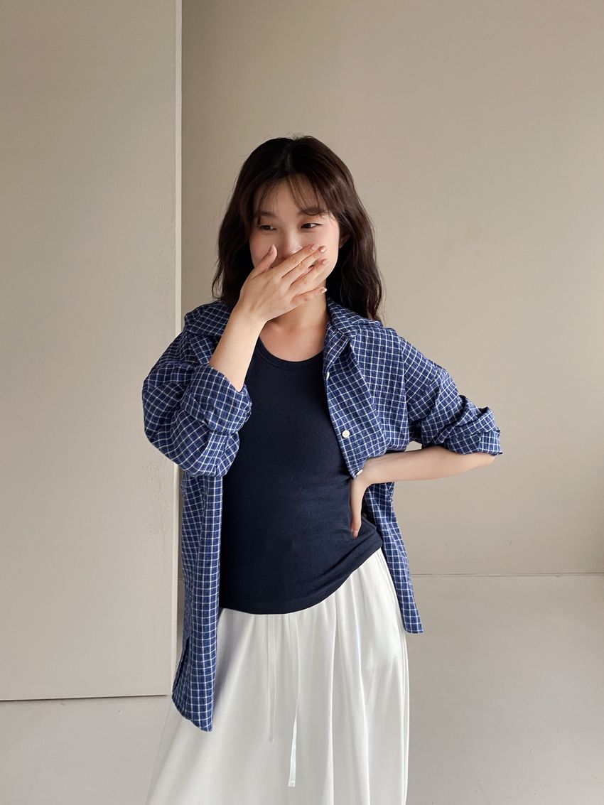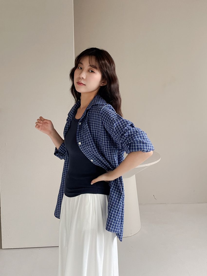 > 日常格紋泡泡紗襯衫(直播款)