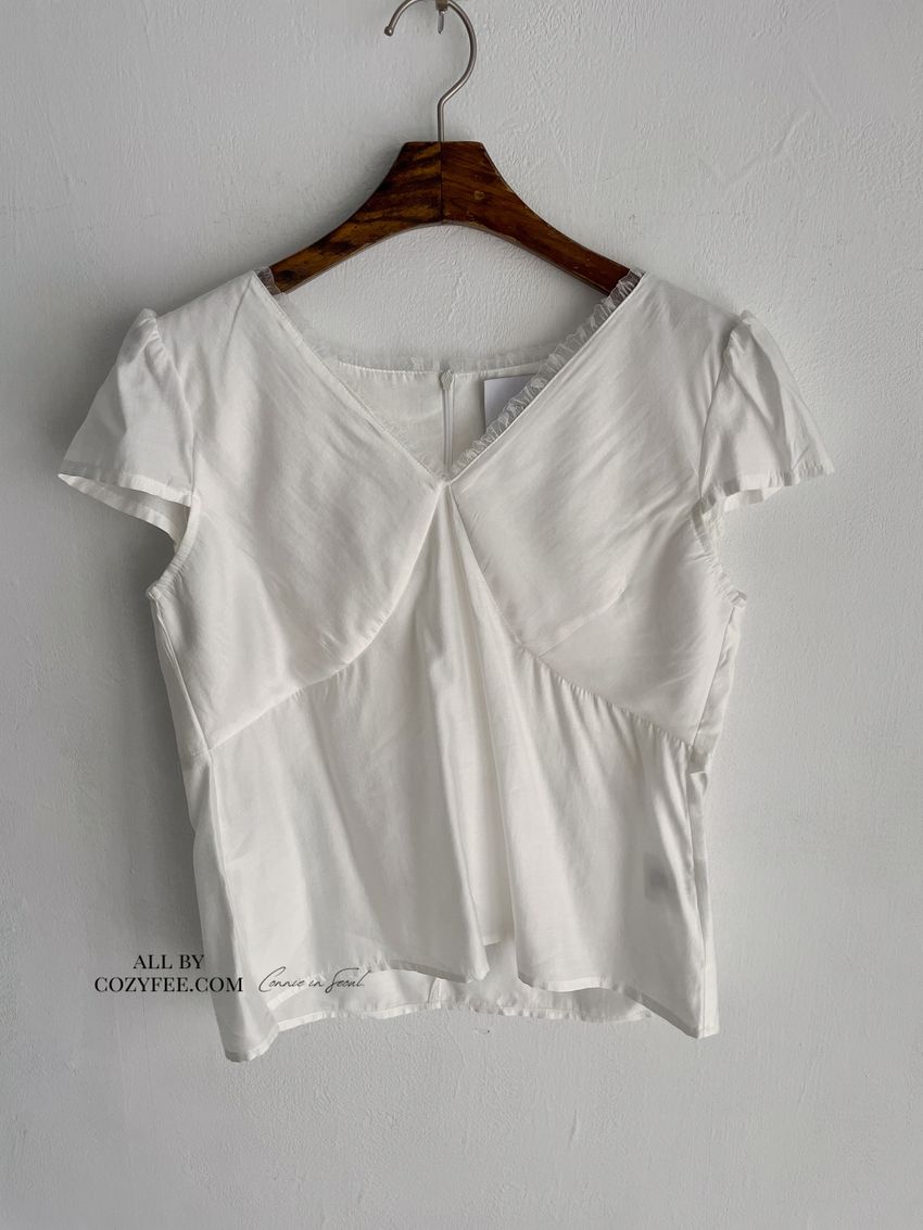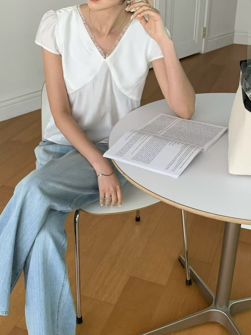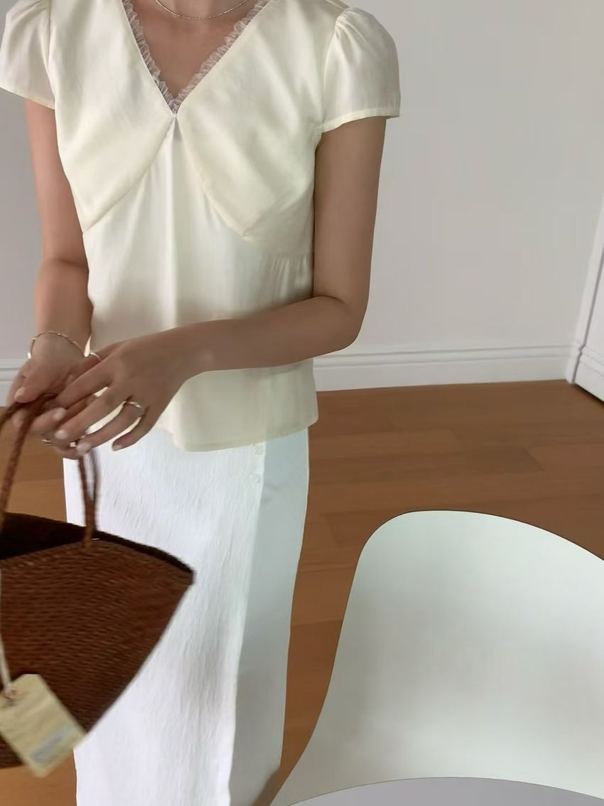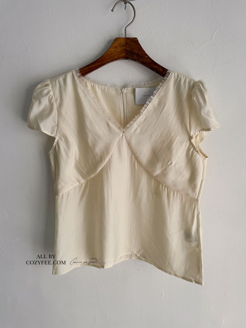 香頌V蕾絲滾領嫘縈衫(直播款)(特)