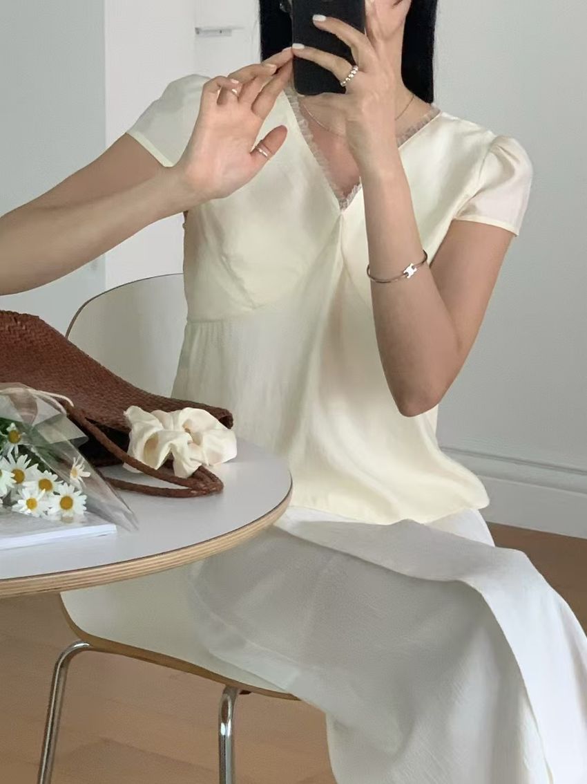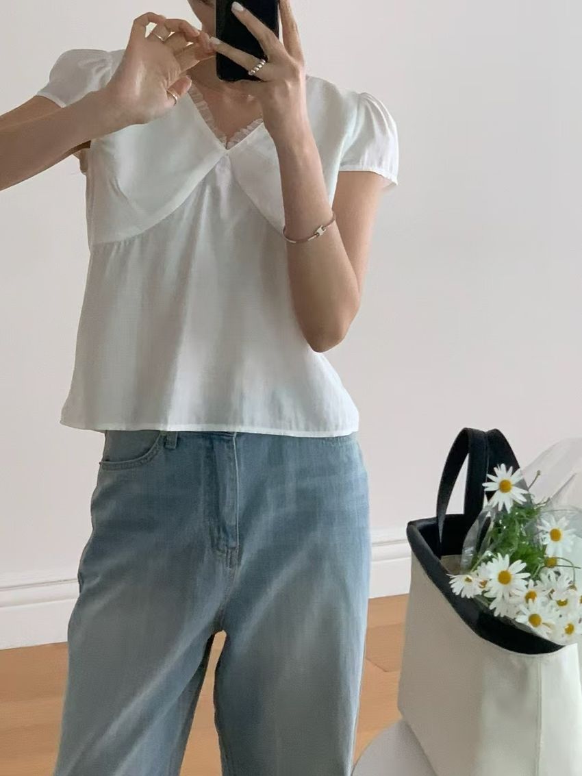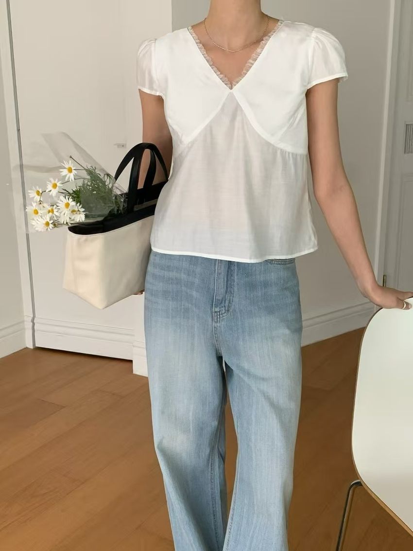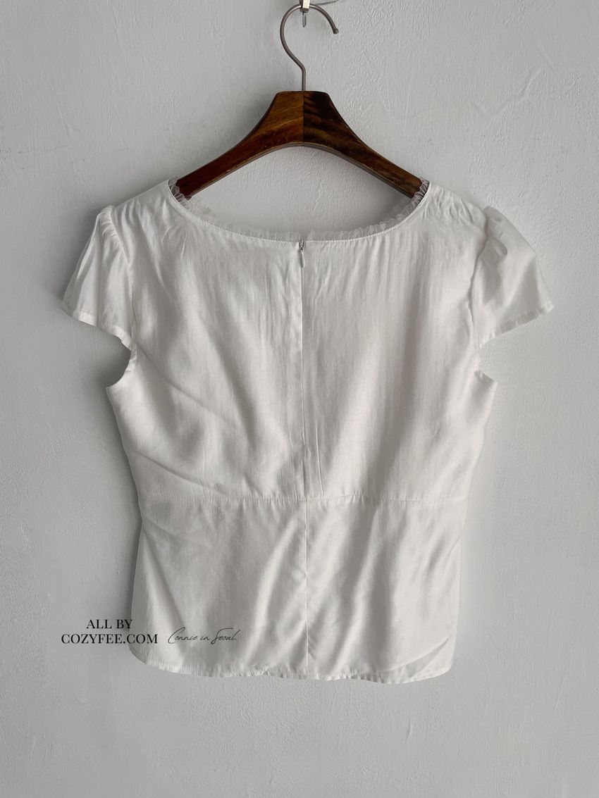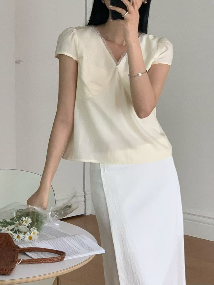 香頌V蕾絲滾領嫘縈衫(直播款)(特)