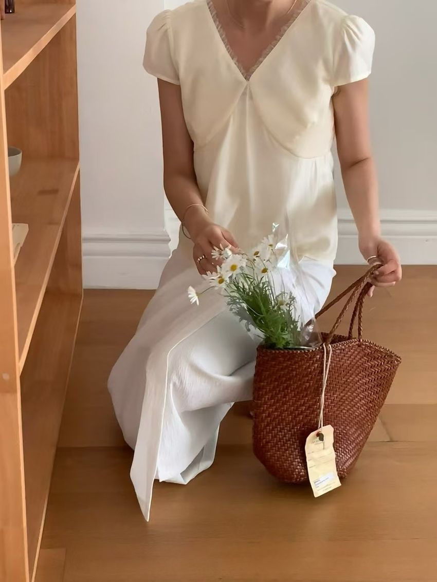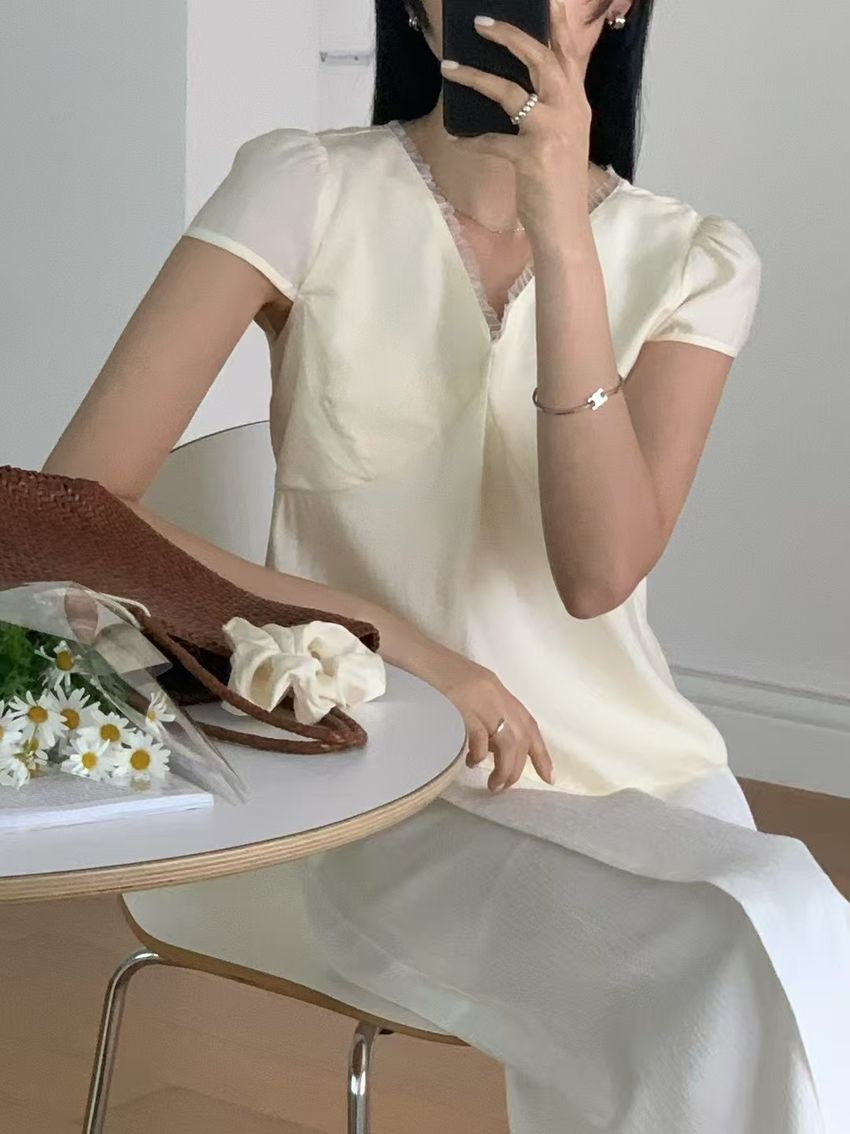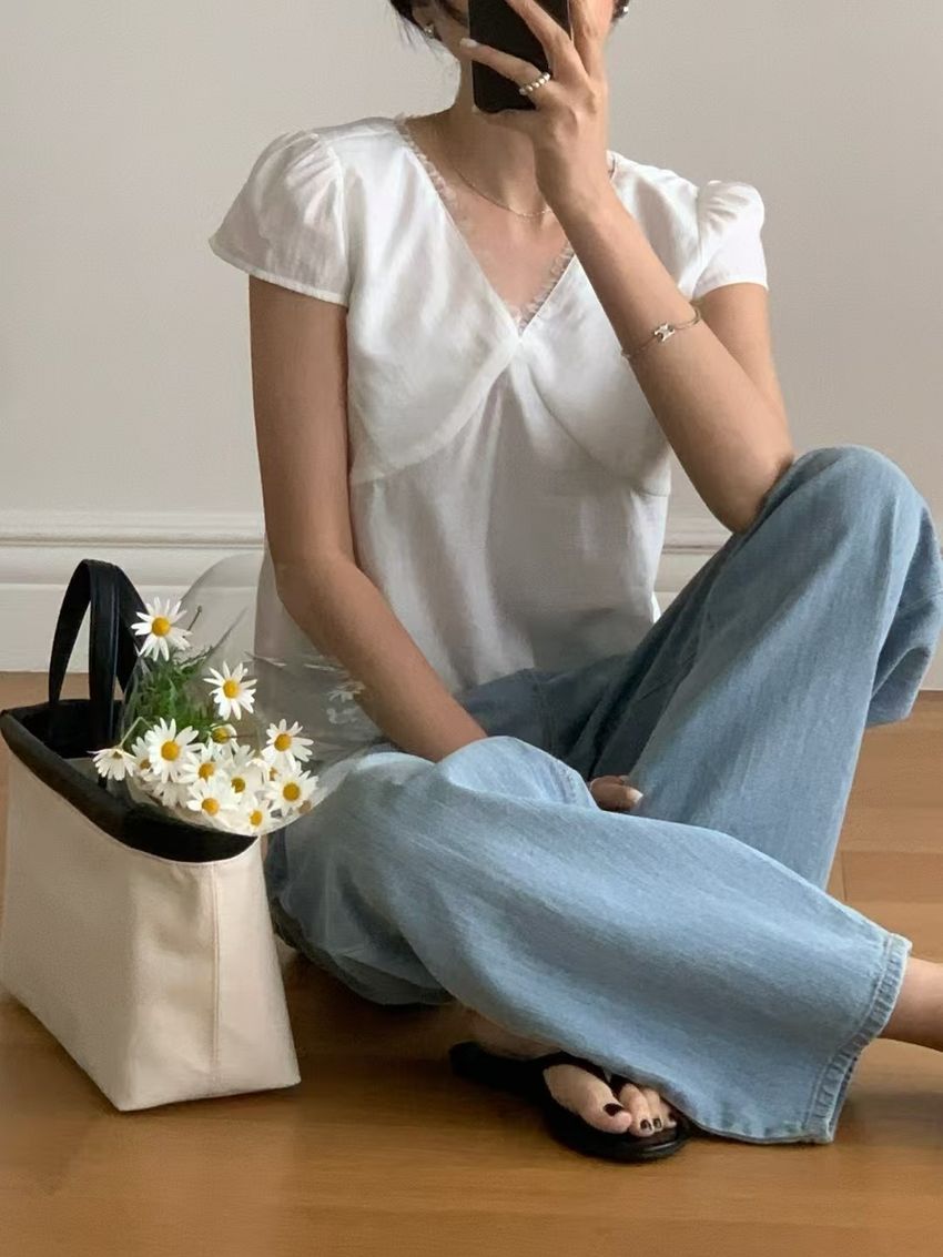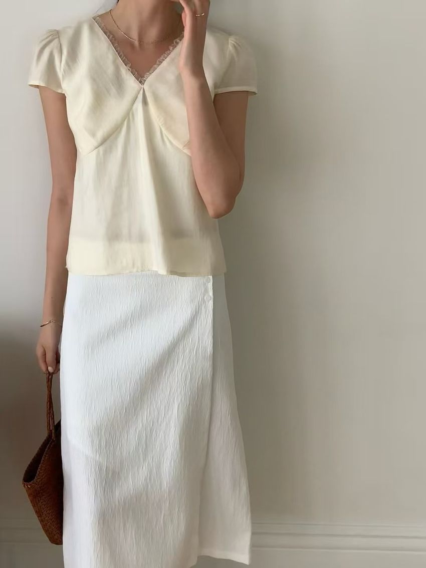 香頌V蕾絲滾領嫘縈衫(直播款)(特)
