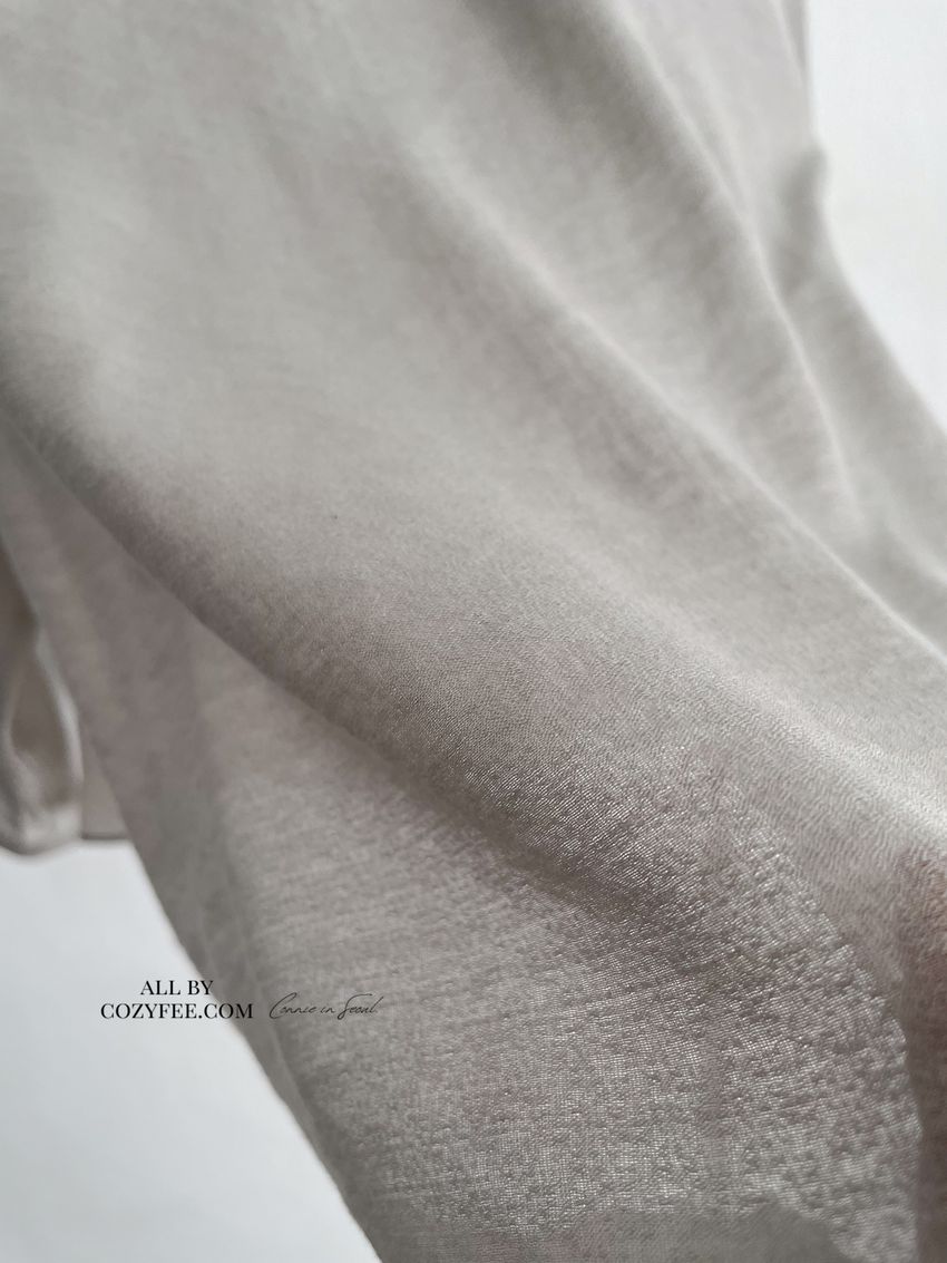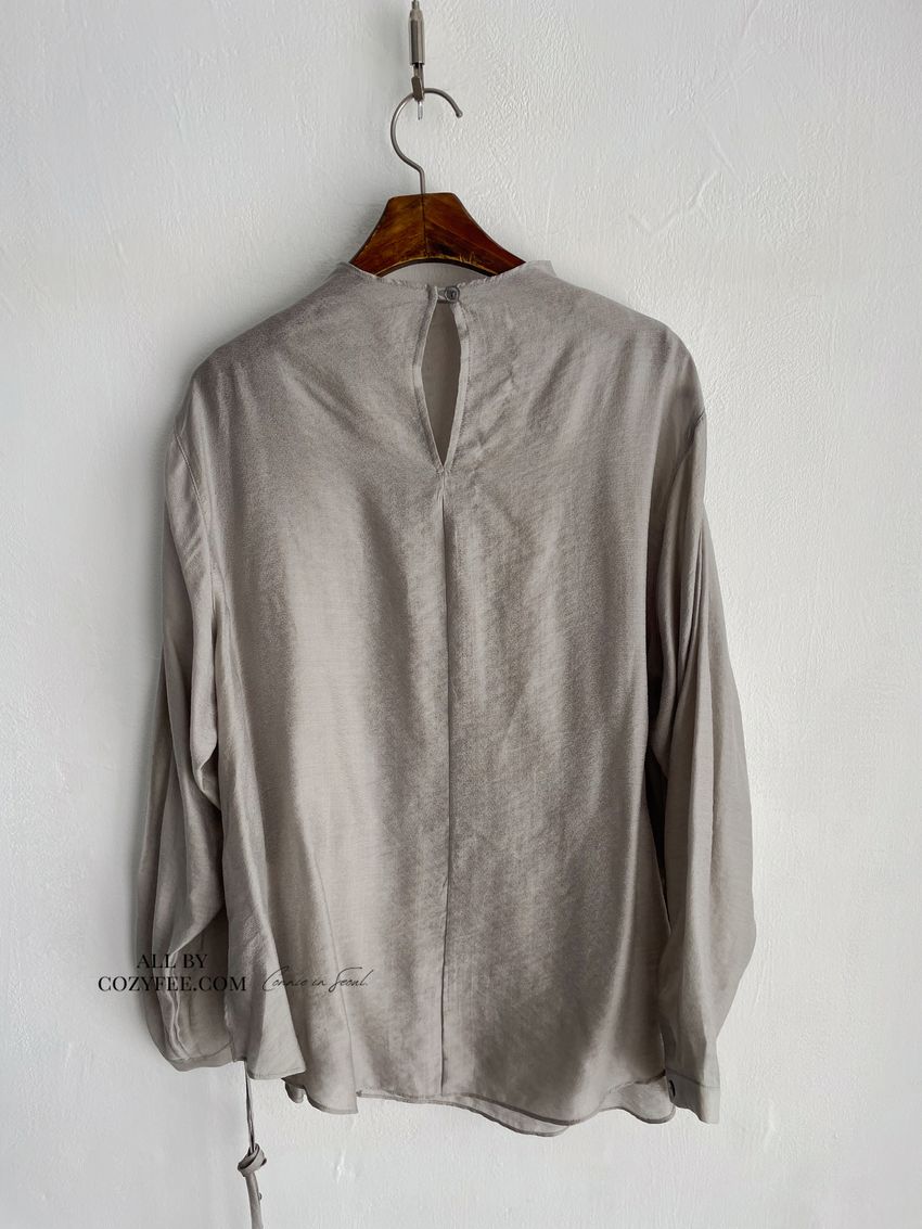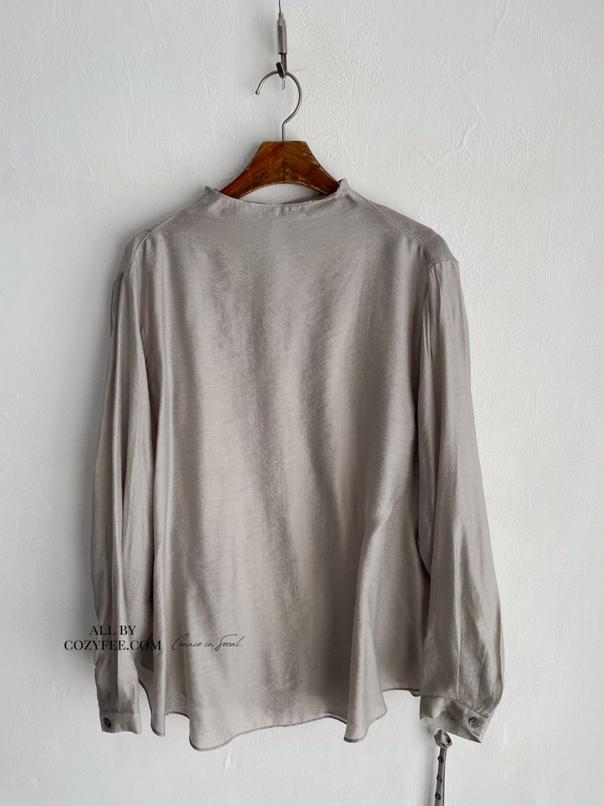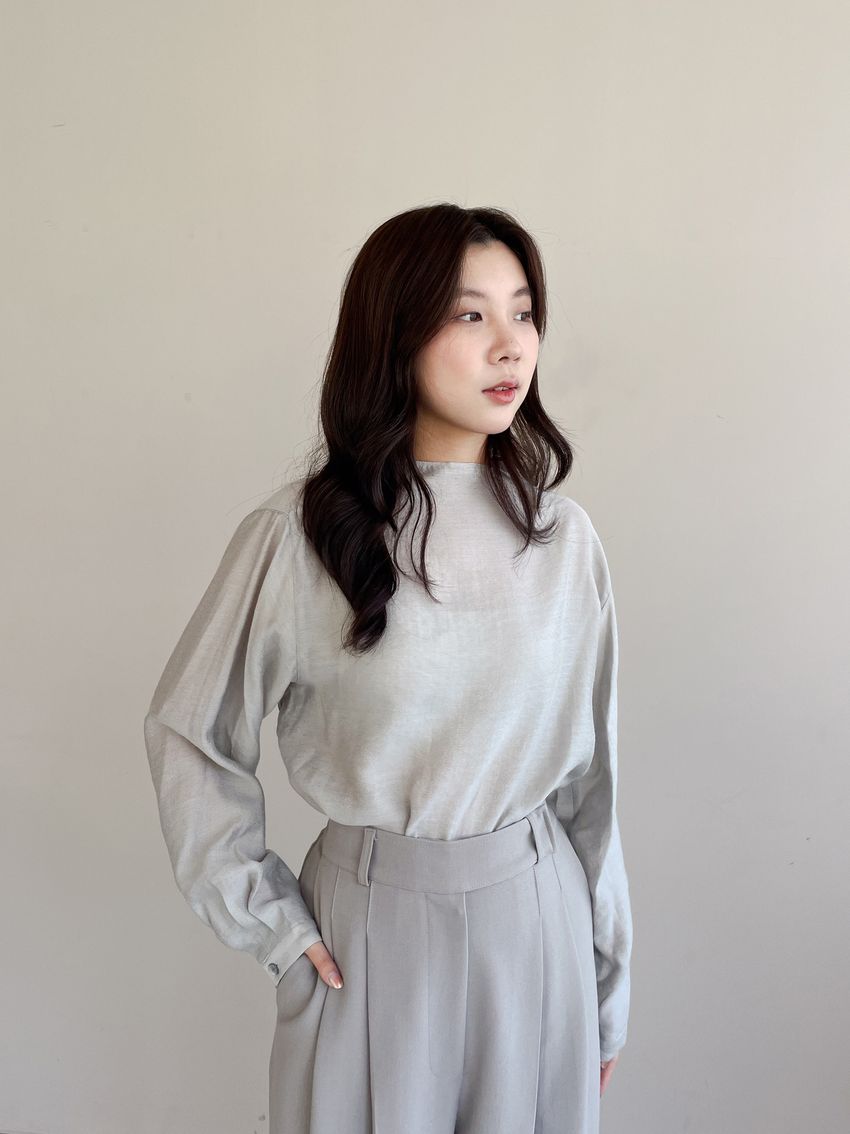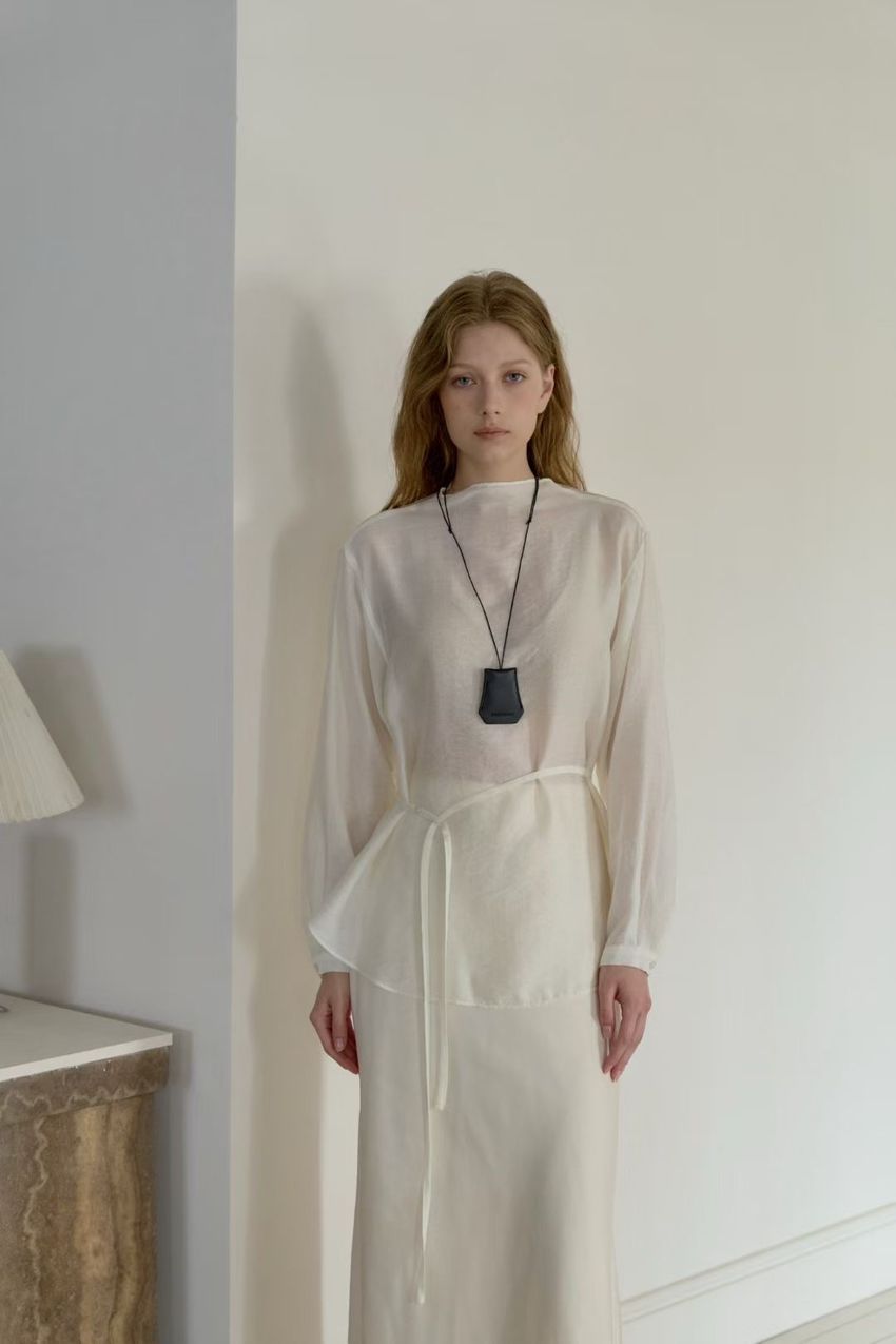> 長袖光澤微透半領衫+附細帶(直播款)