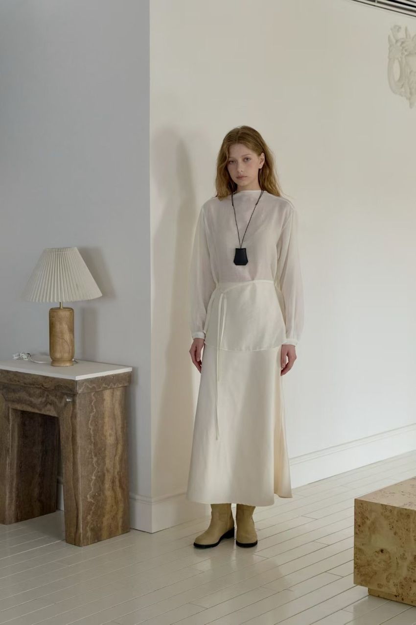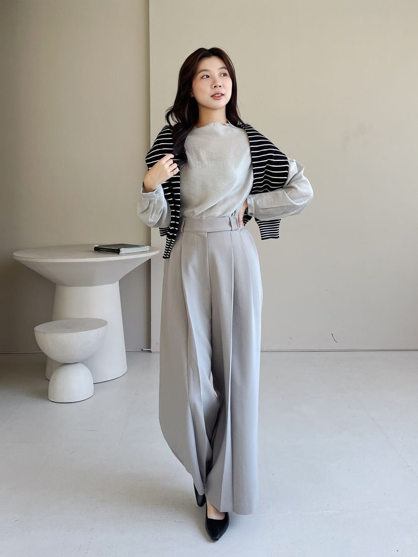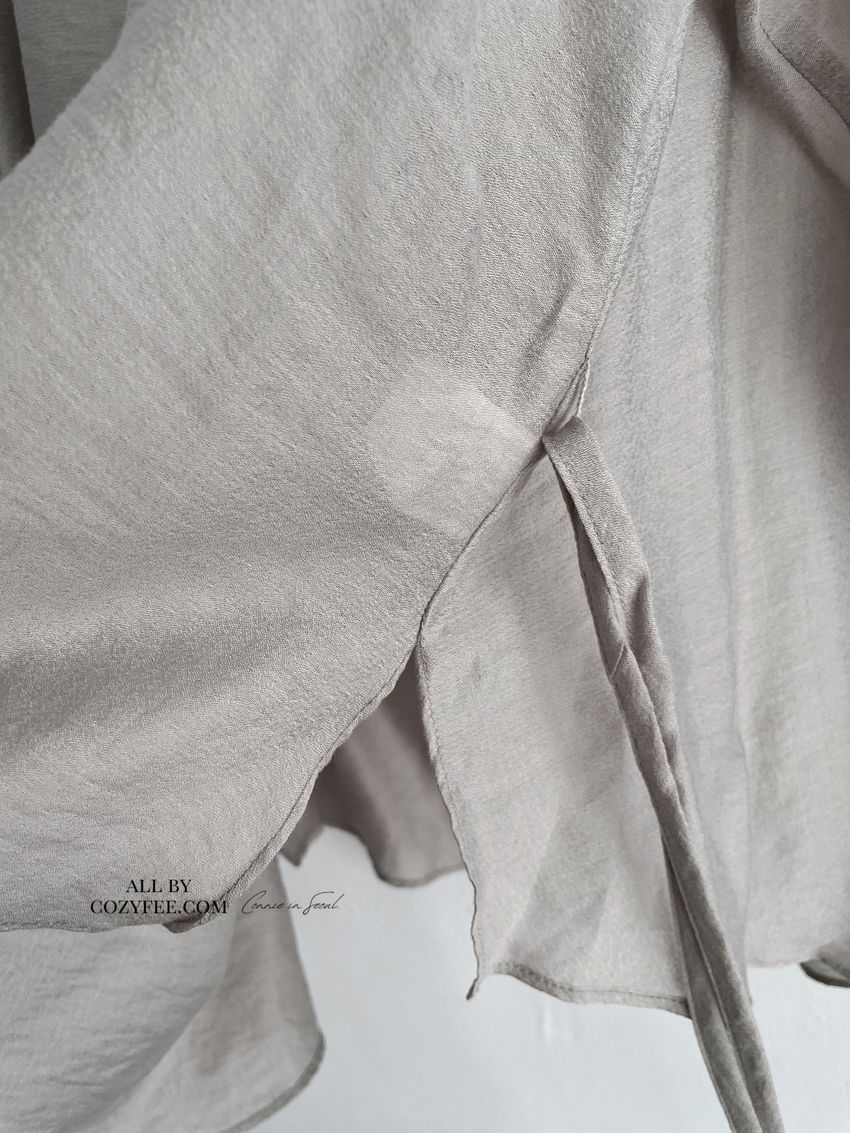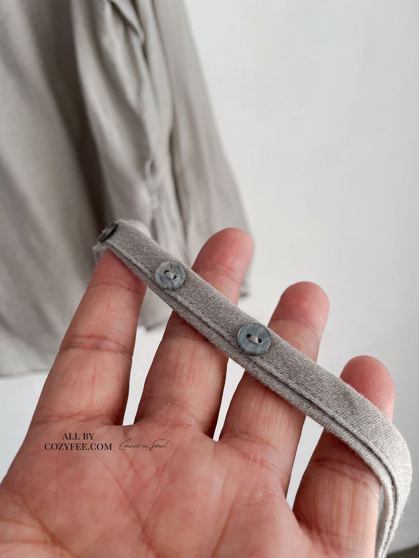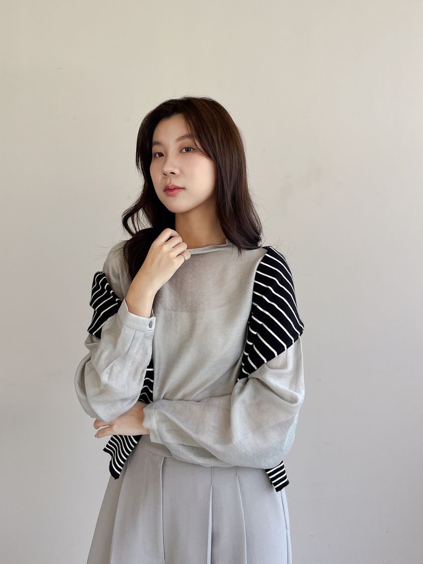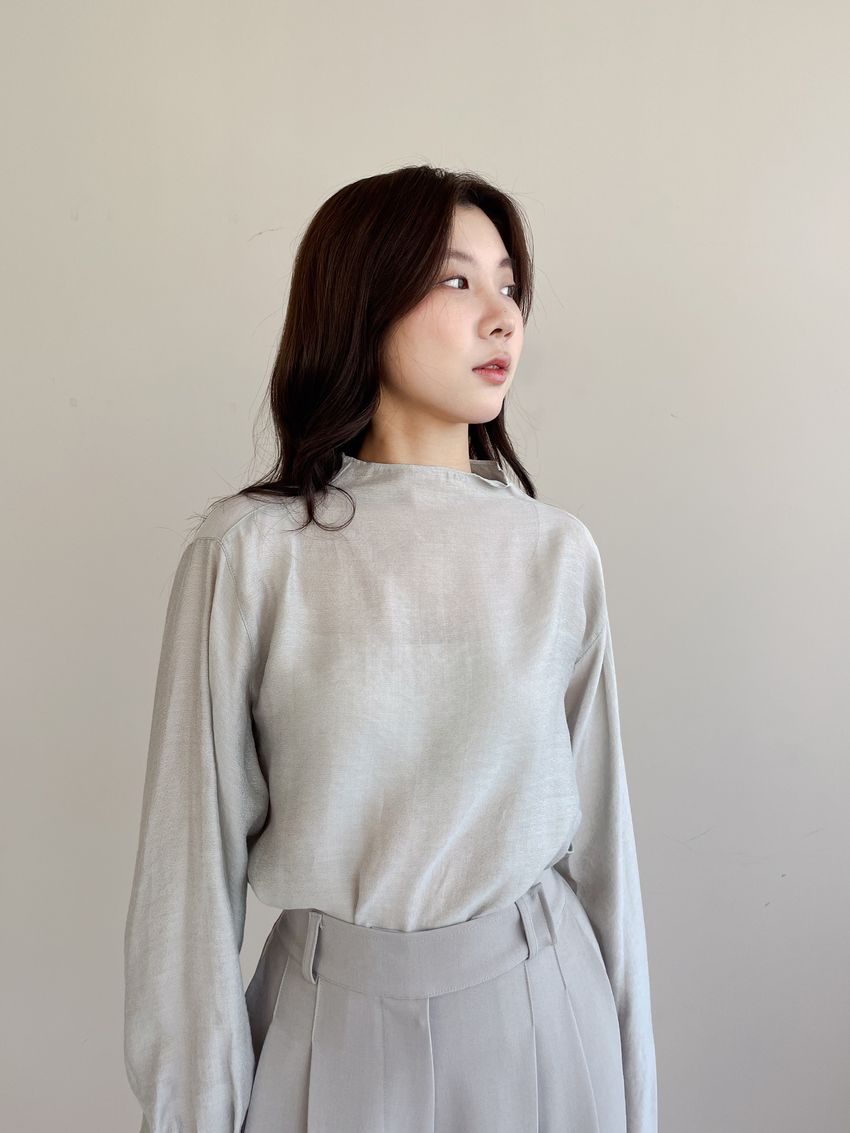 > 長袖光澤微透半領衫+附細帶(直播款)