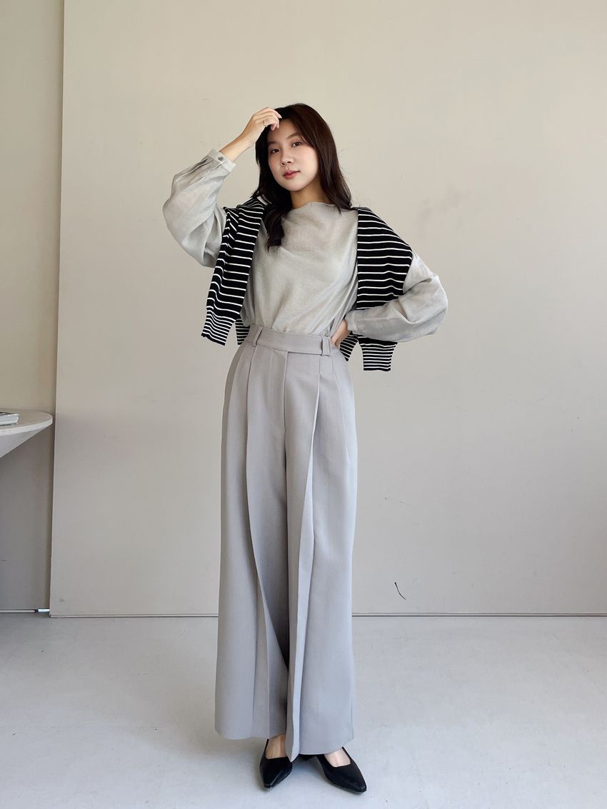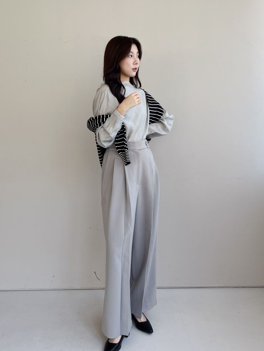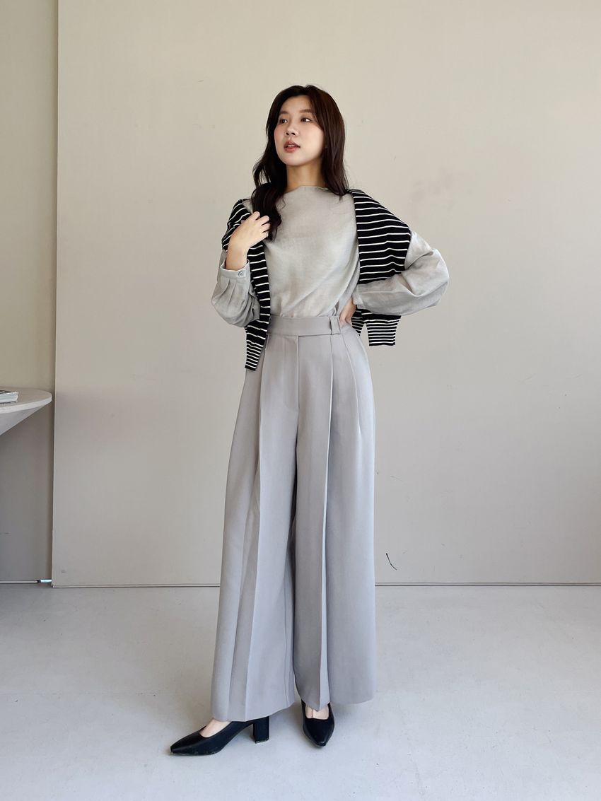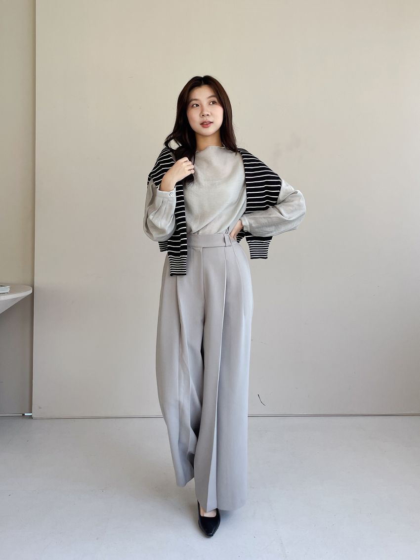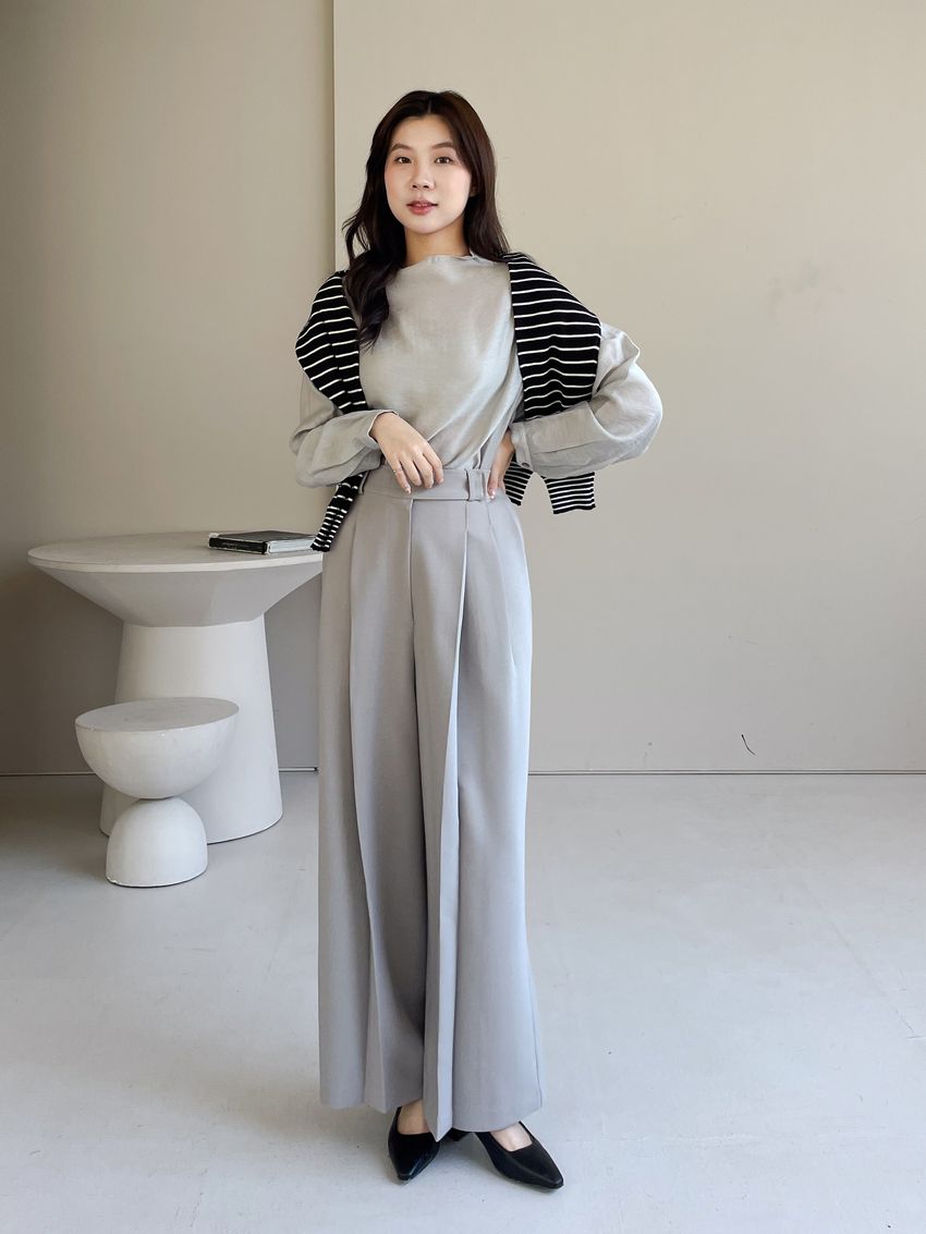 > 長袖光澤微透半領衫+附細帶(直播款)