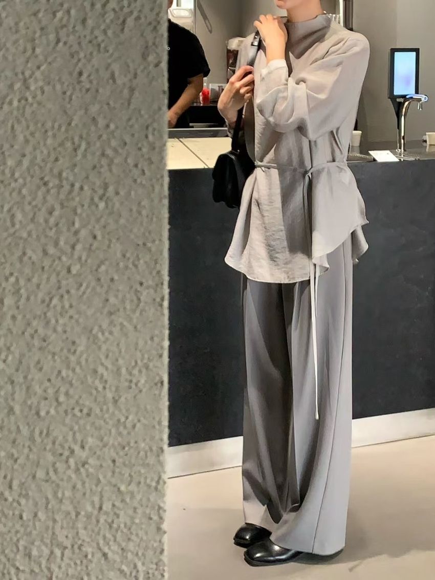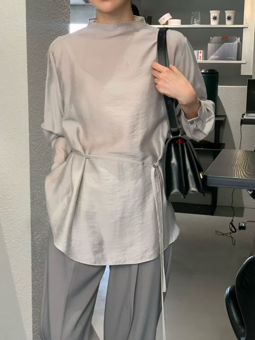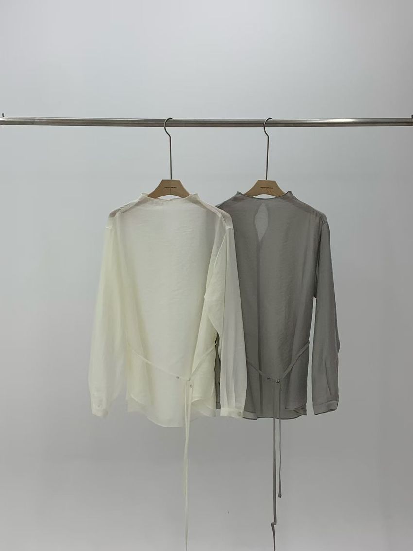 長袖光澤微透半領衫+附細帶(直播款)