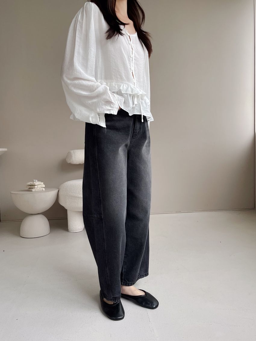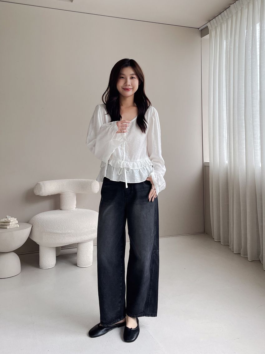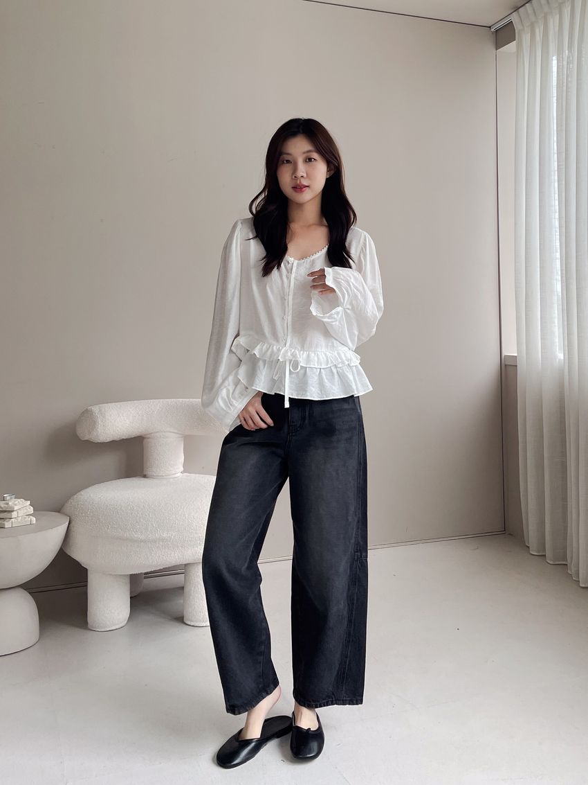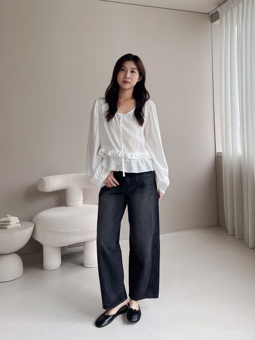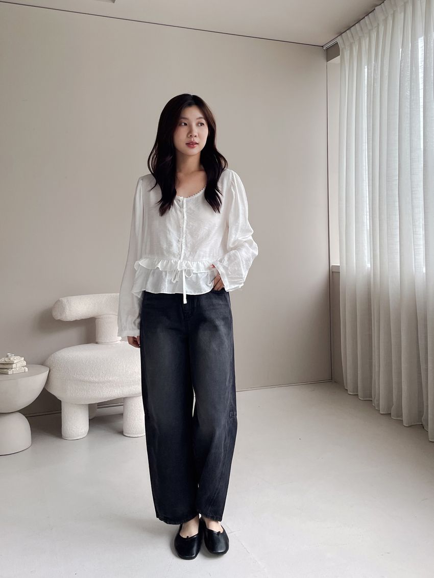 > 半釦蛋糕腰抽繩娃娃衫(直播款)