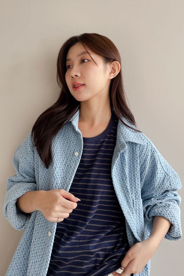 > 單寧藍壓紋厚磅寬鬆襯衫