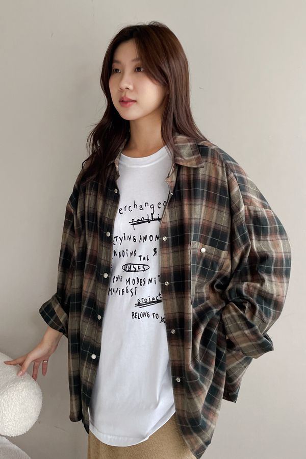 Connie推薦款!銀壓釦格紋落肩襯衫