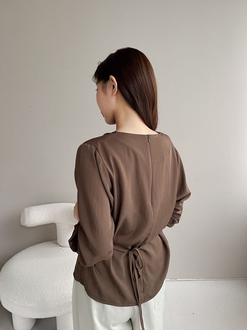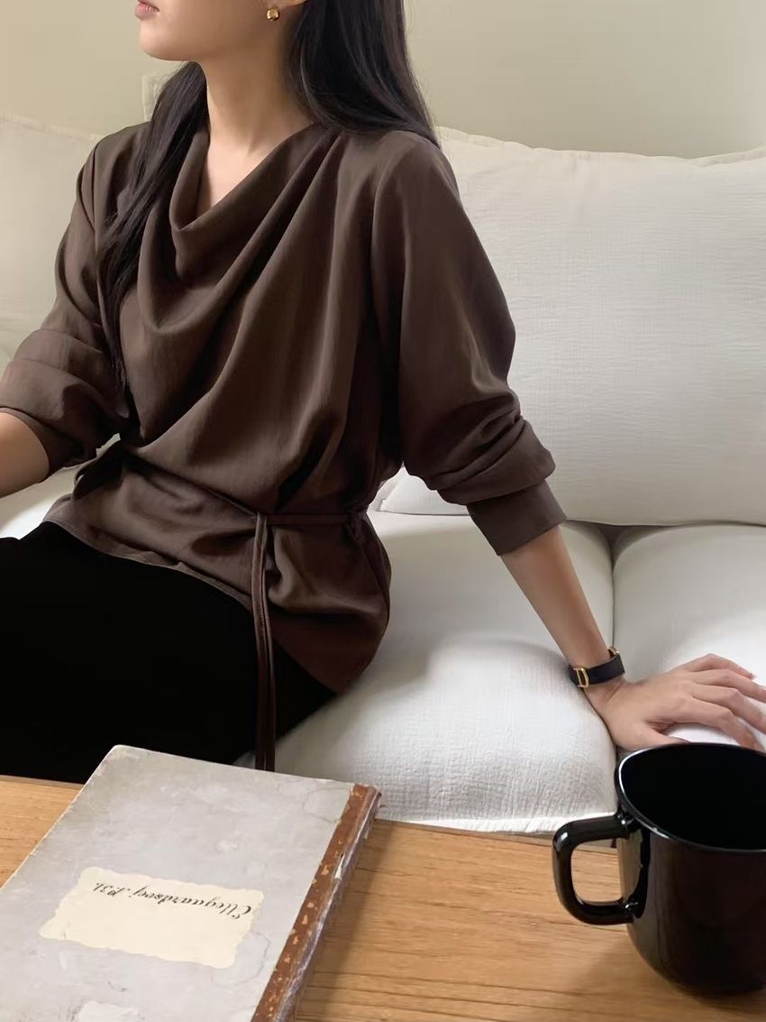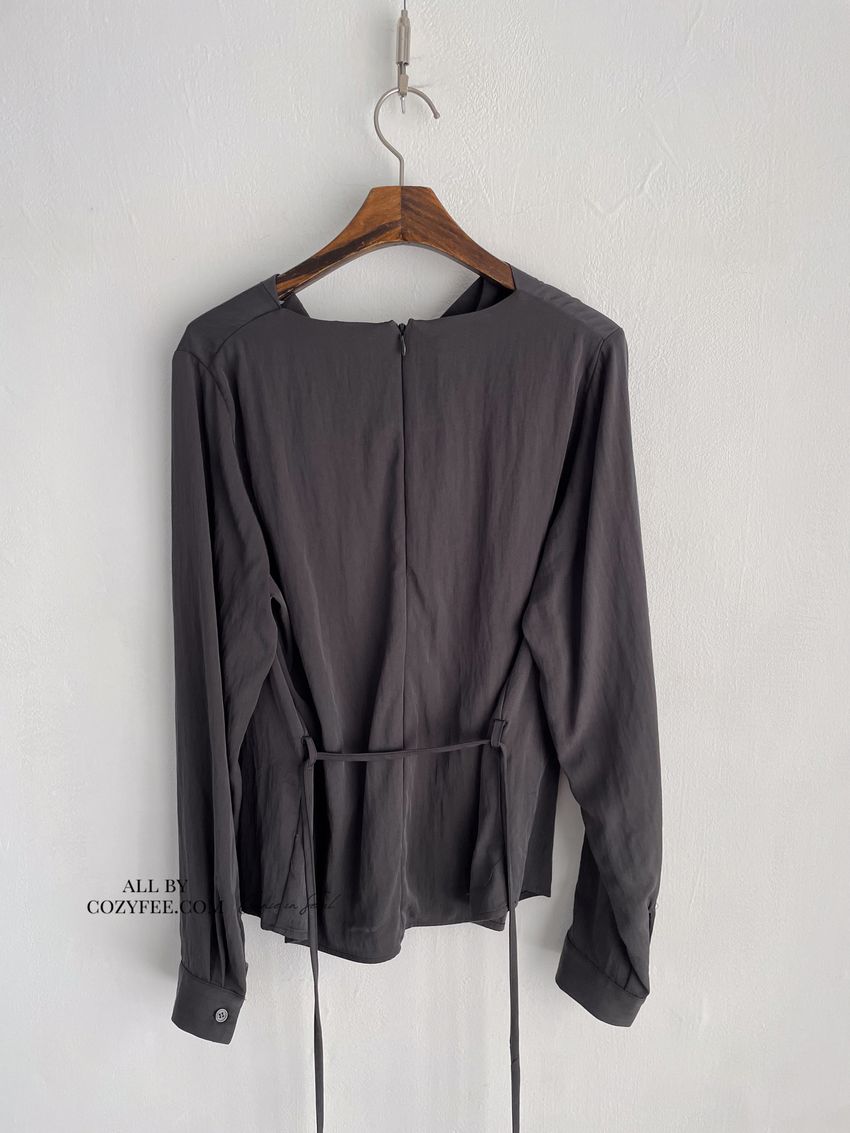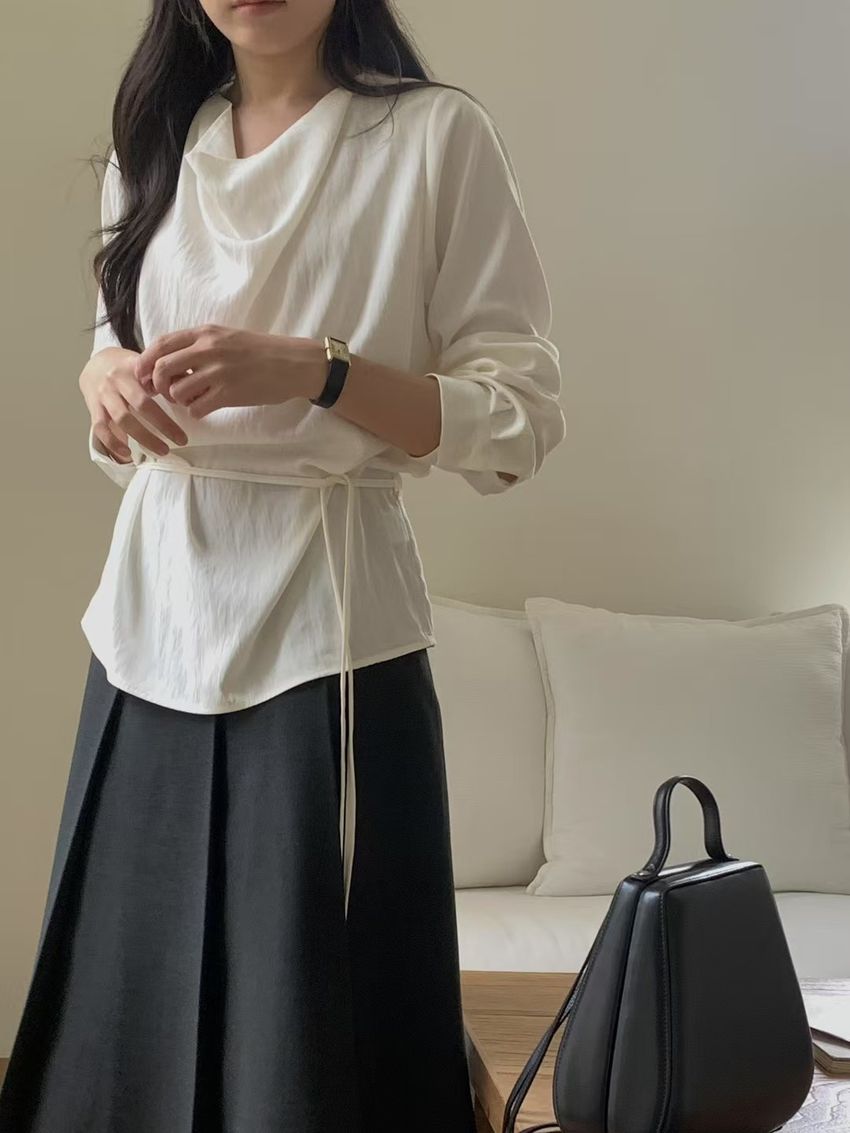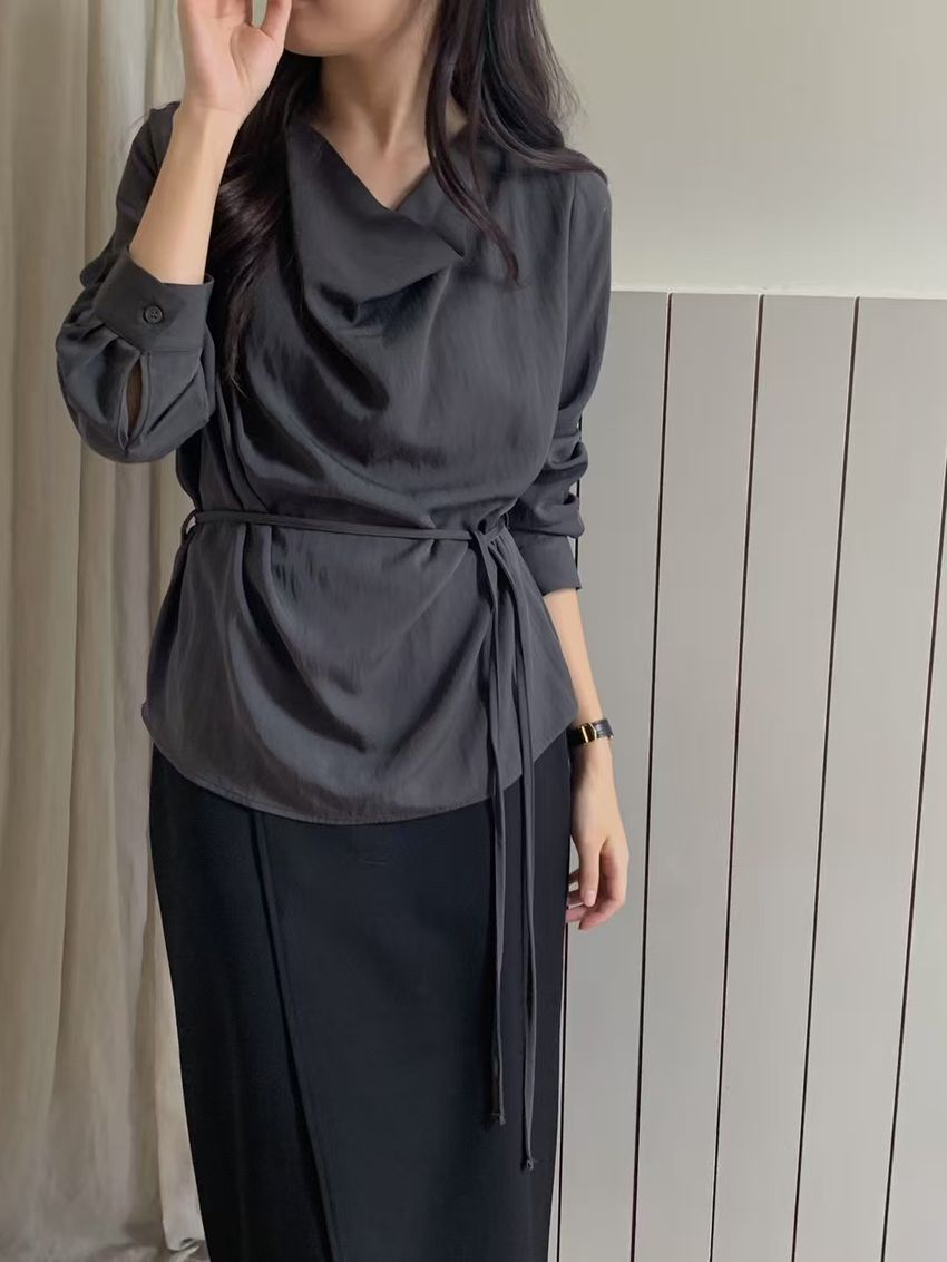 > 羅馬垂領細綁繩雪紡衫
