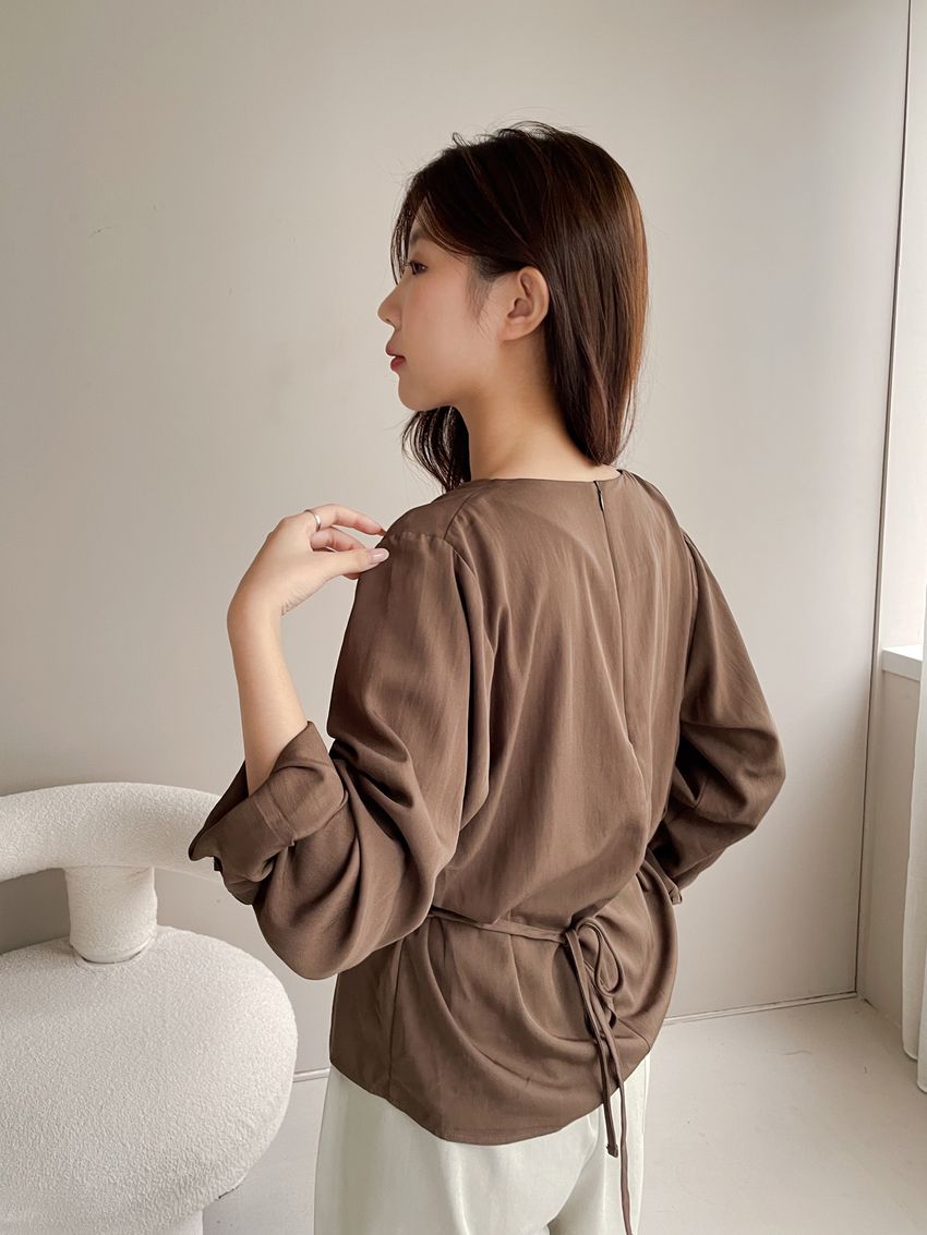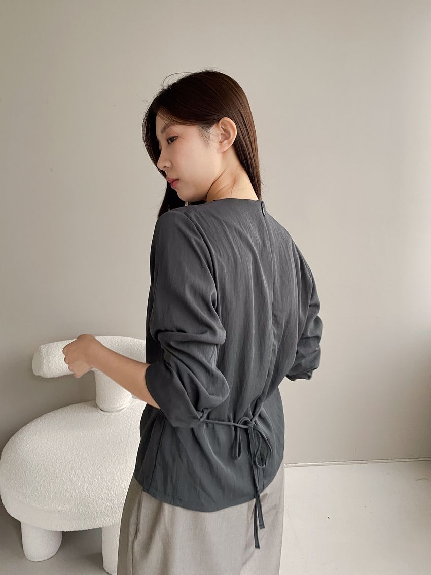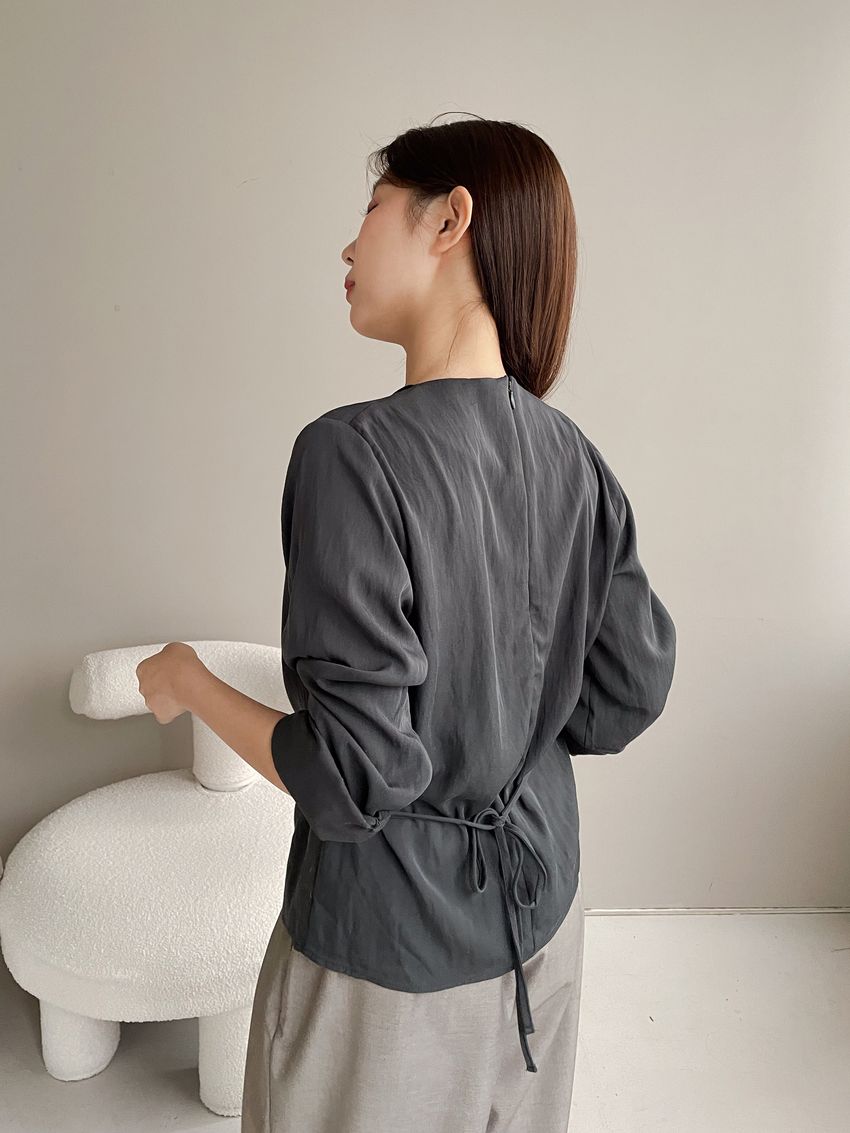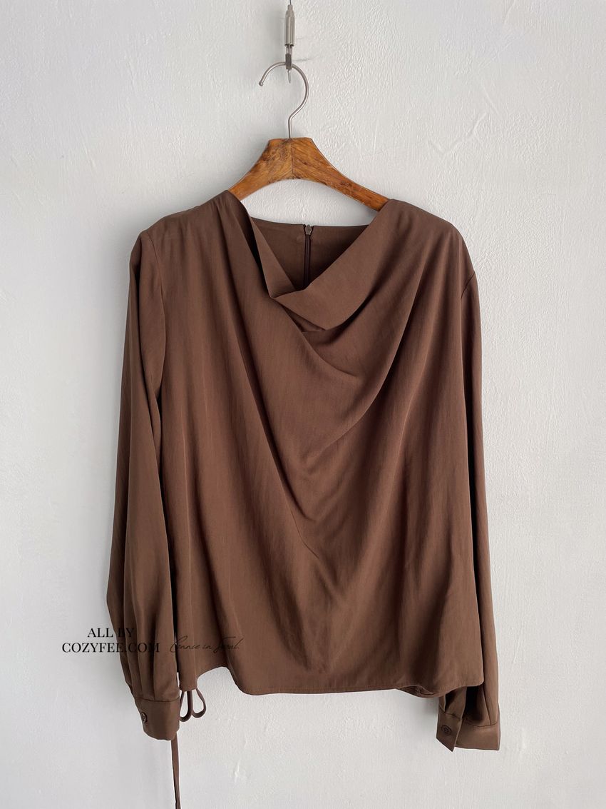 > 羅馬垂領細綁繩雪紡衫