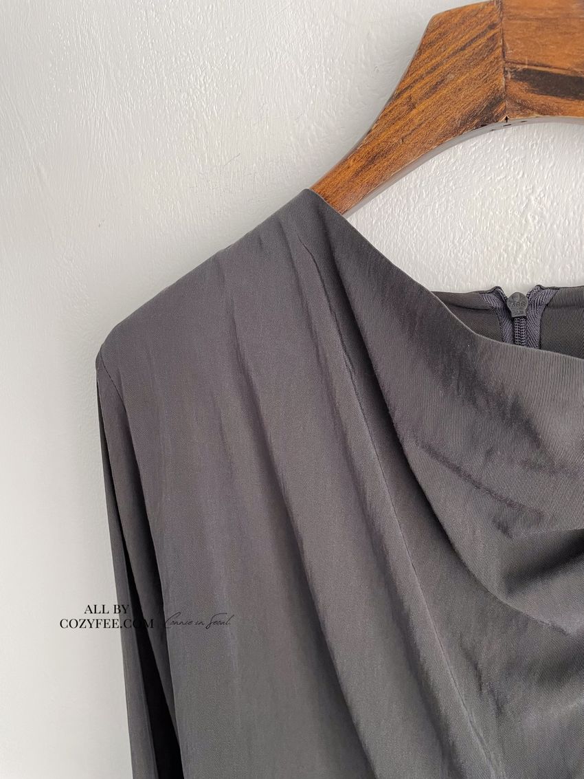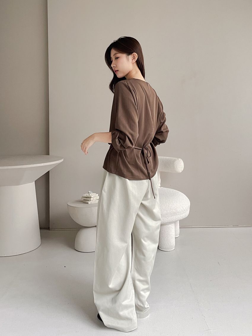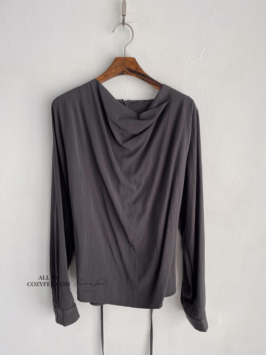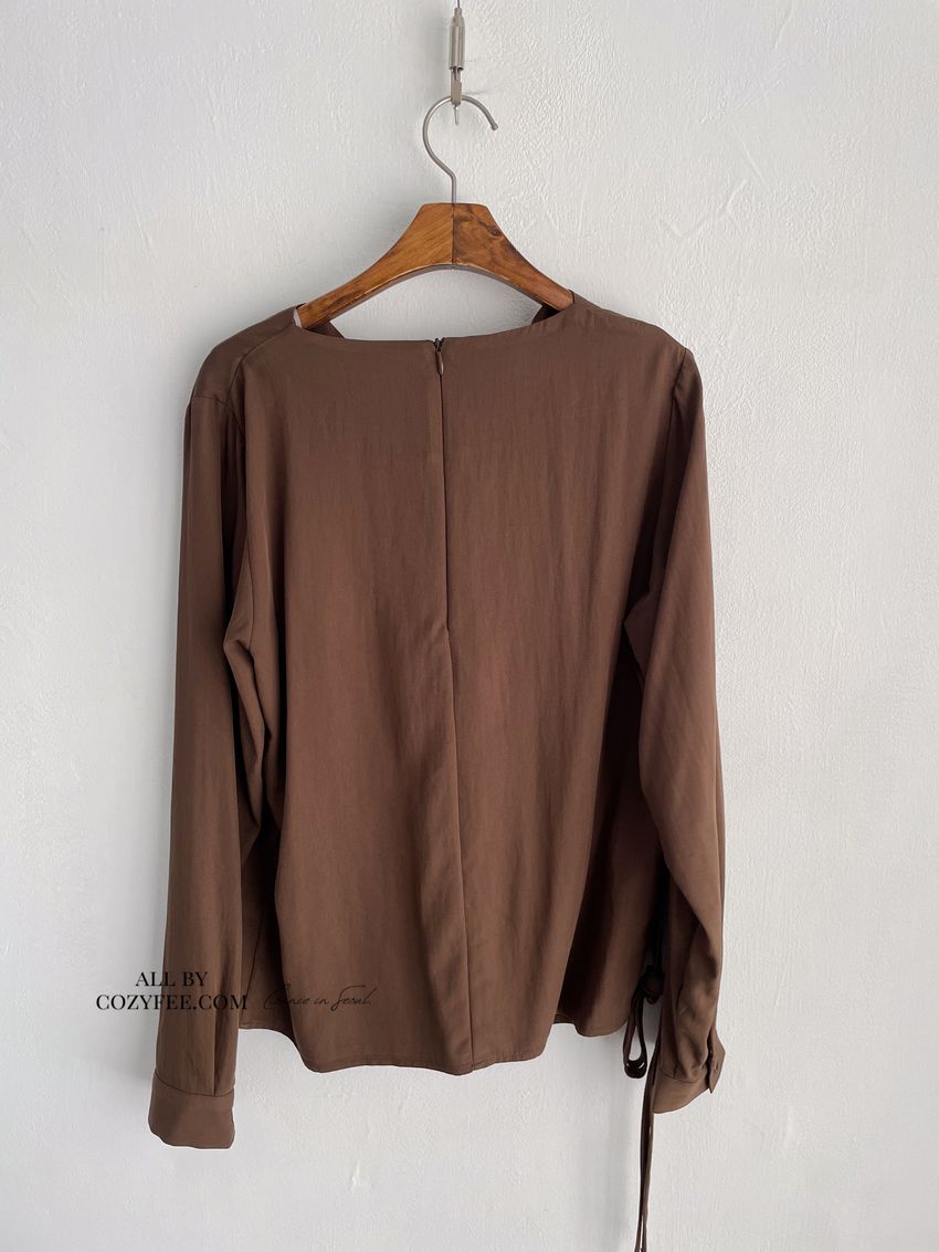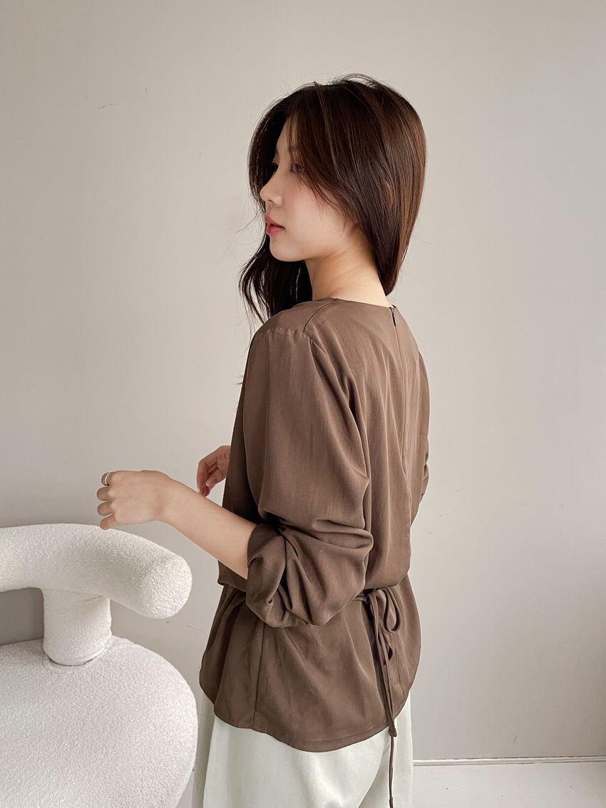 > 羅馬垂領細綁繩雪紡衫