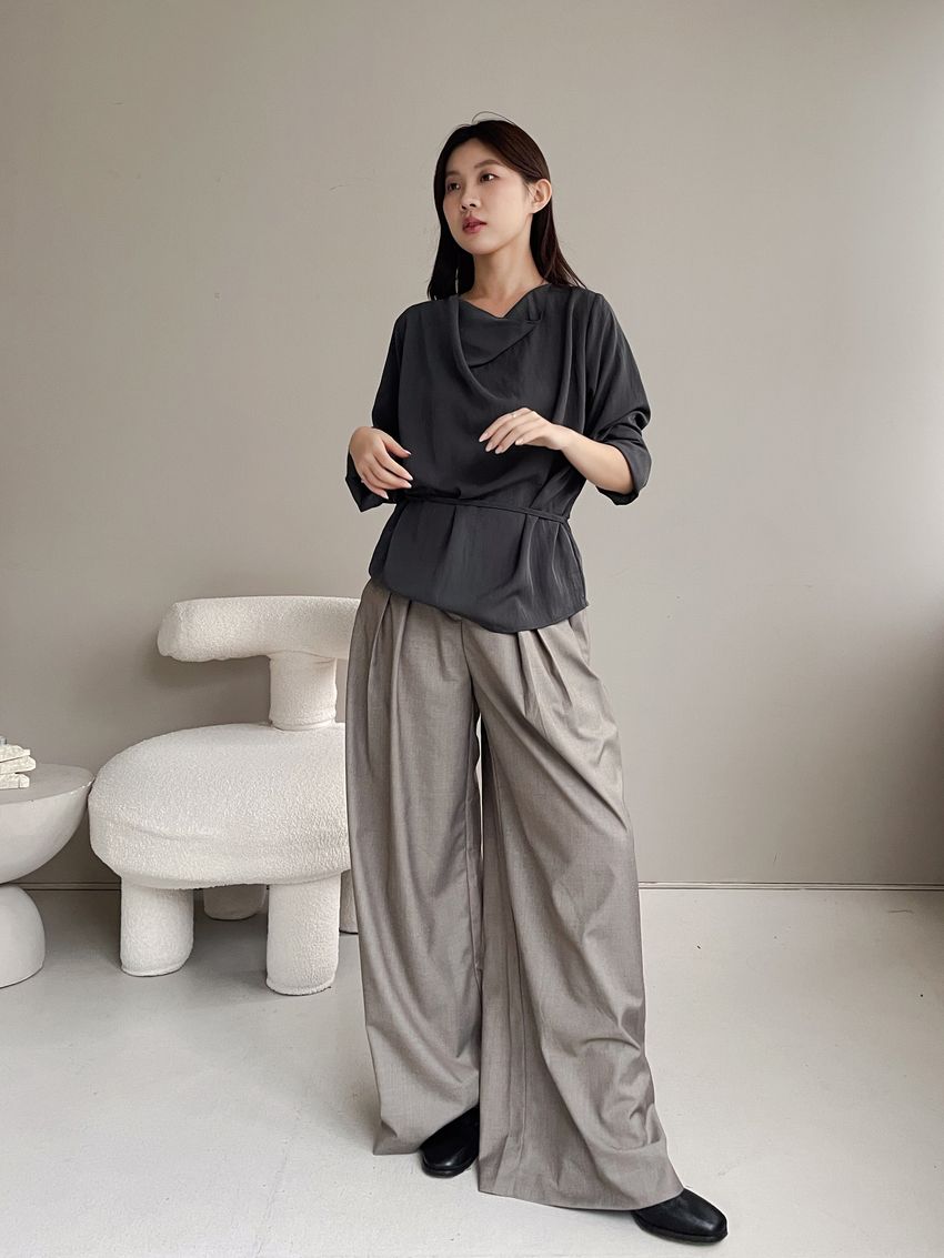 羅馬垂領細綁繩雪紡衫