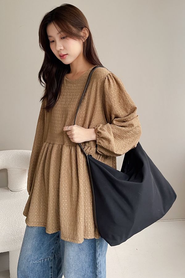 > Connie推薦款!壓紋理縮袖中長版娃娃衫