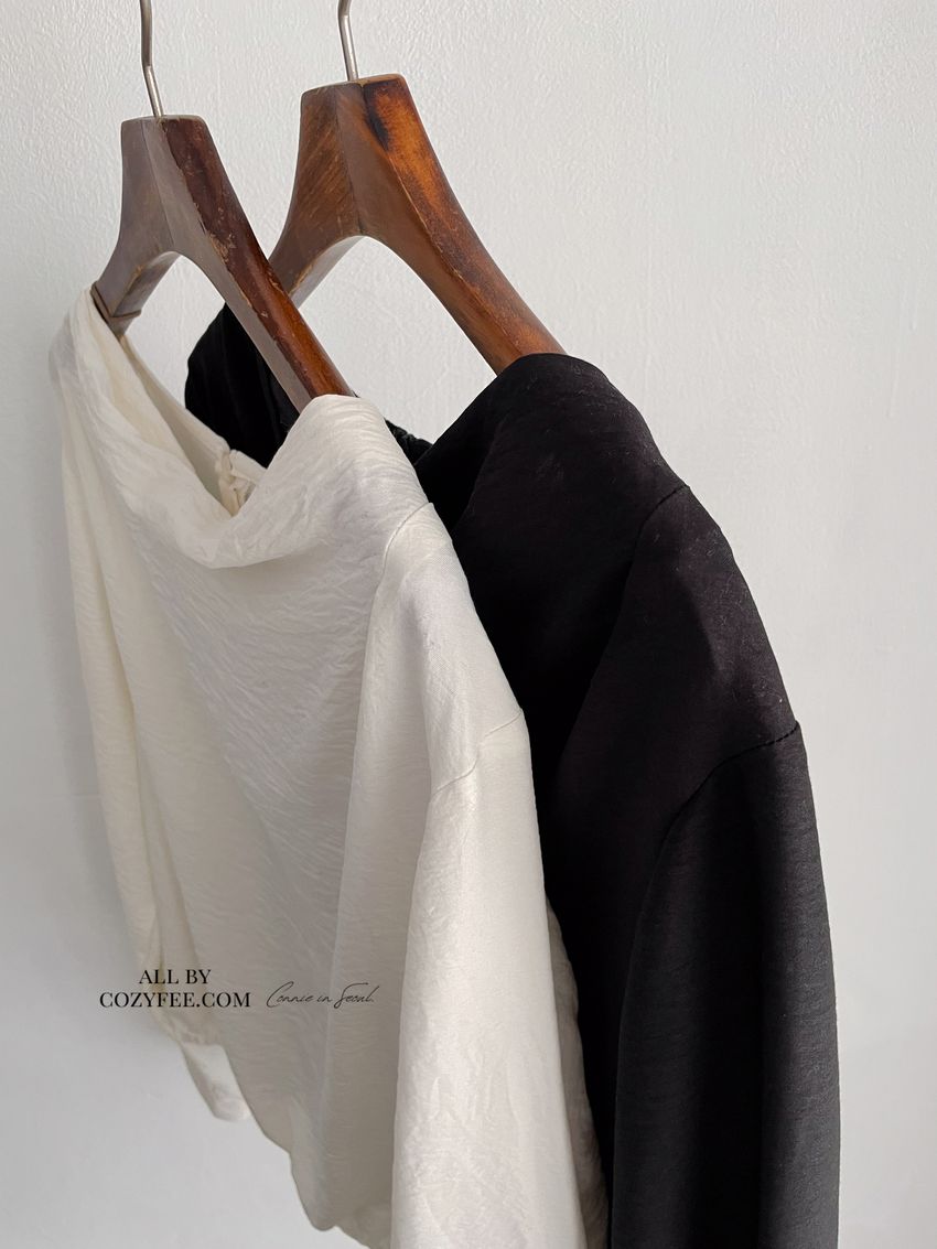 > 垂領鬆緊下擺揉皺衫