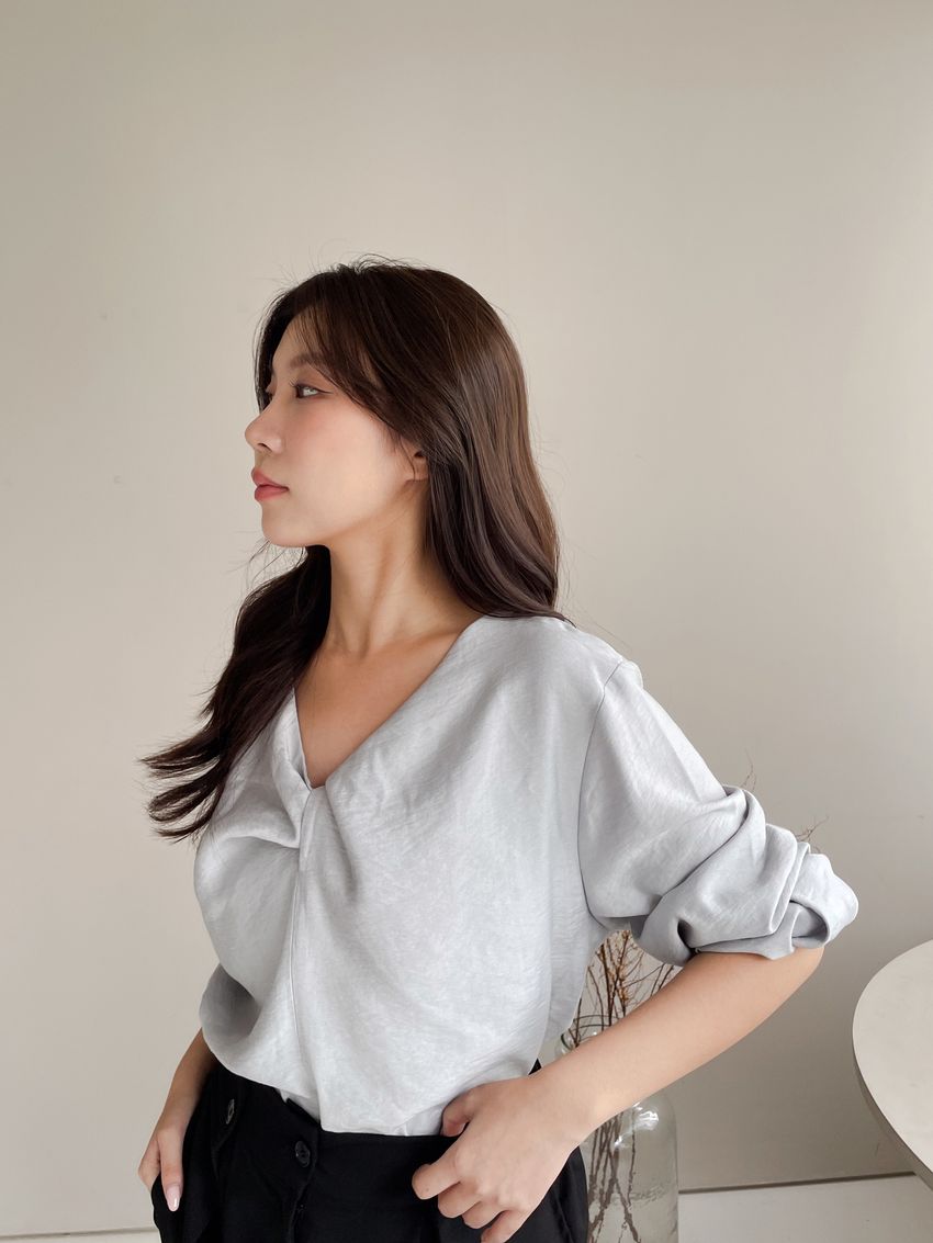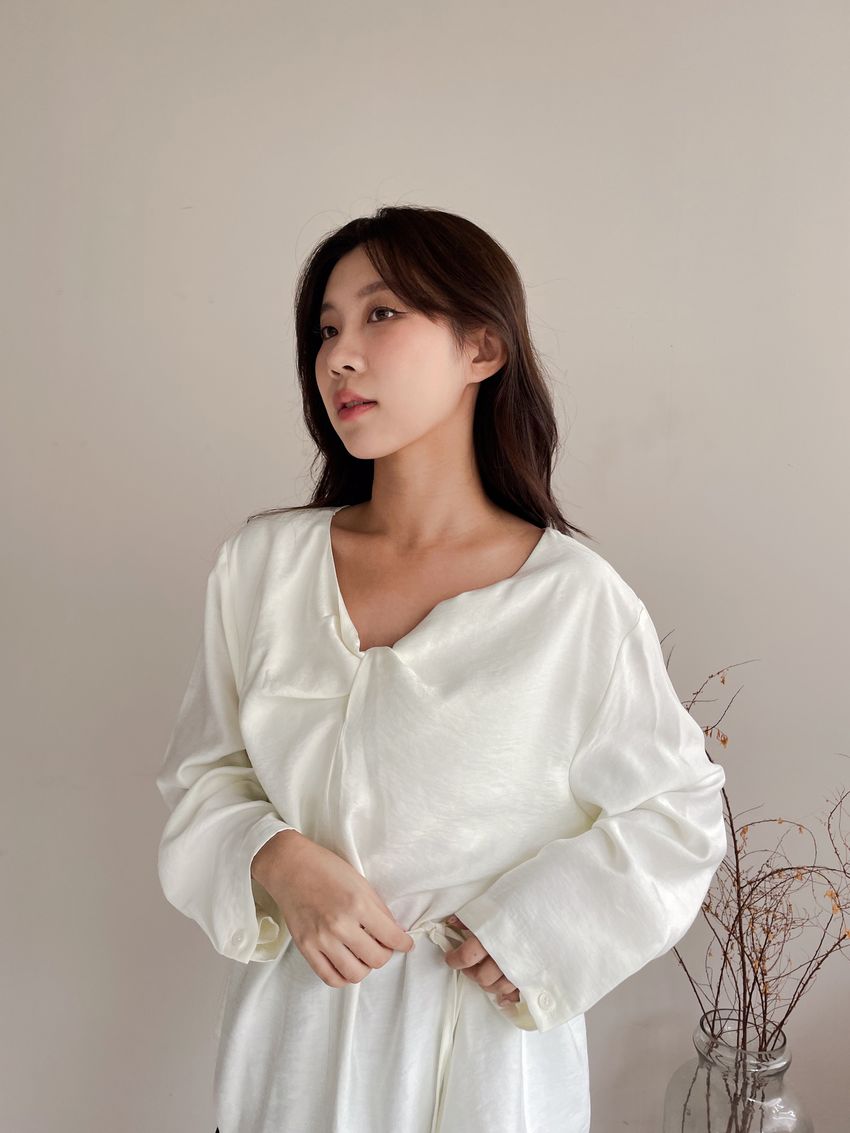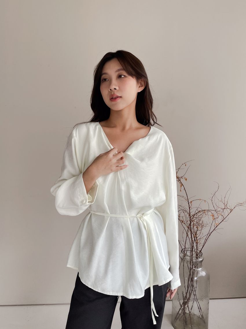 Connie推薦款!扭結V領綁帶衫