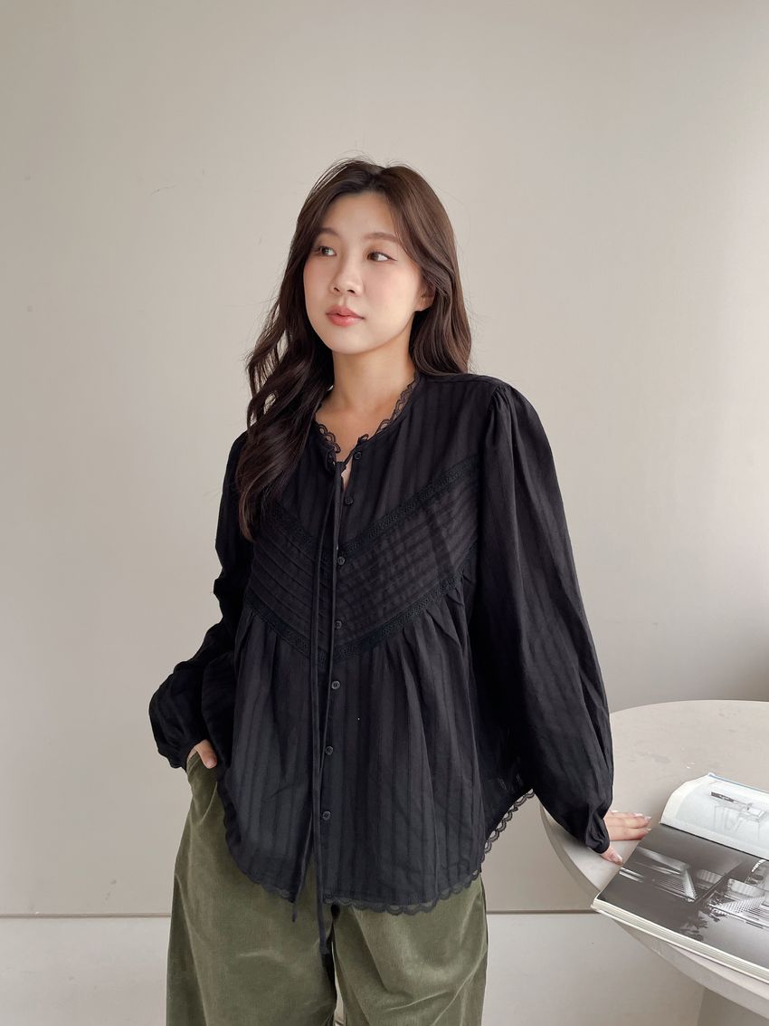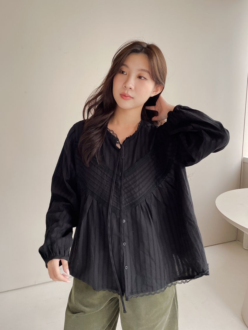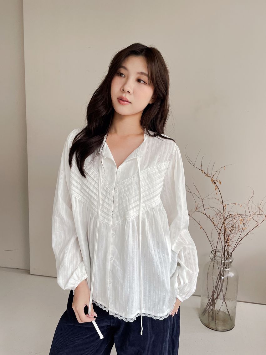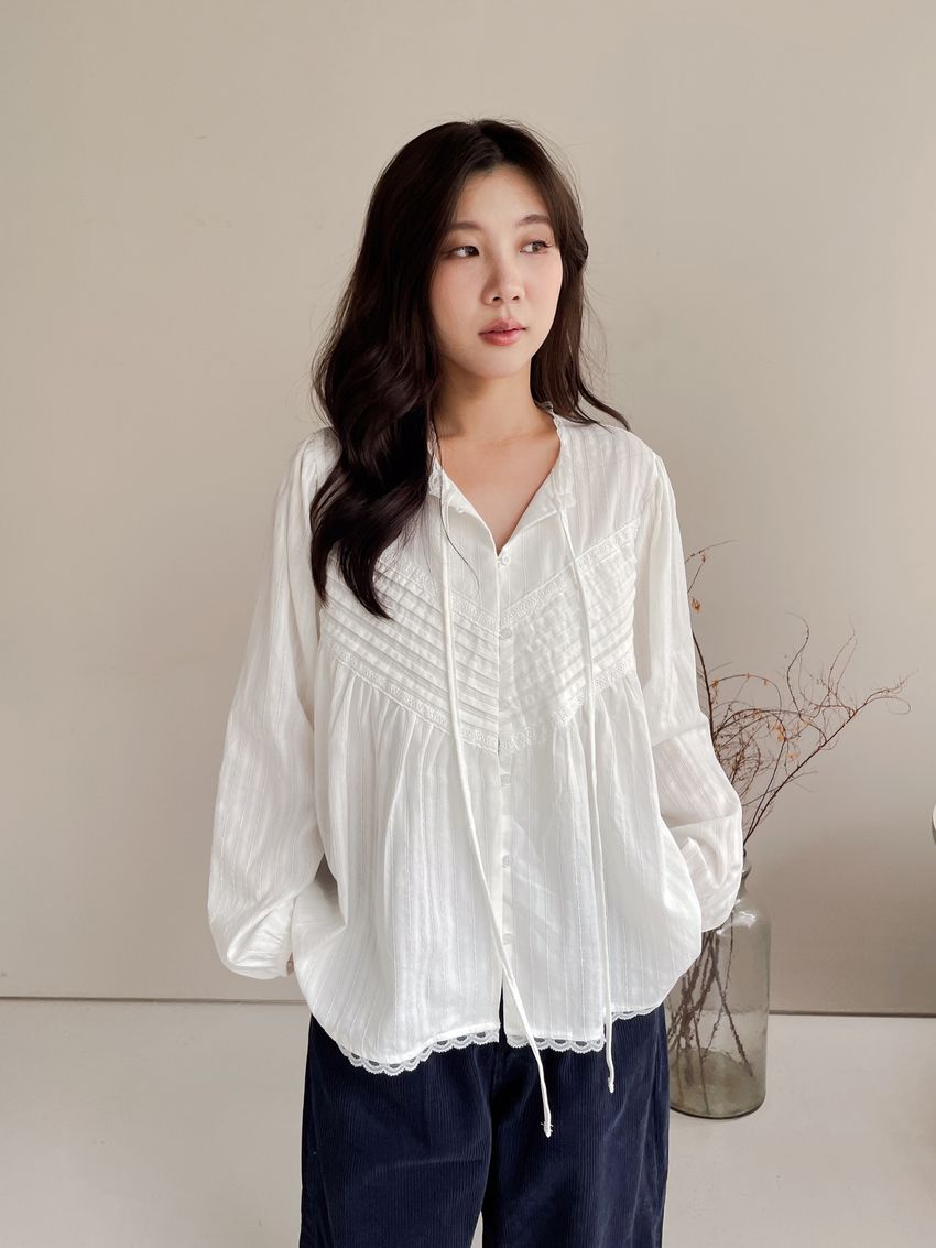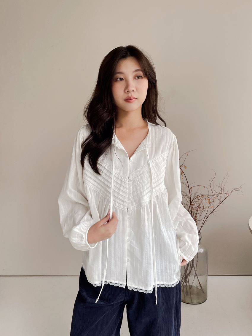 > Connie推薦款!風琴細壓摺蕾絲娃娃衫