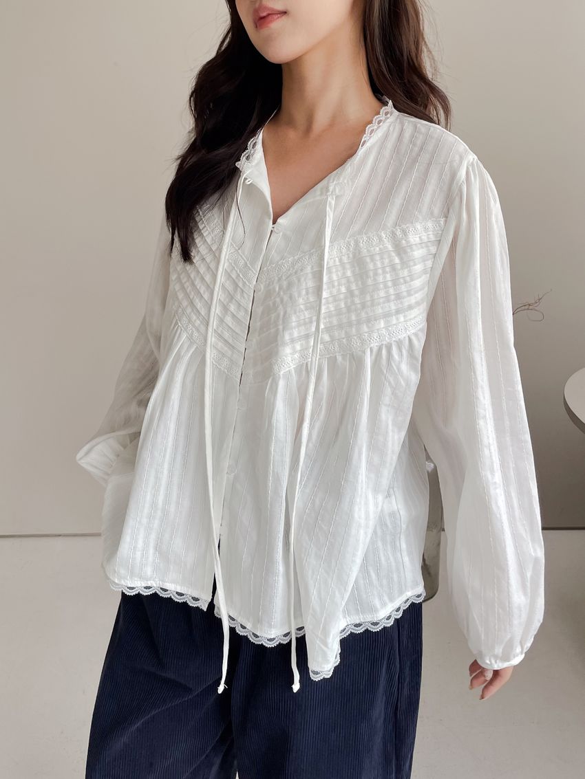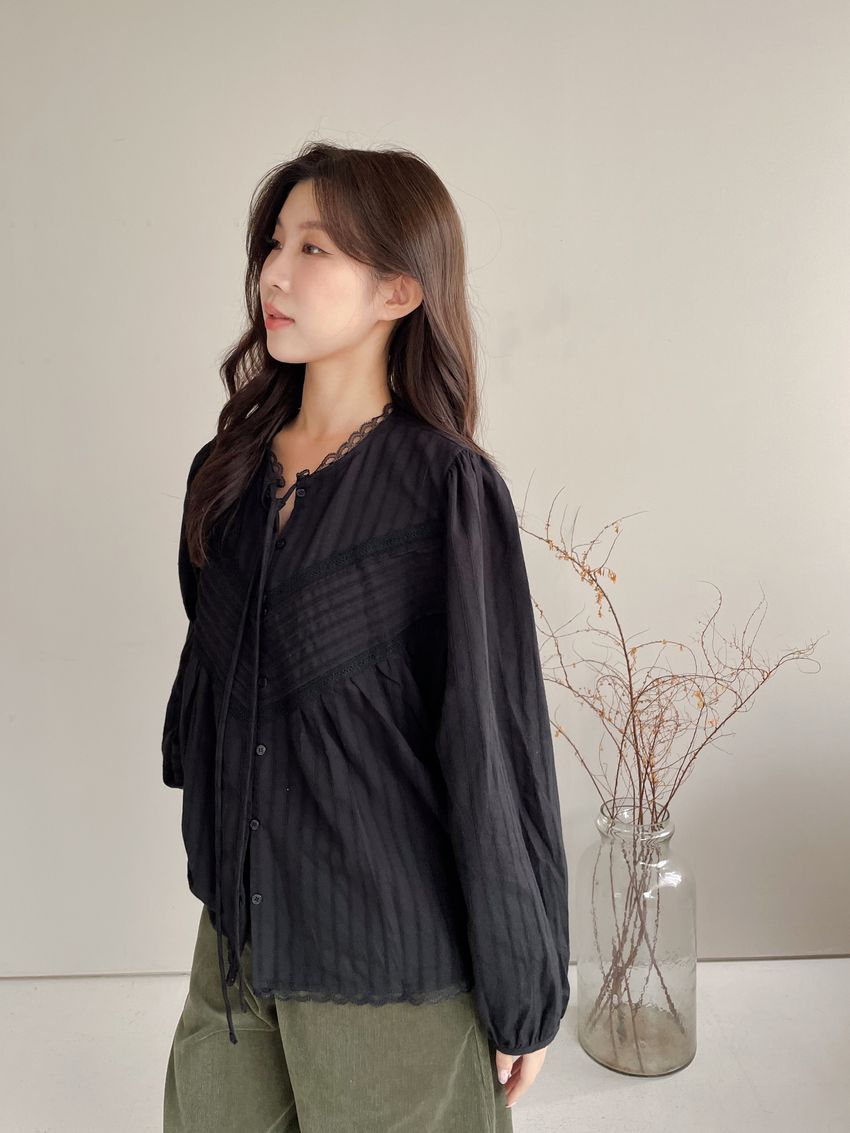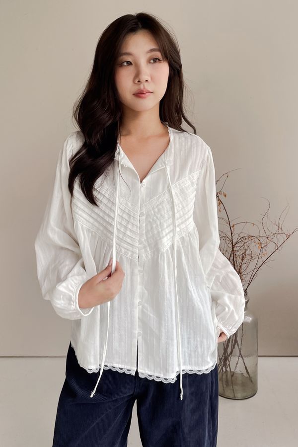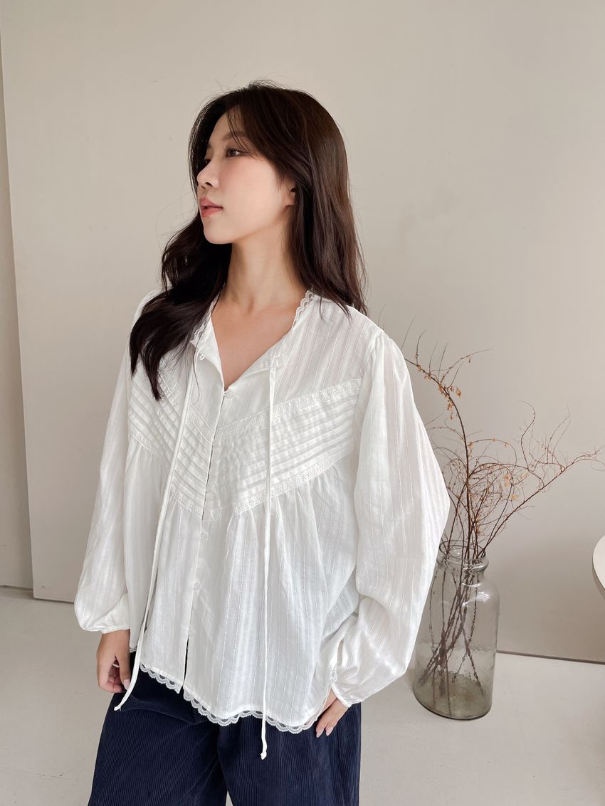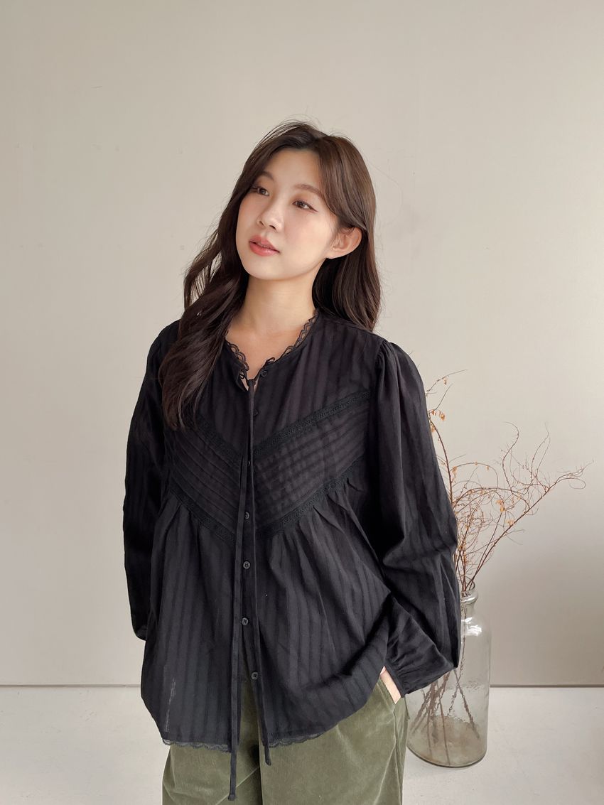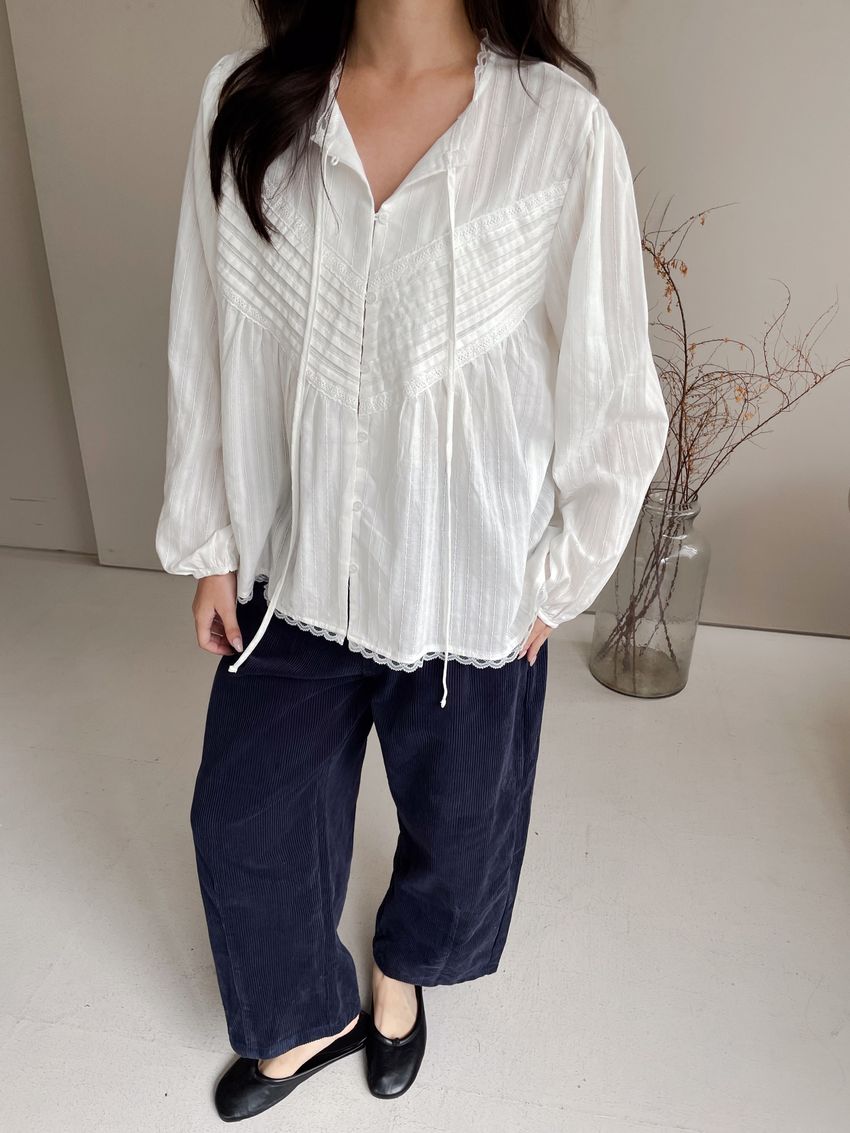> Connie推薦款!風琴細壓摺蕾絲娃娃衫