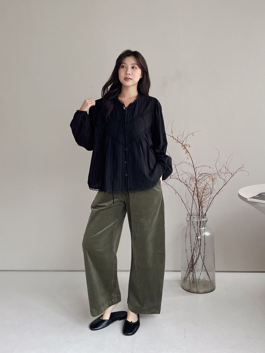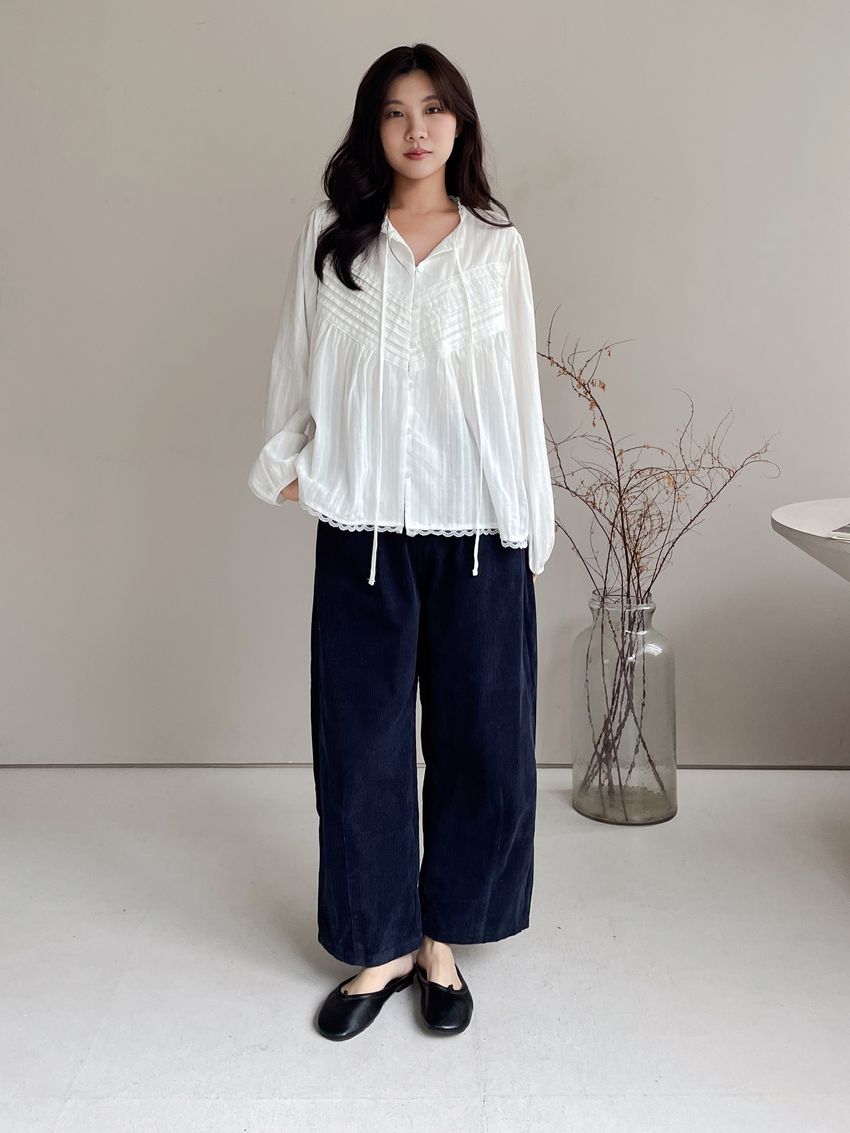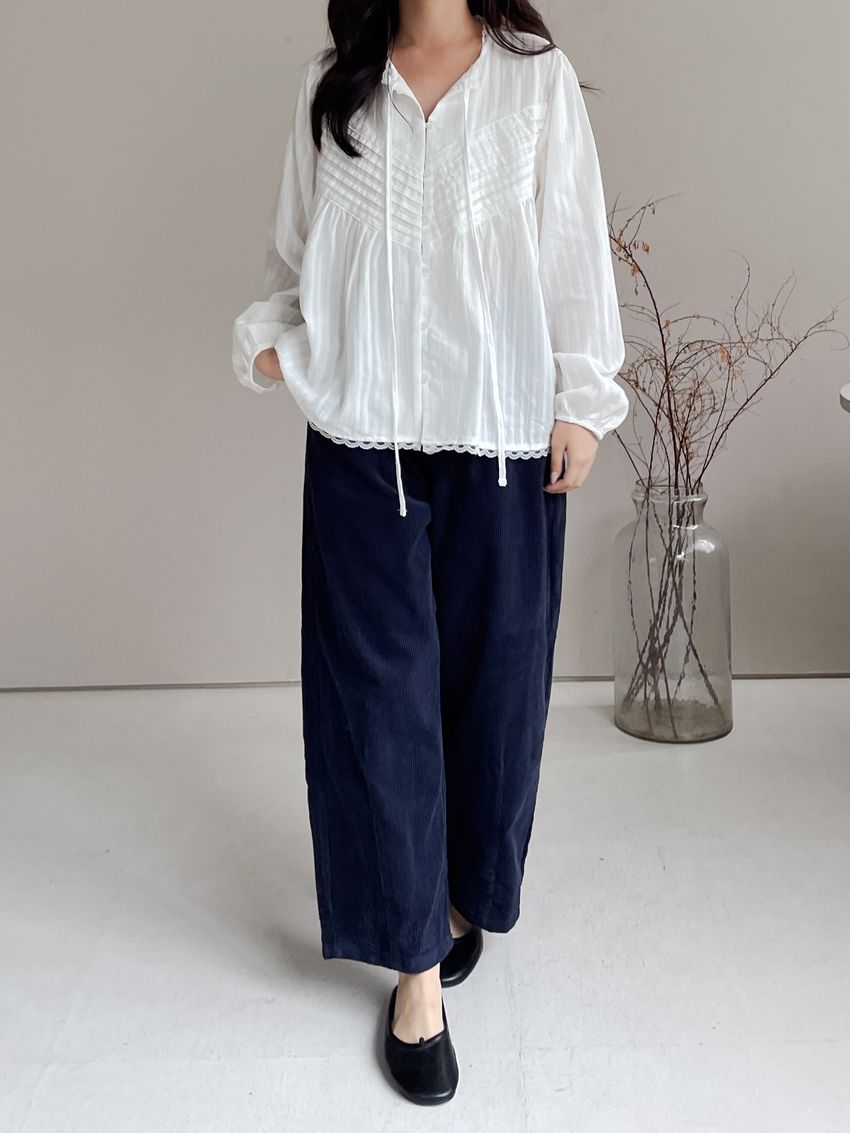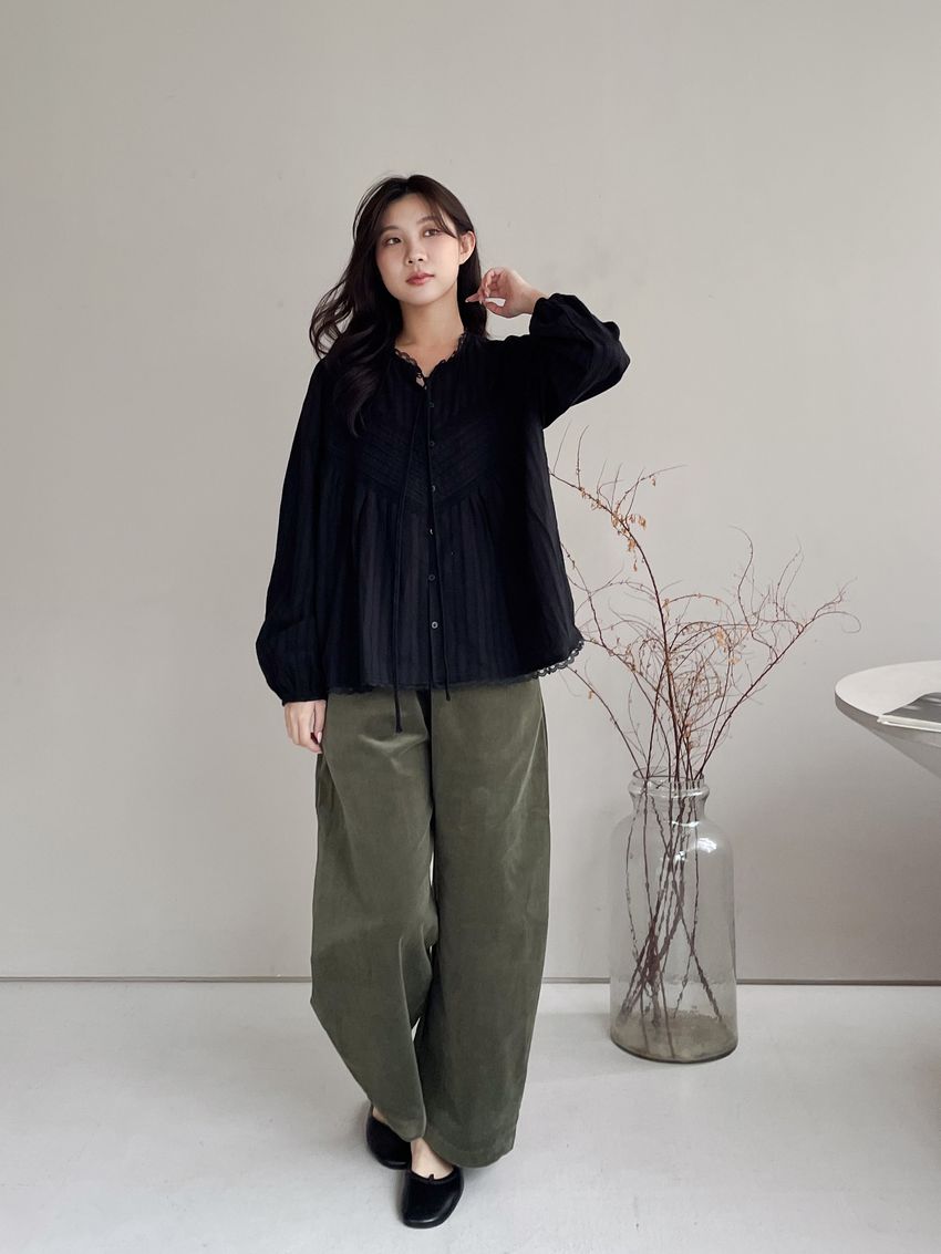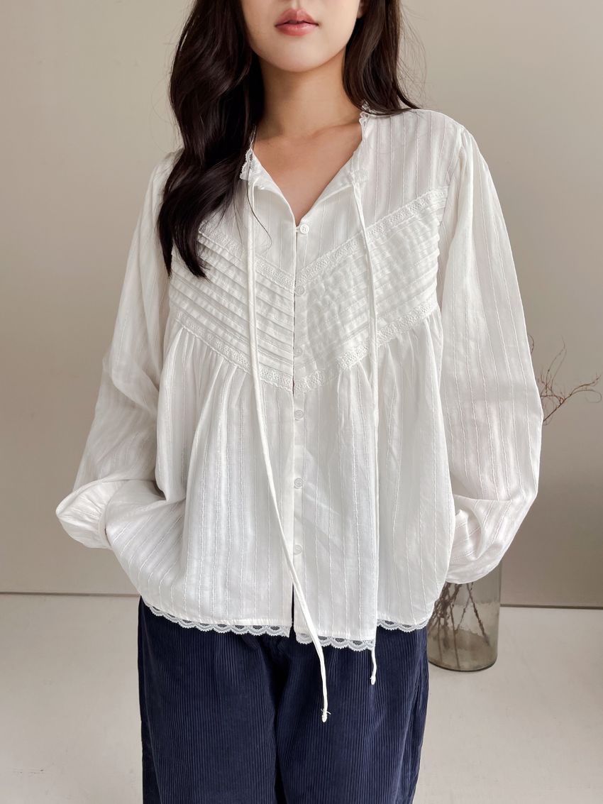 > Connie推薦款!風琴細壓摺蕾絲娃娃衫