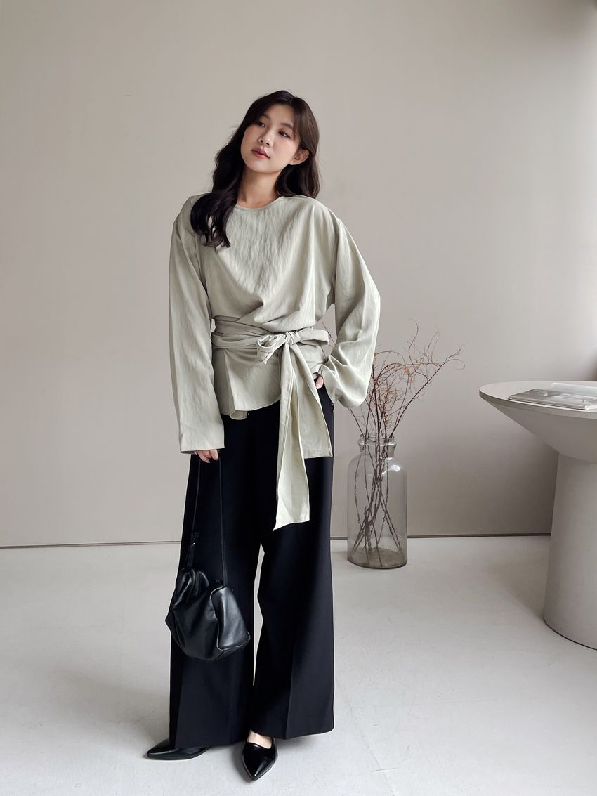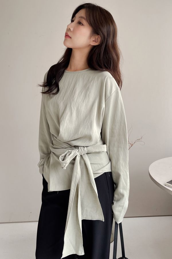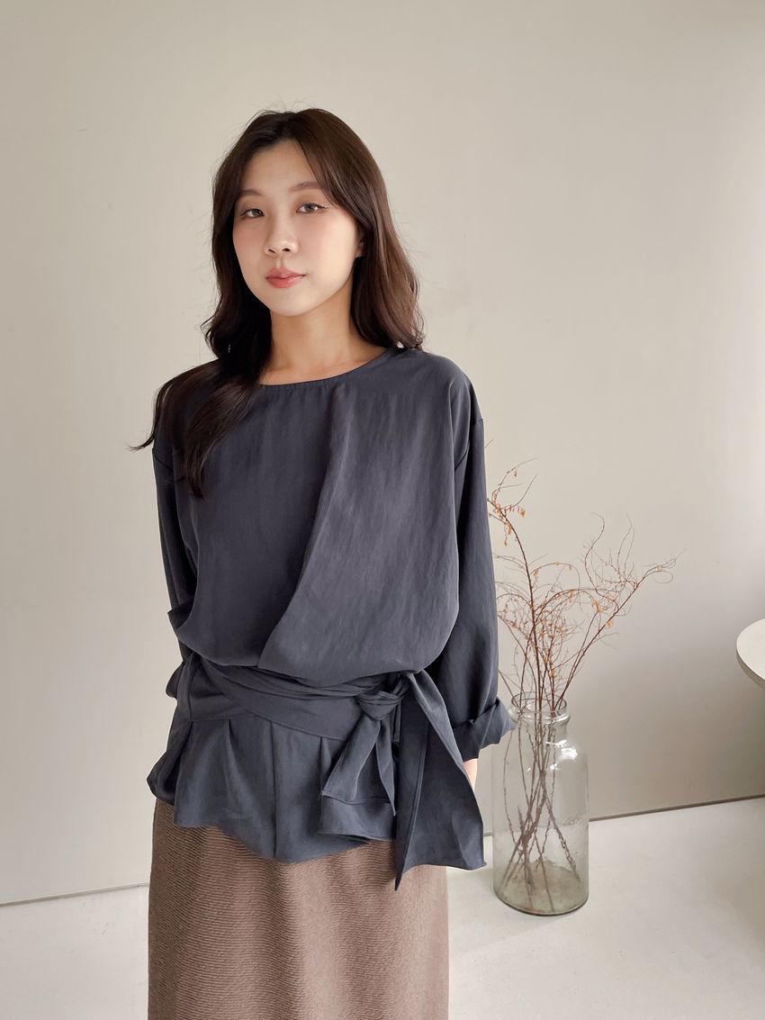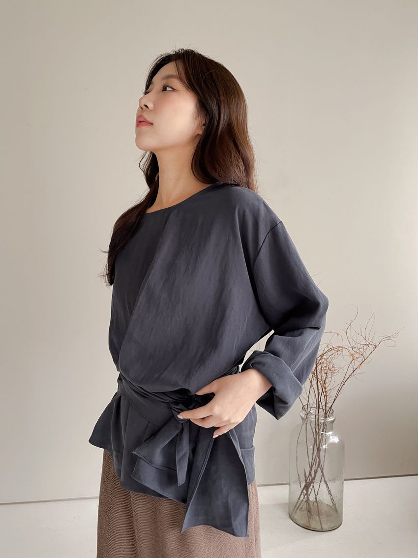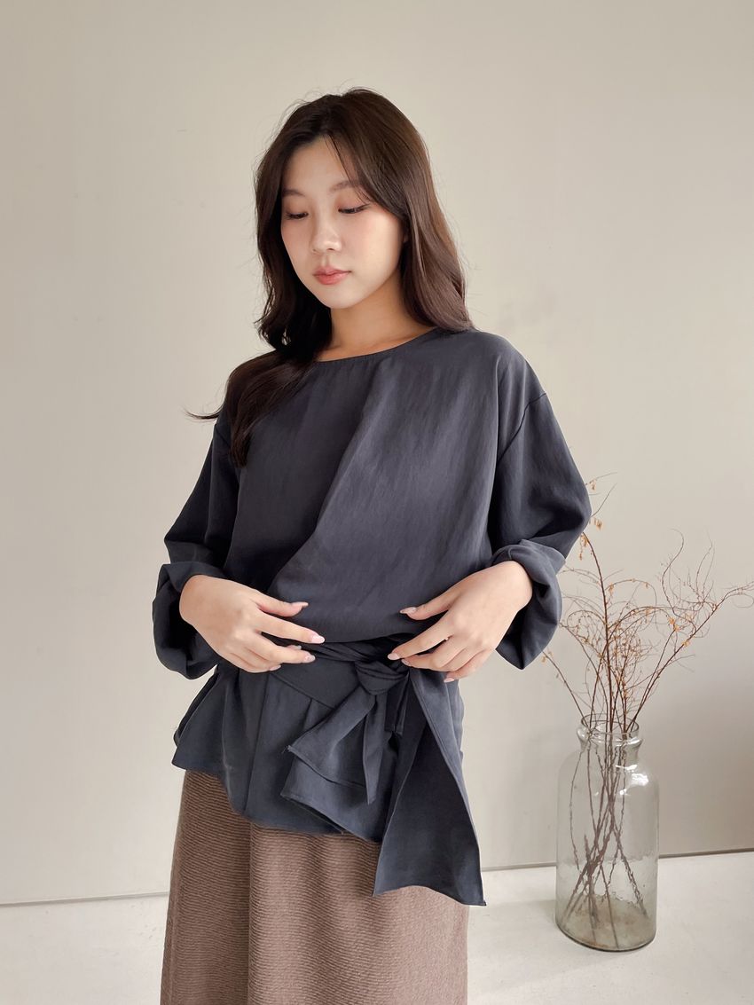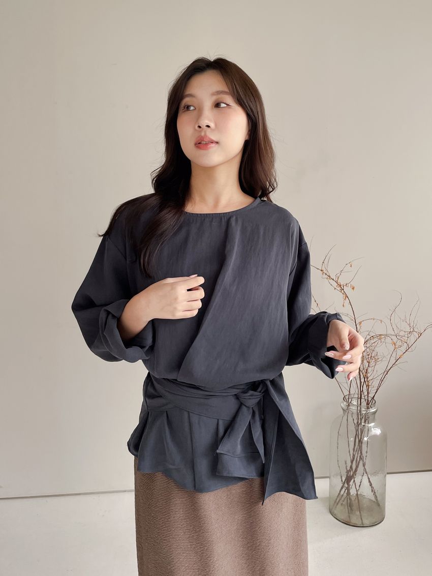 > 腰封綁帶天絲衫