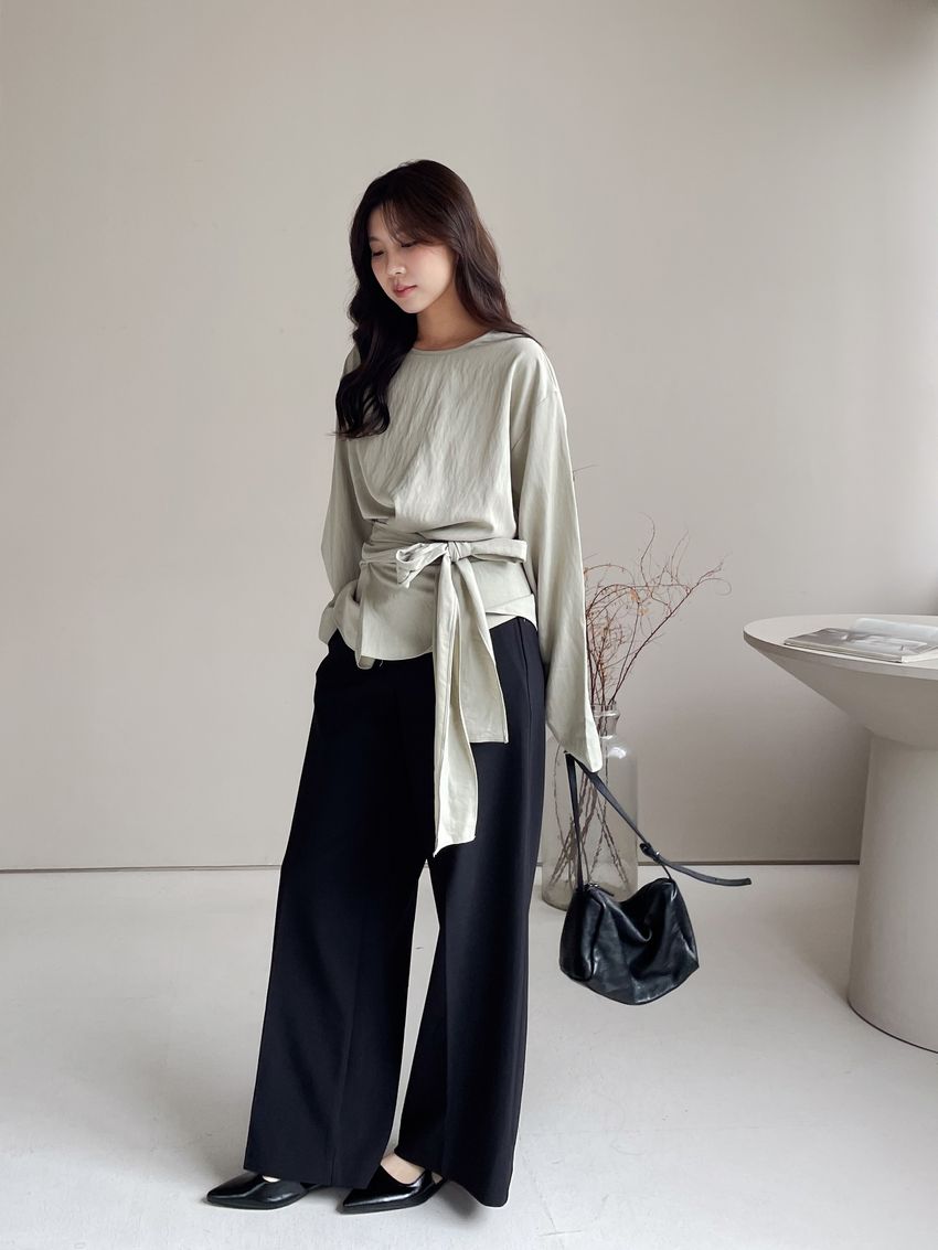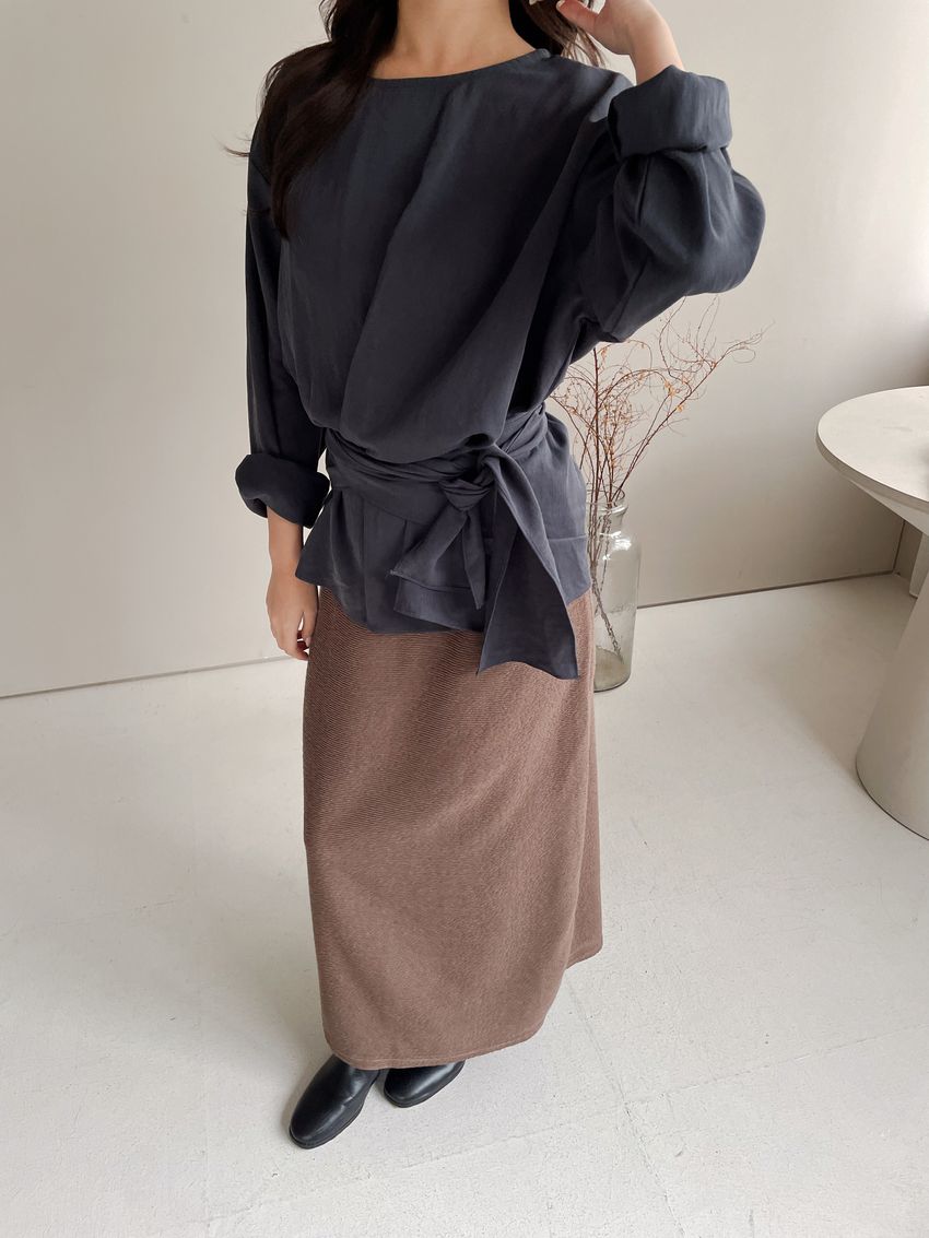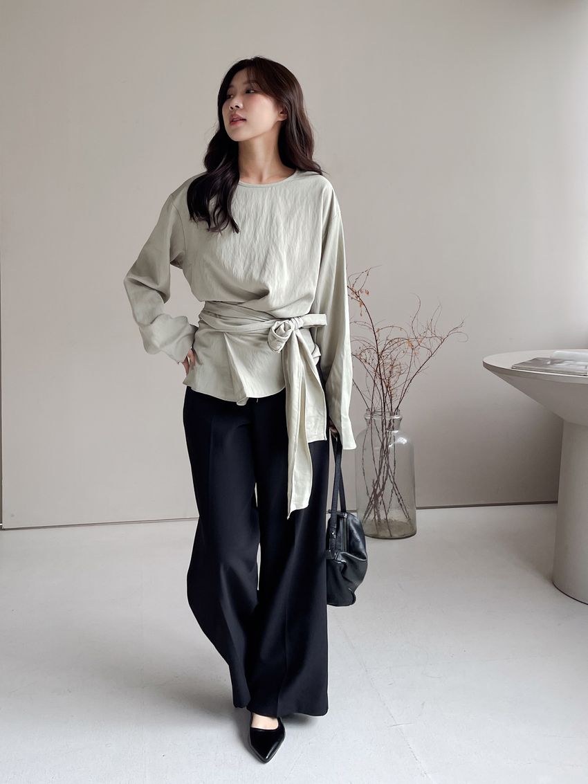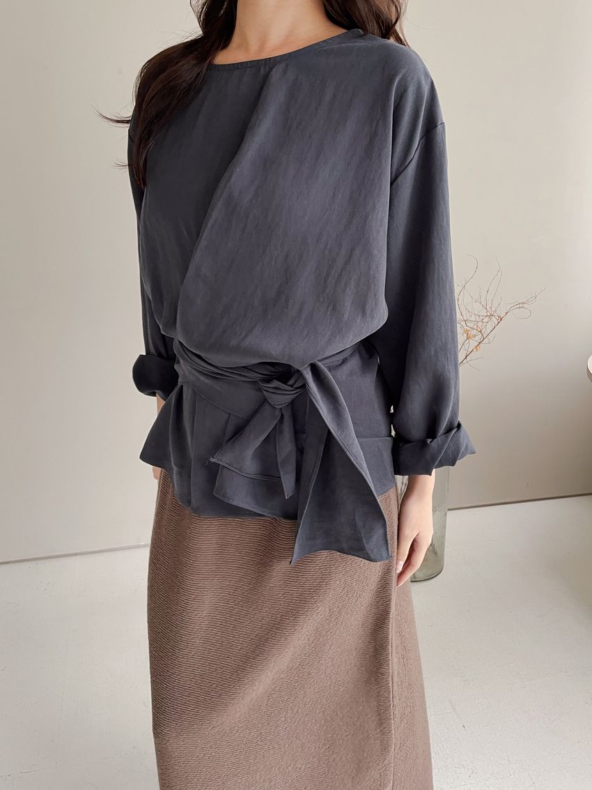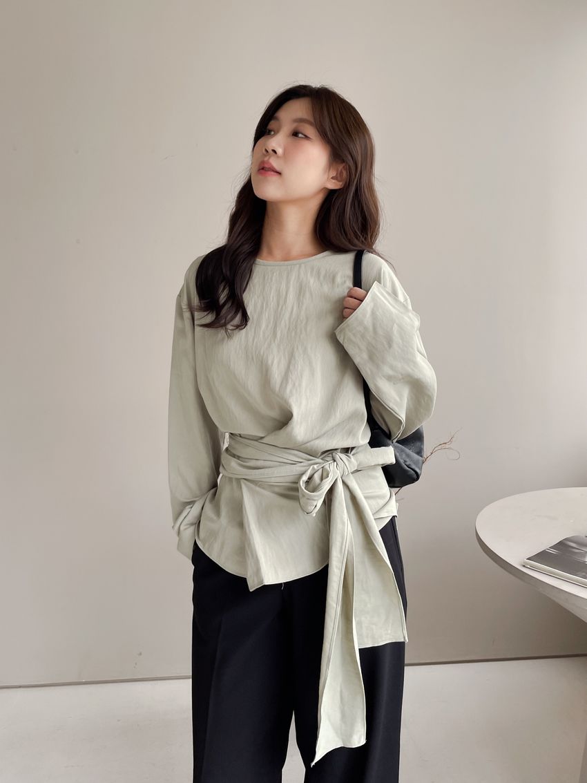 > 腰封綁帶天絲衫