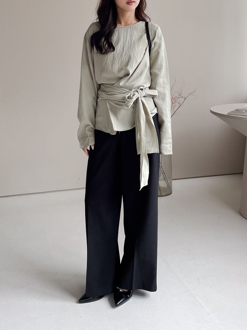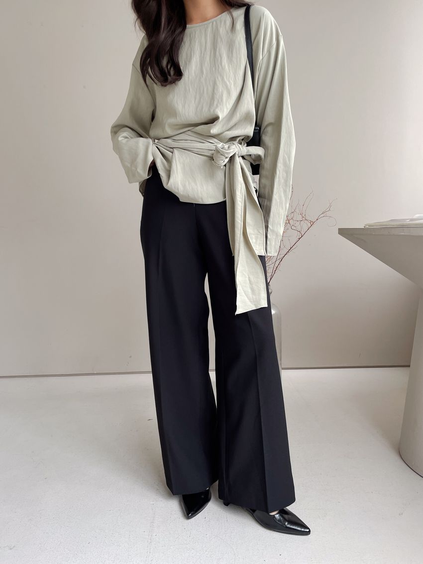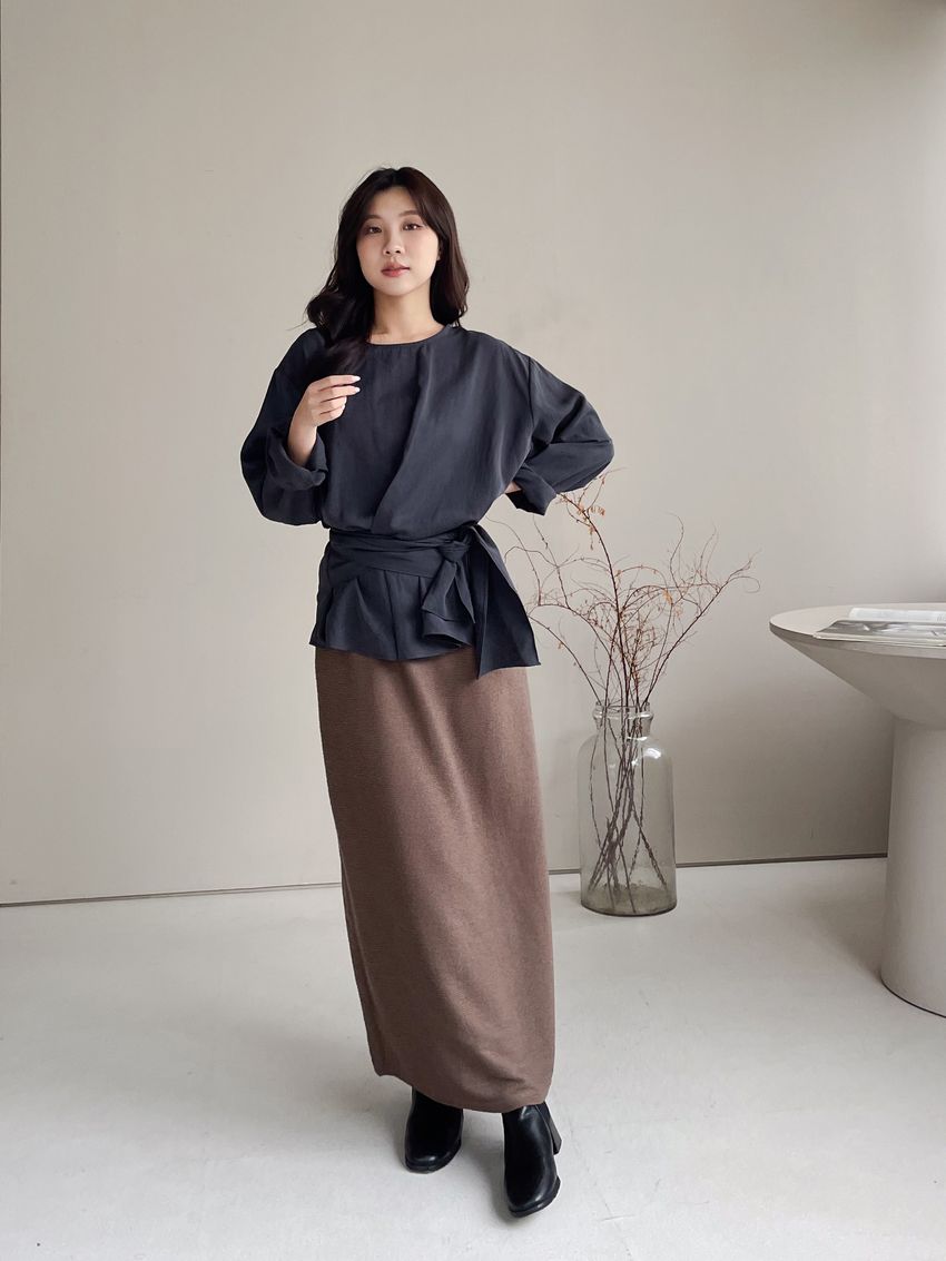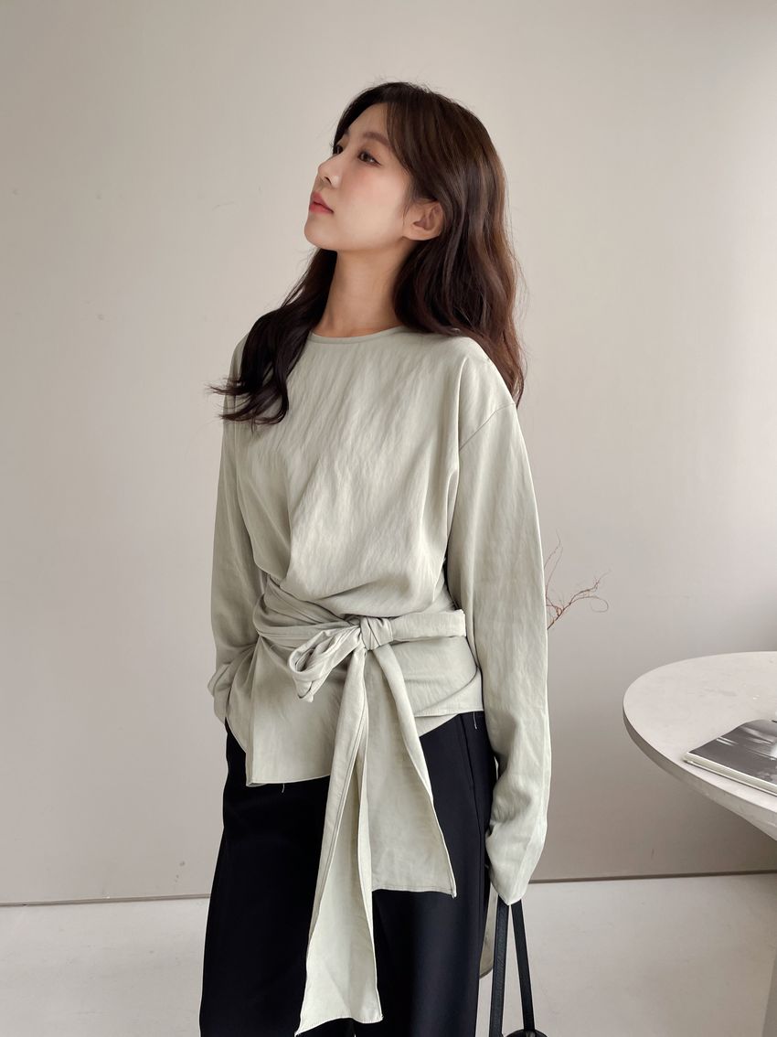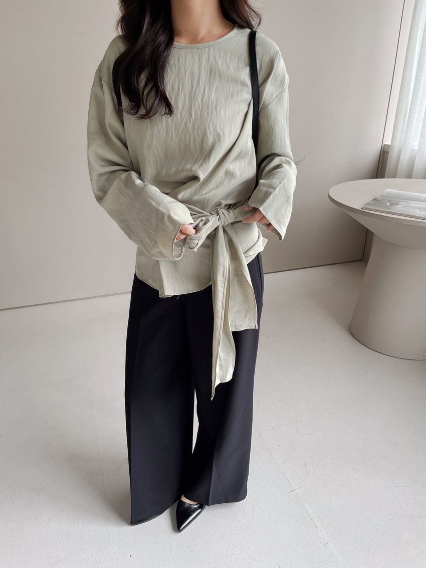 > 腰封綁帶天絲衫