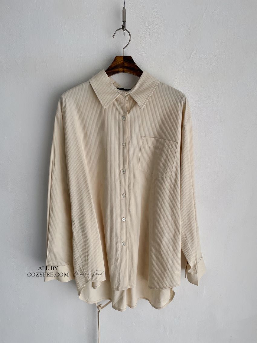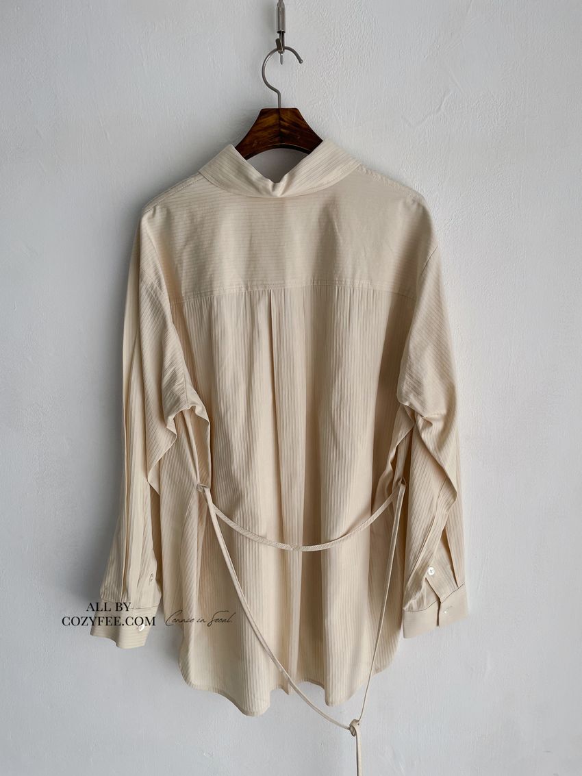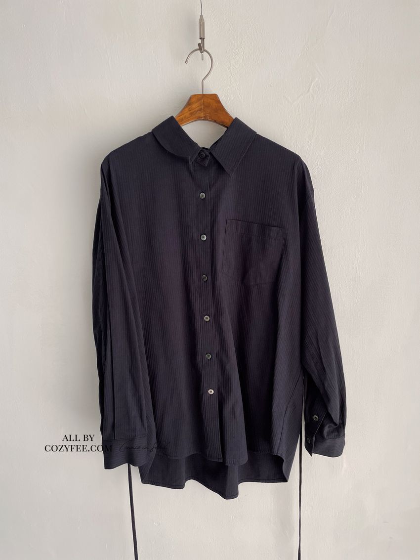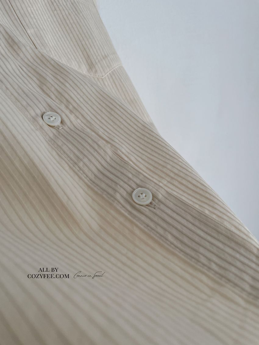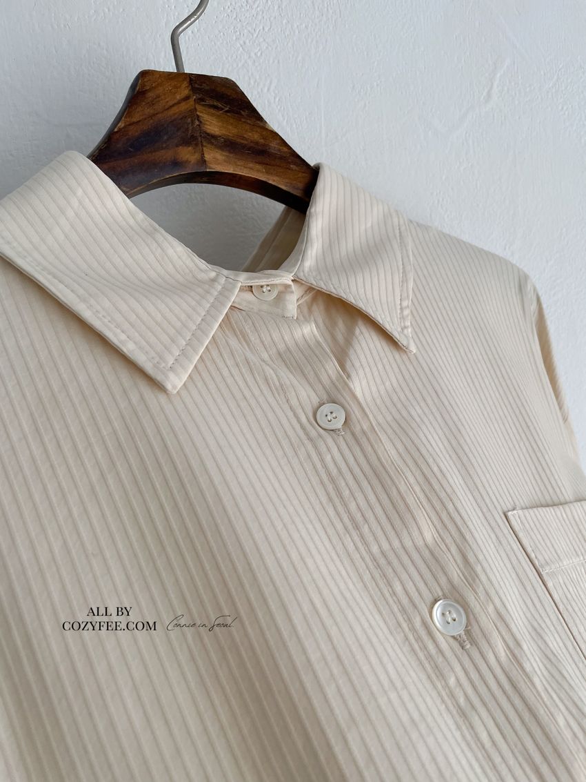 > 立體感直紋挺版襯衫(附細帶)