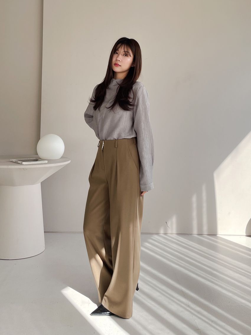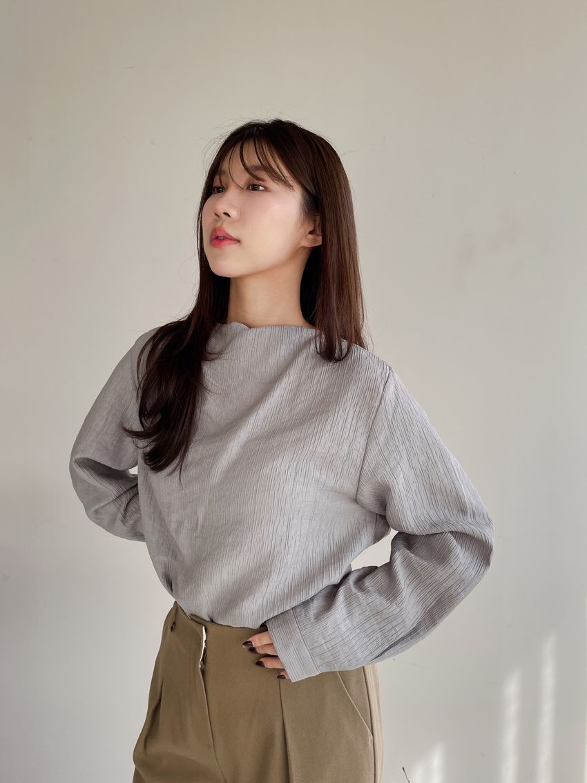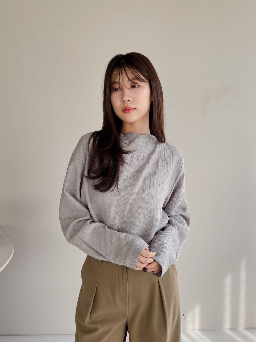 揉皺細摺後釦半領衫