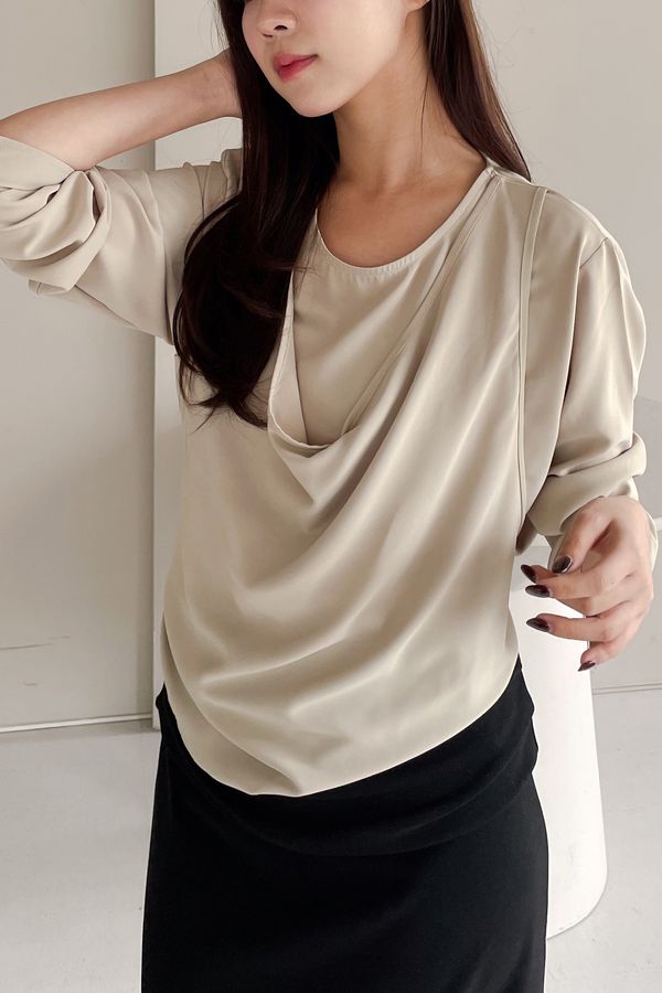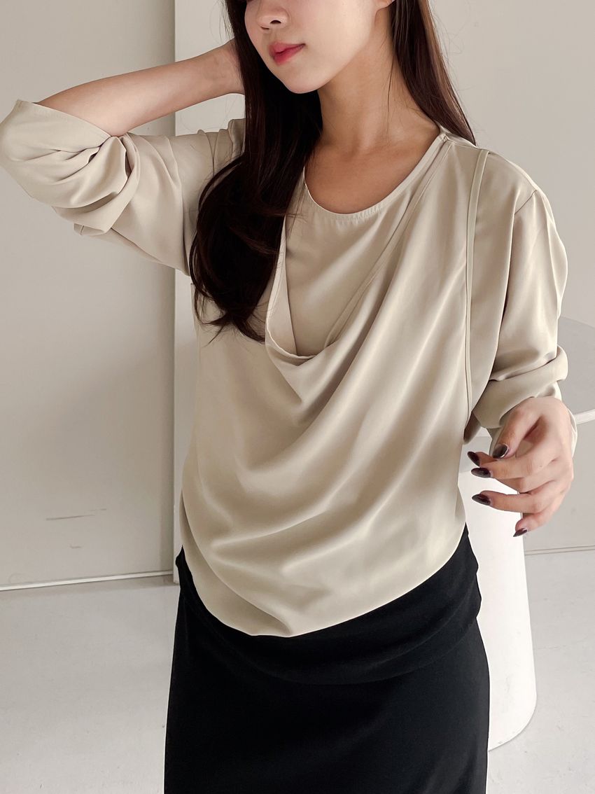 雪紡假兩件背心綁帶衫