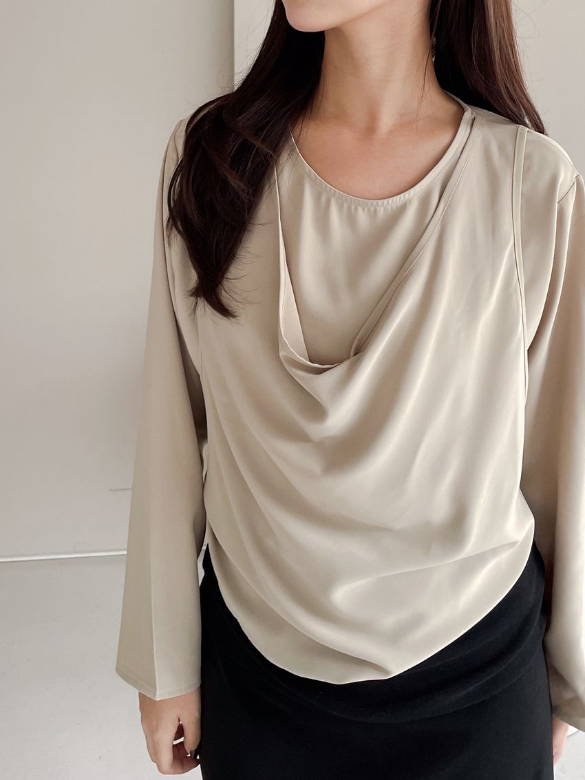> 雪紡假兩件背心綁帶衫