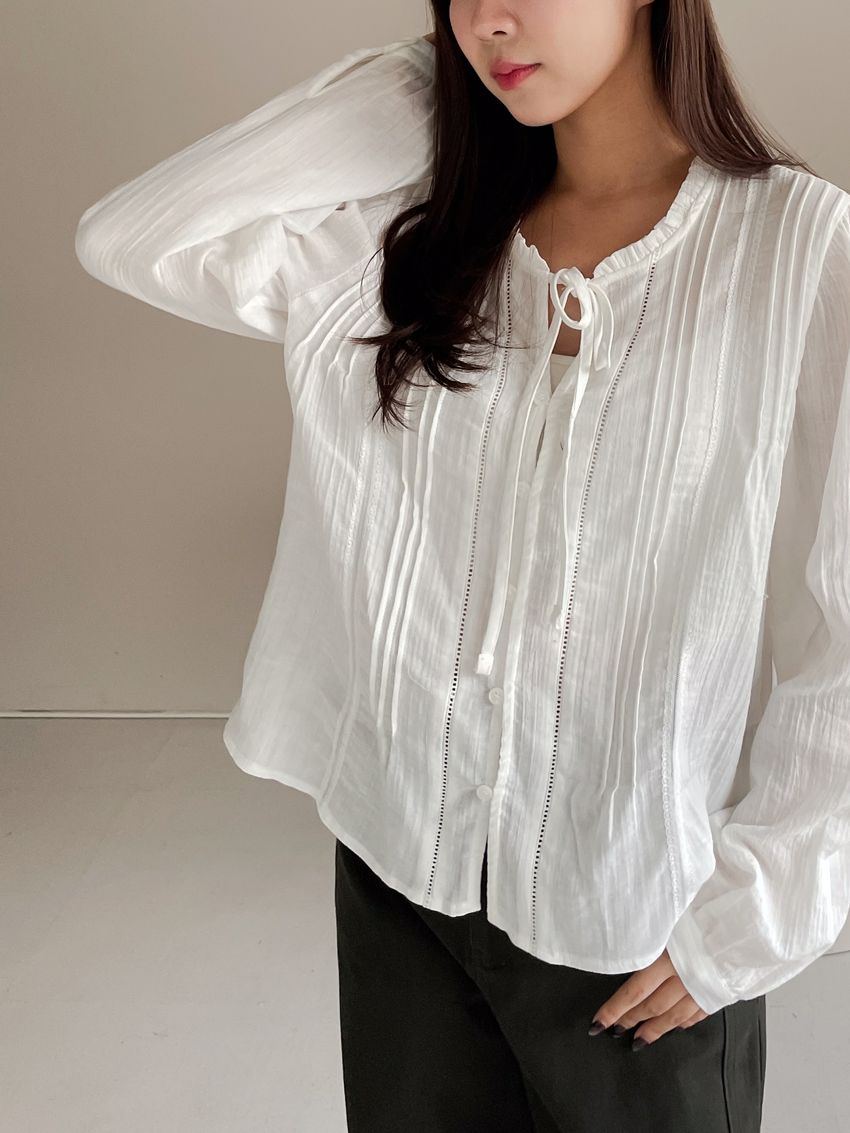 荷葉滾領壓摺布蕾衫