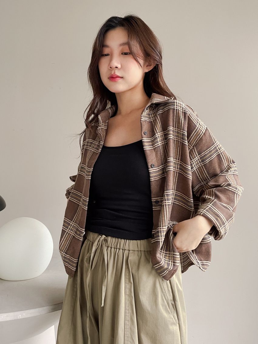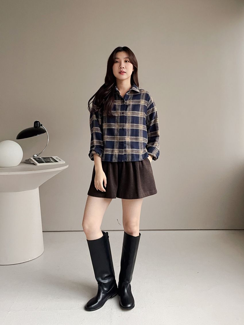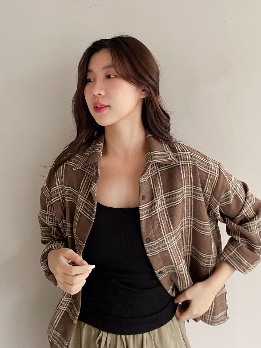> Connie推薦款!短版格紋法蘭絨襯衫