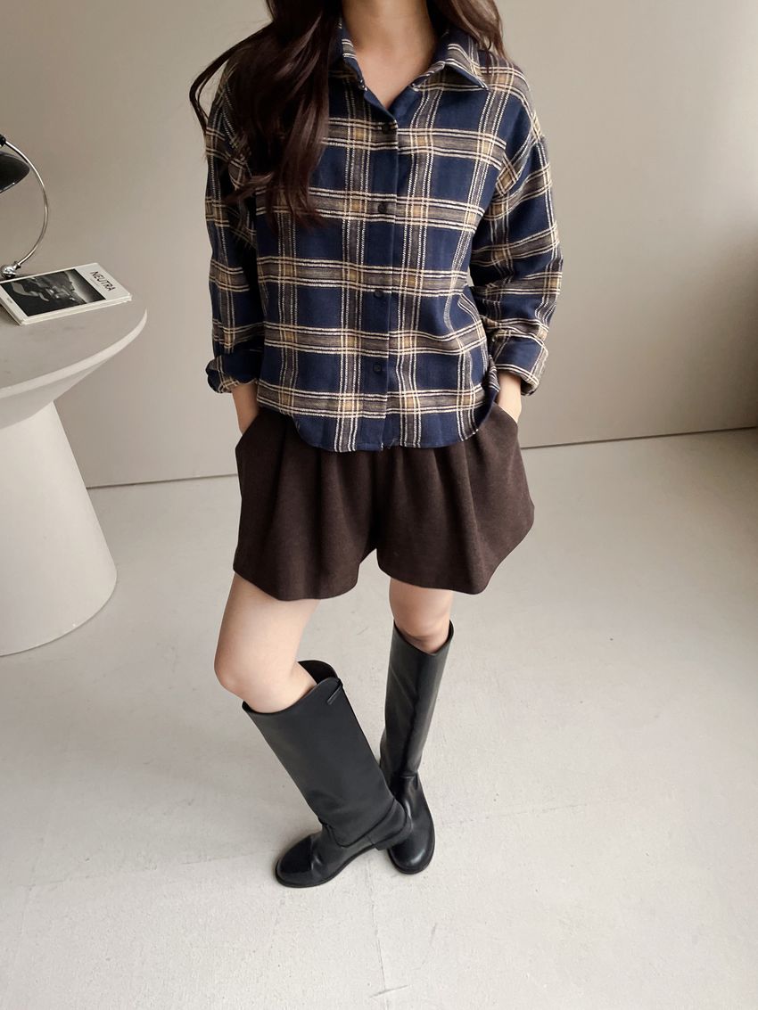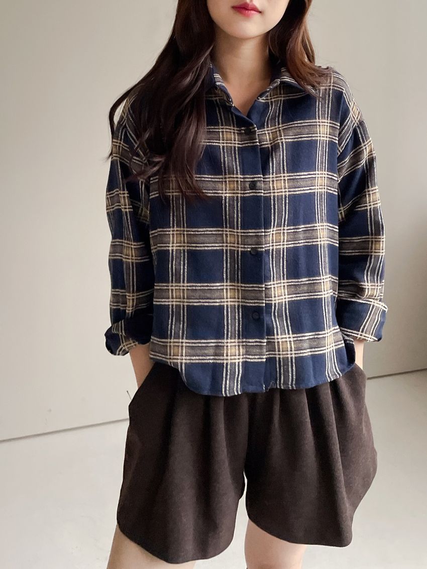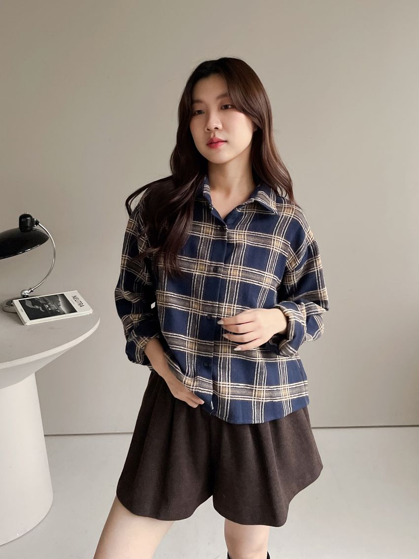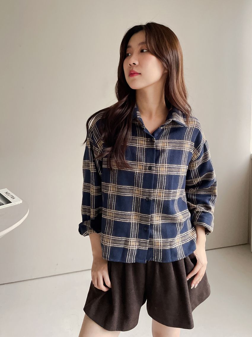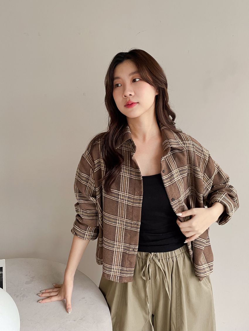 Connie推薦款!短版格紋法蘭絨襯衫