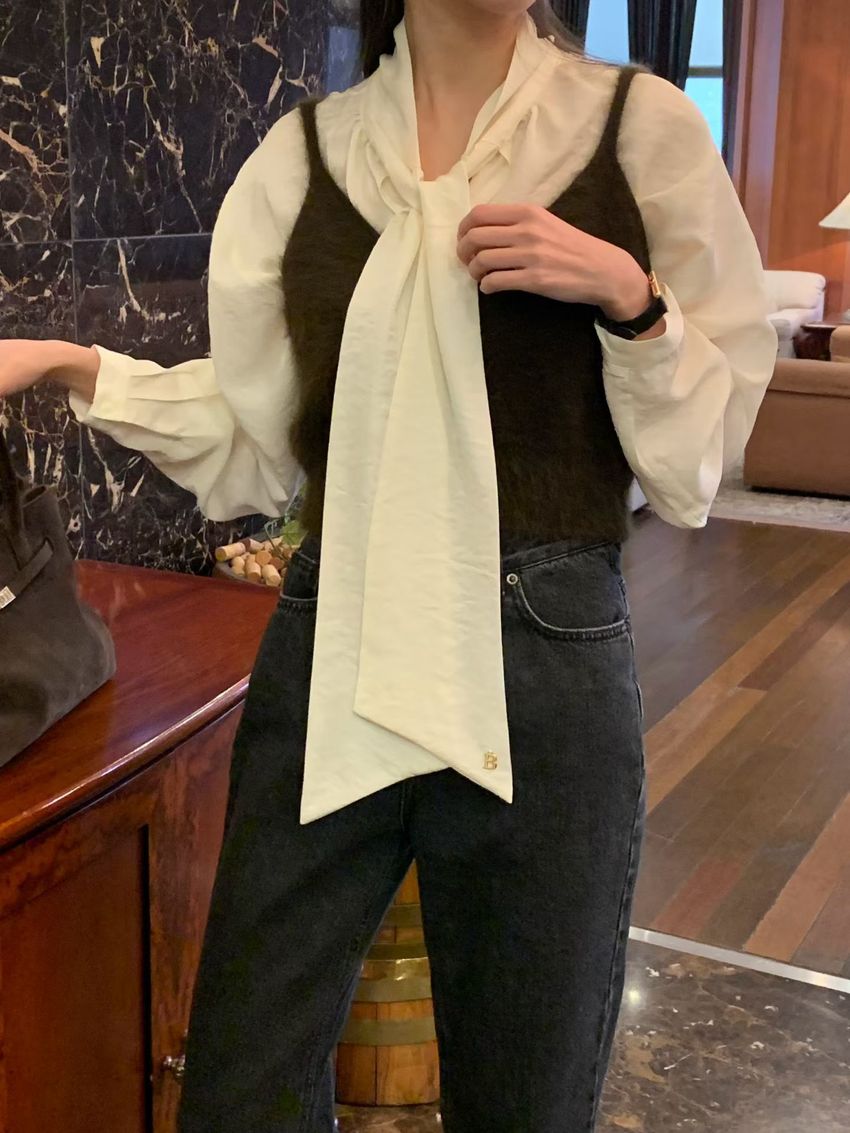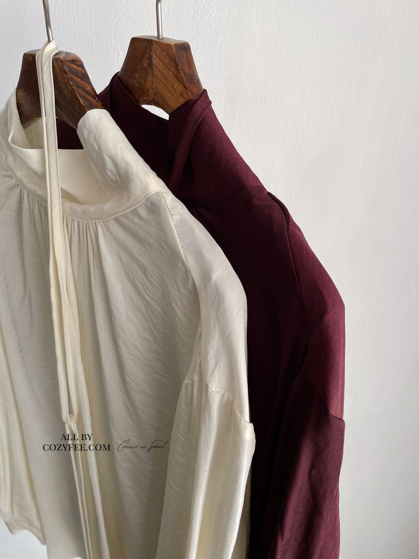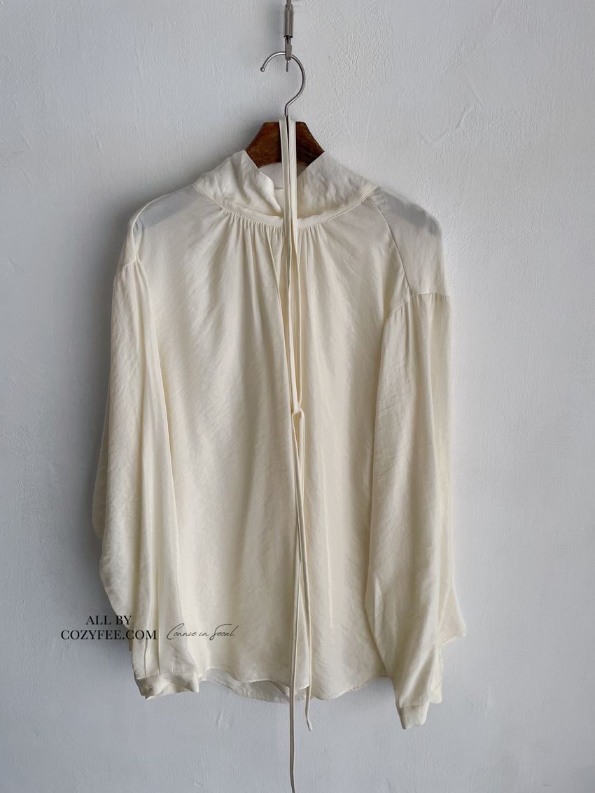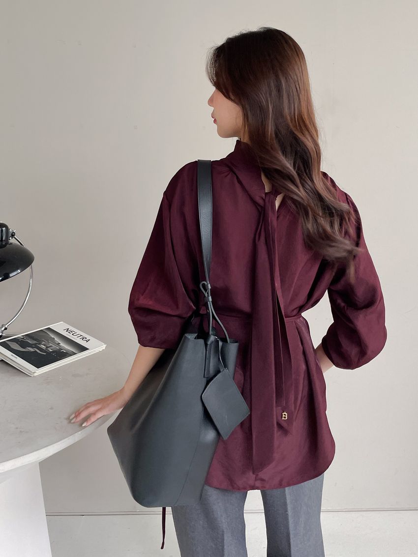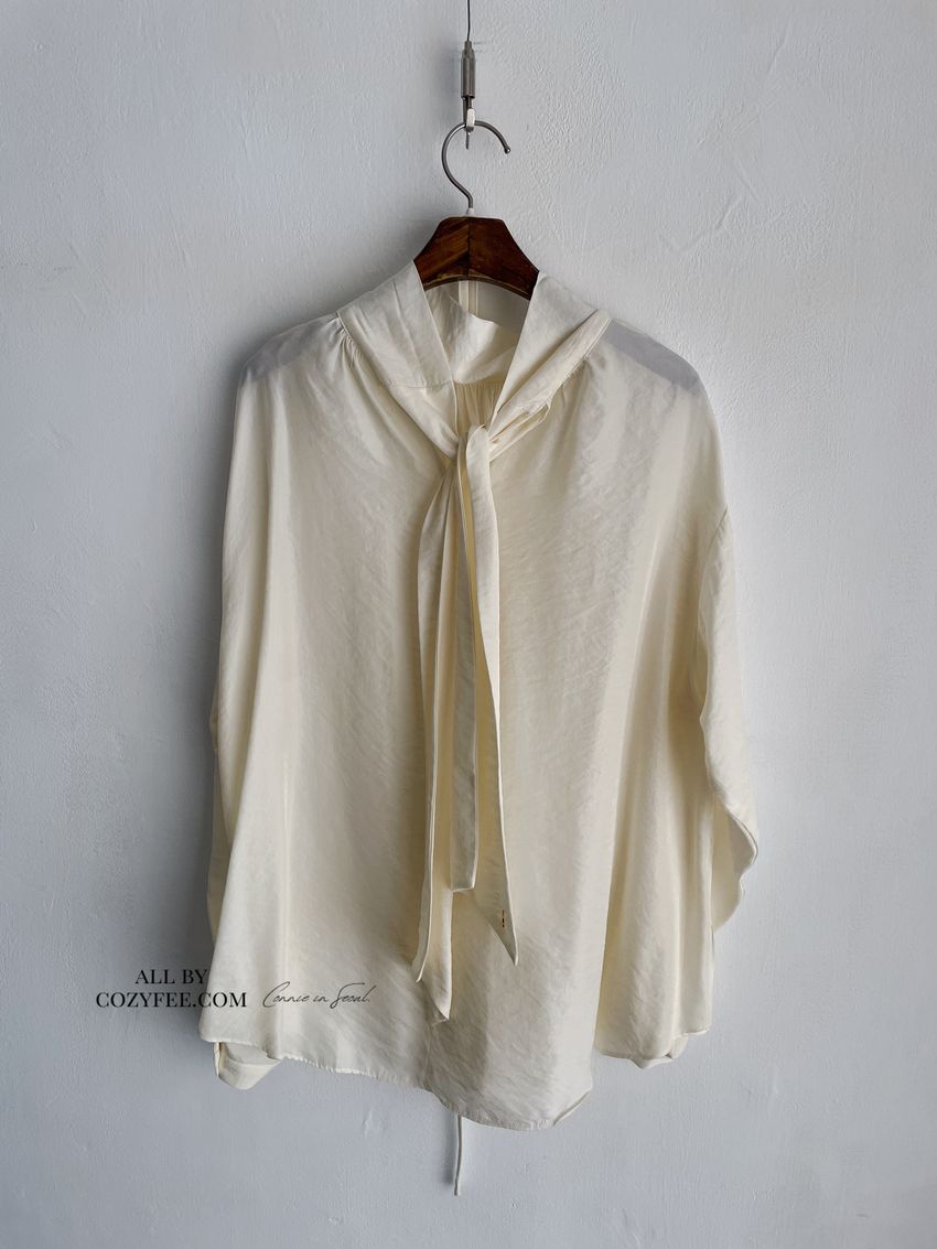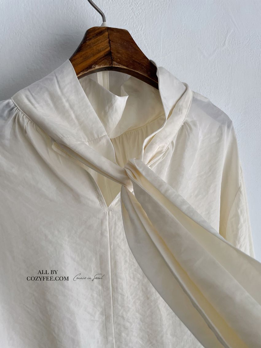 > Connie推薦款!唯美壓紋光澤領帶雪紡衫(附細帶)