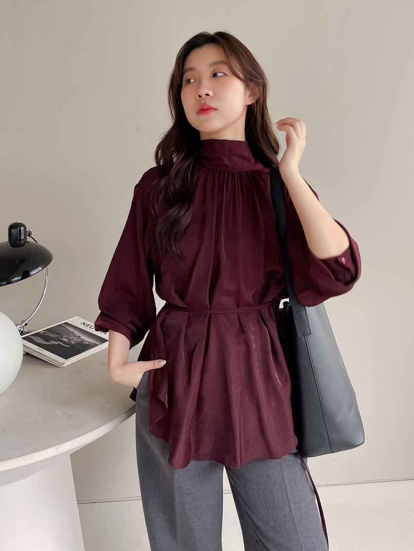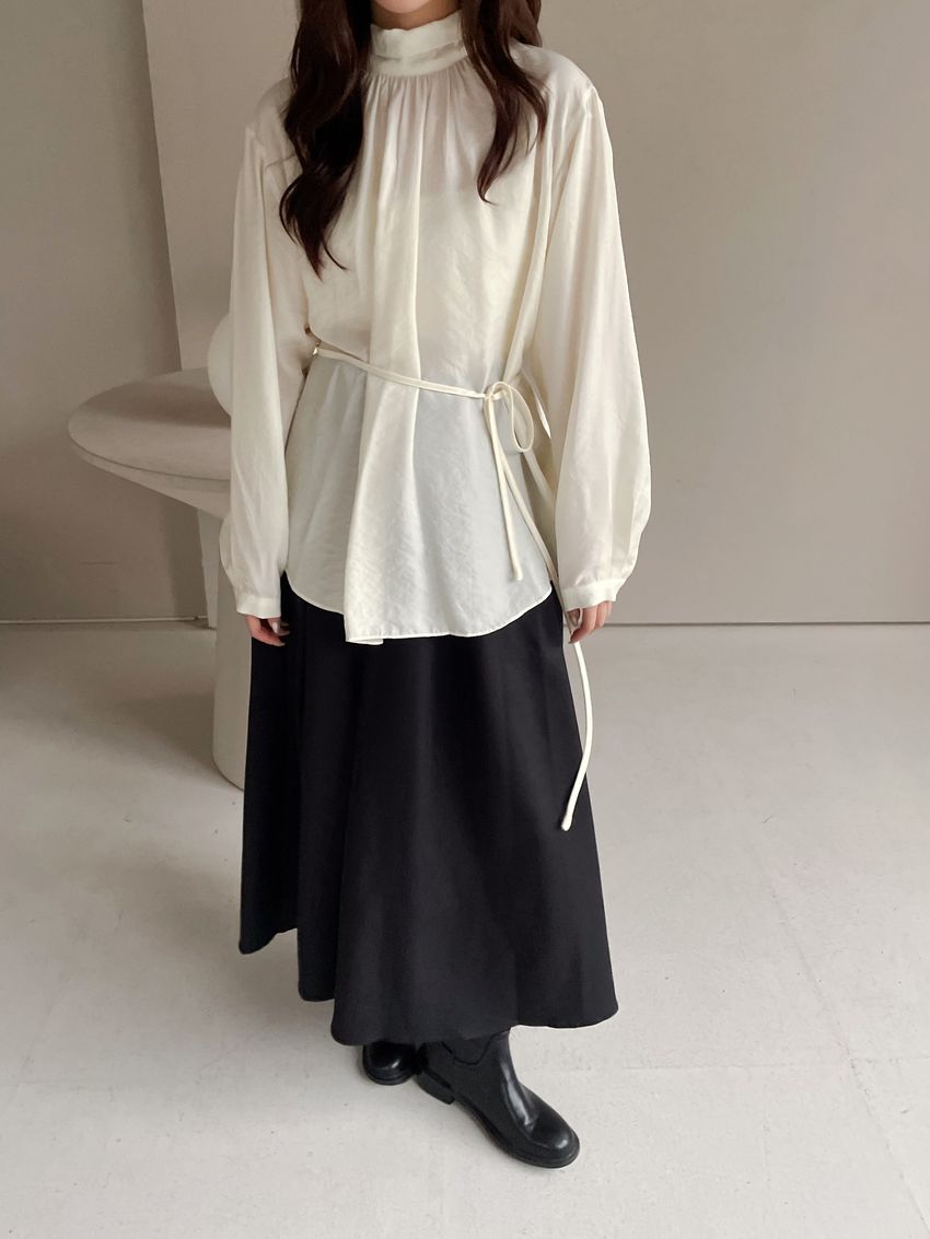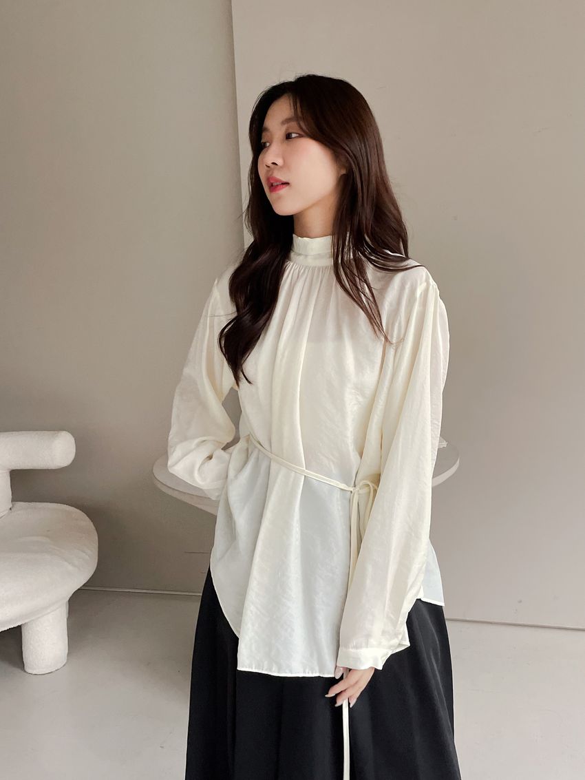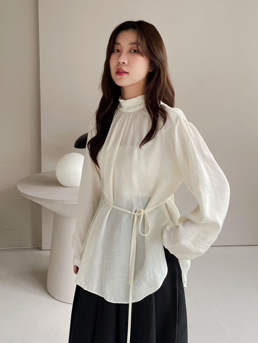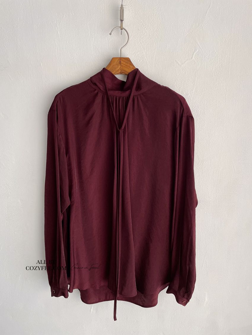 > Connie推薦款!唯美壓紋光澤領帶雪紡衫(附細帶)
