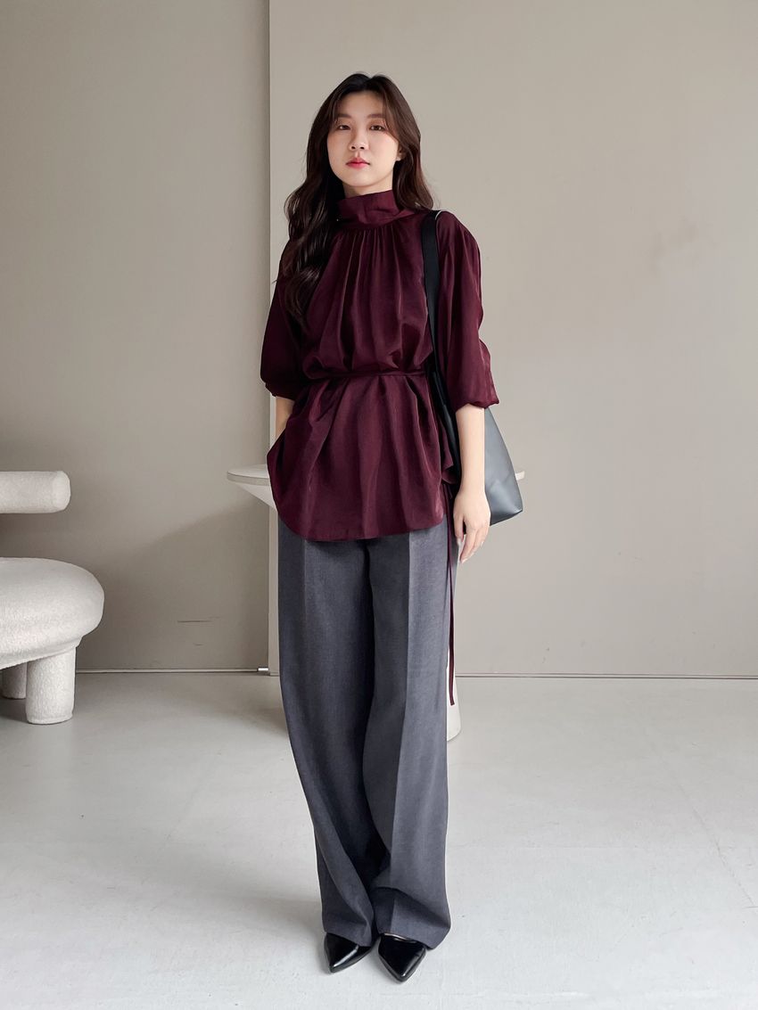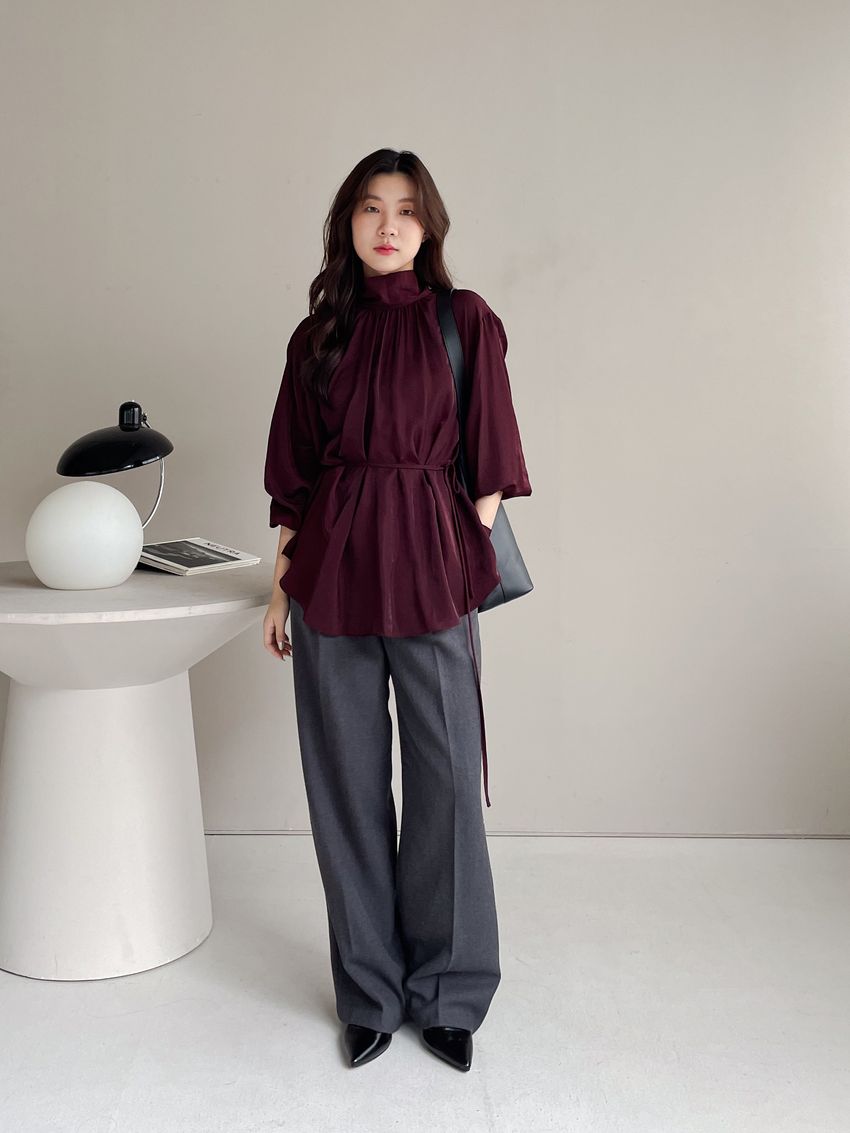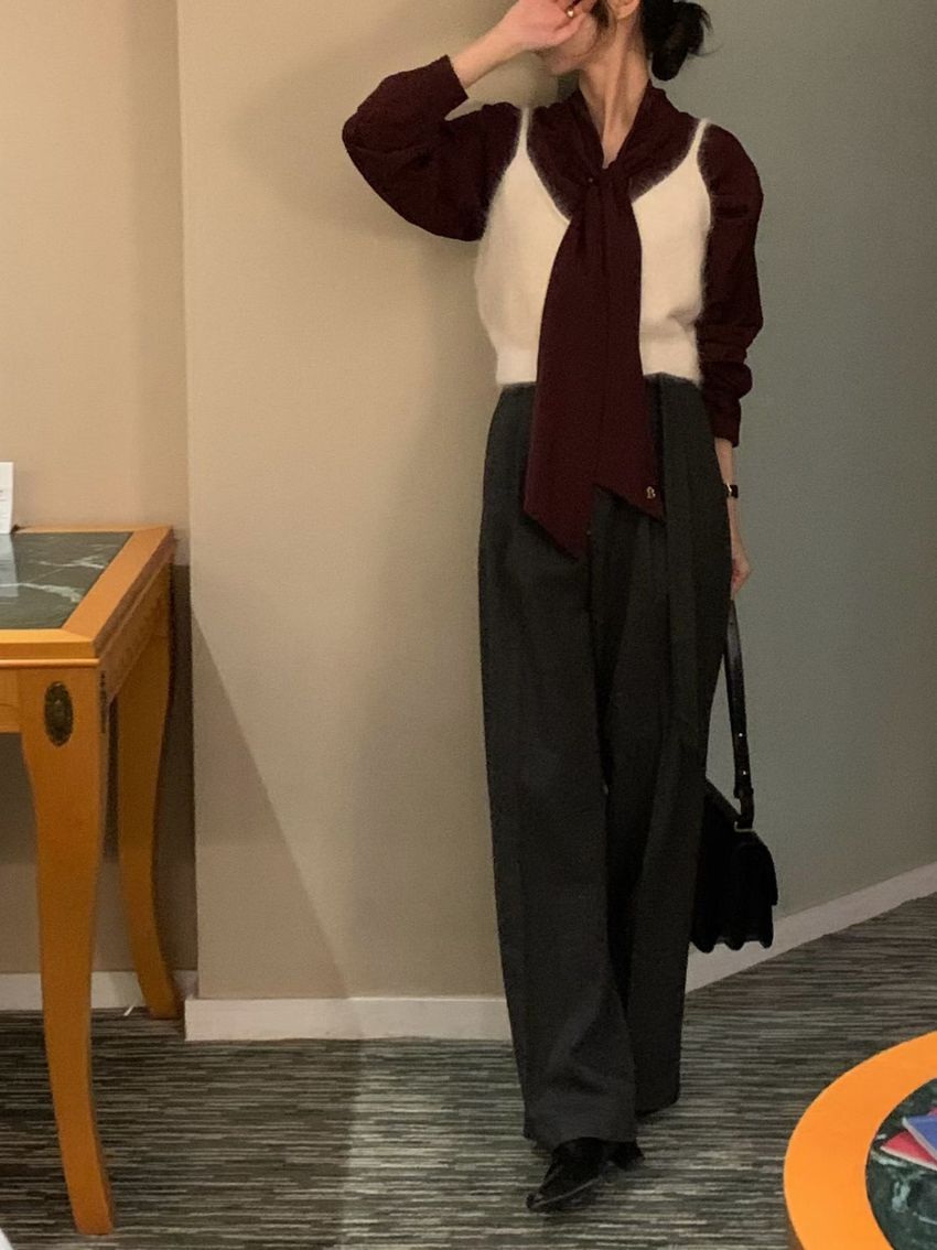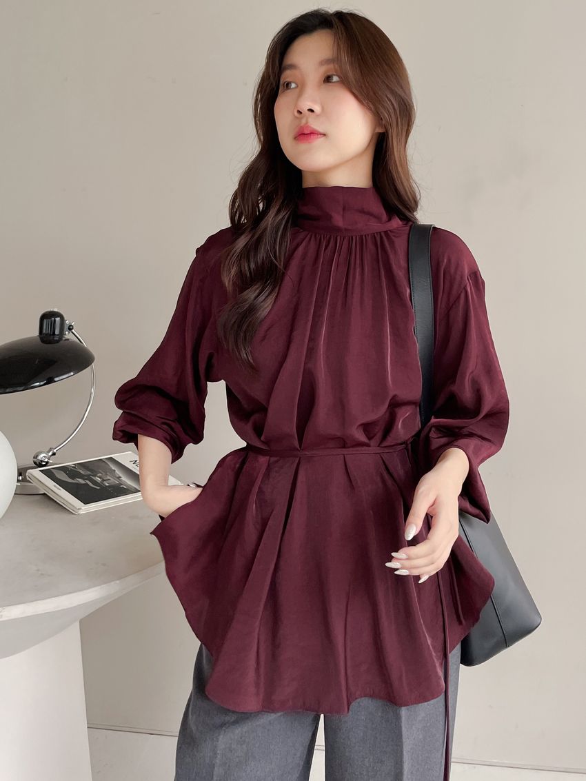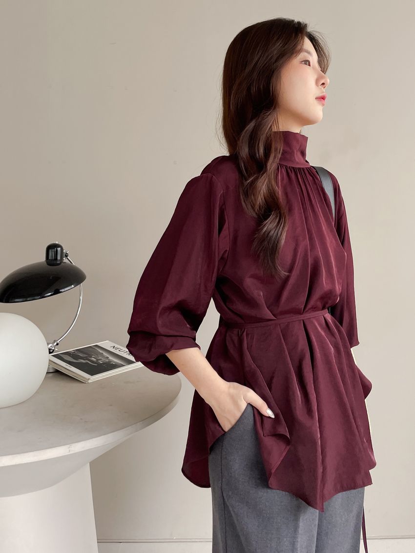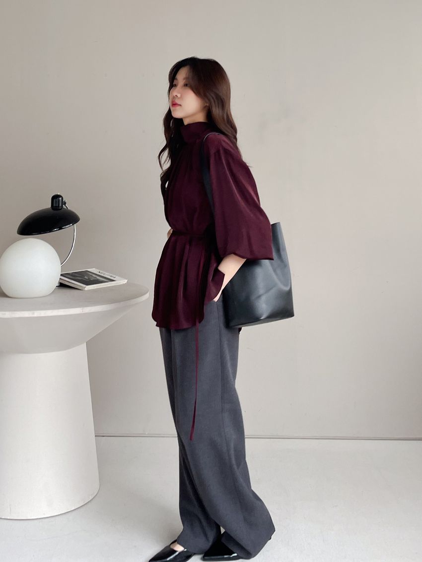 > Connie推薦款!唯美壓紋光澤領帶雪紡衫(附細帶)