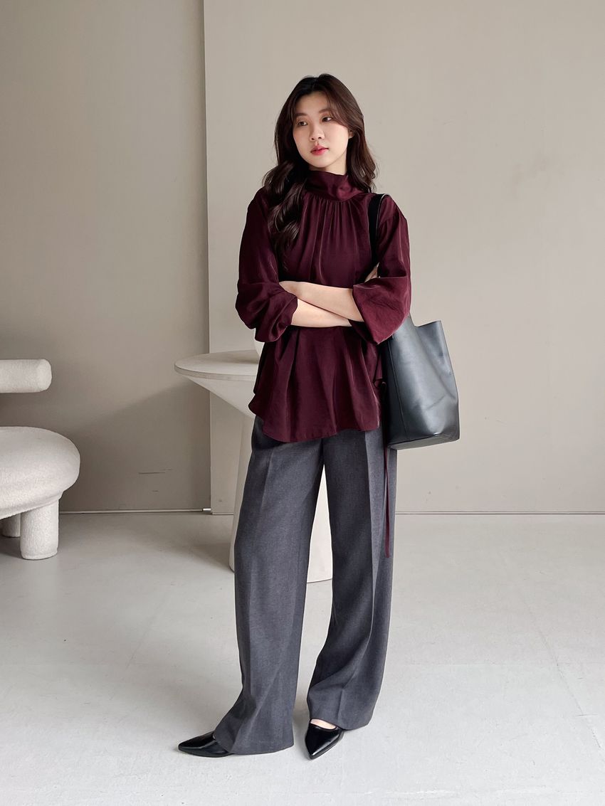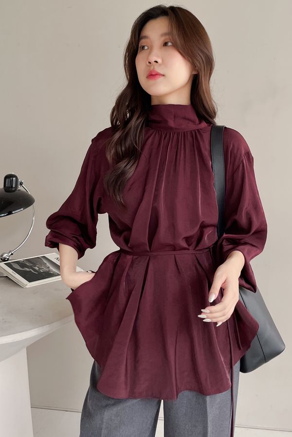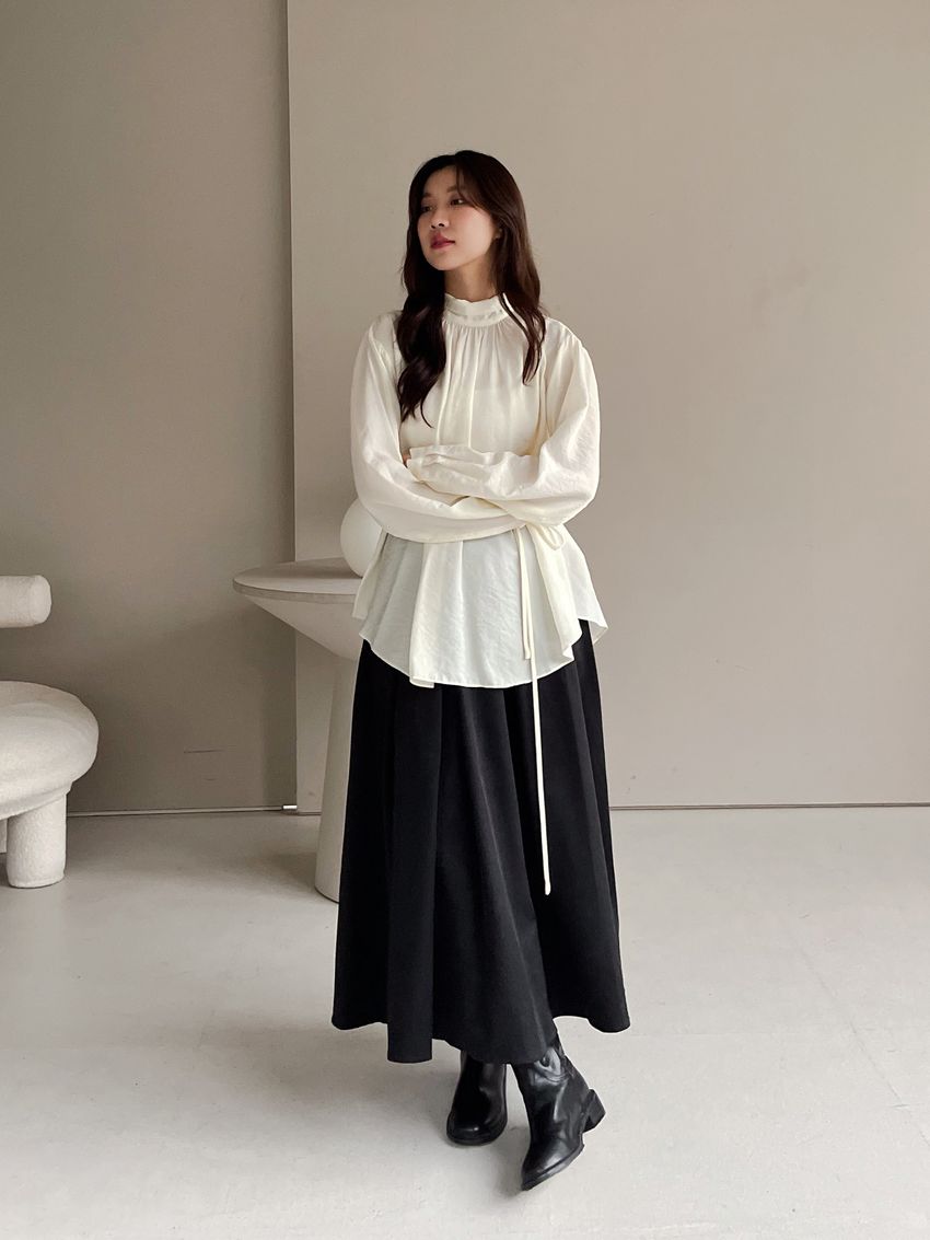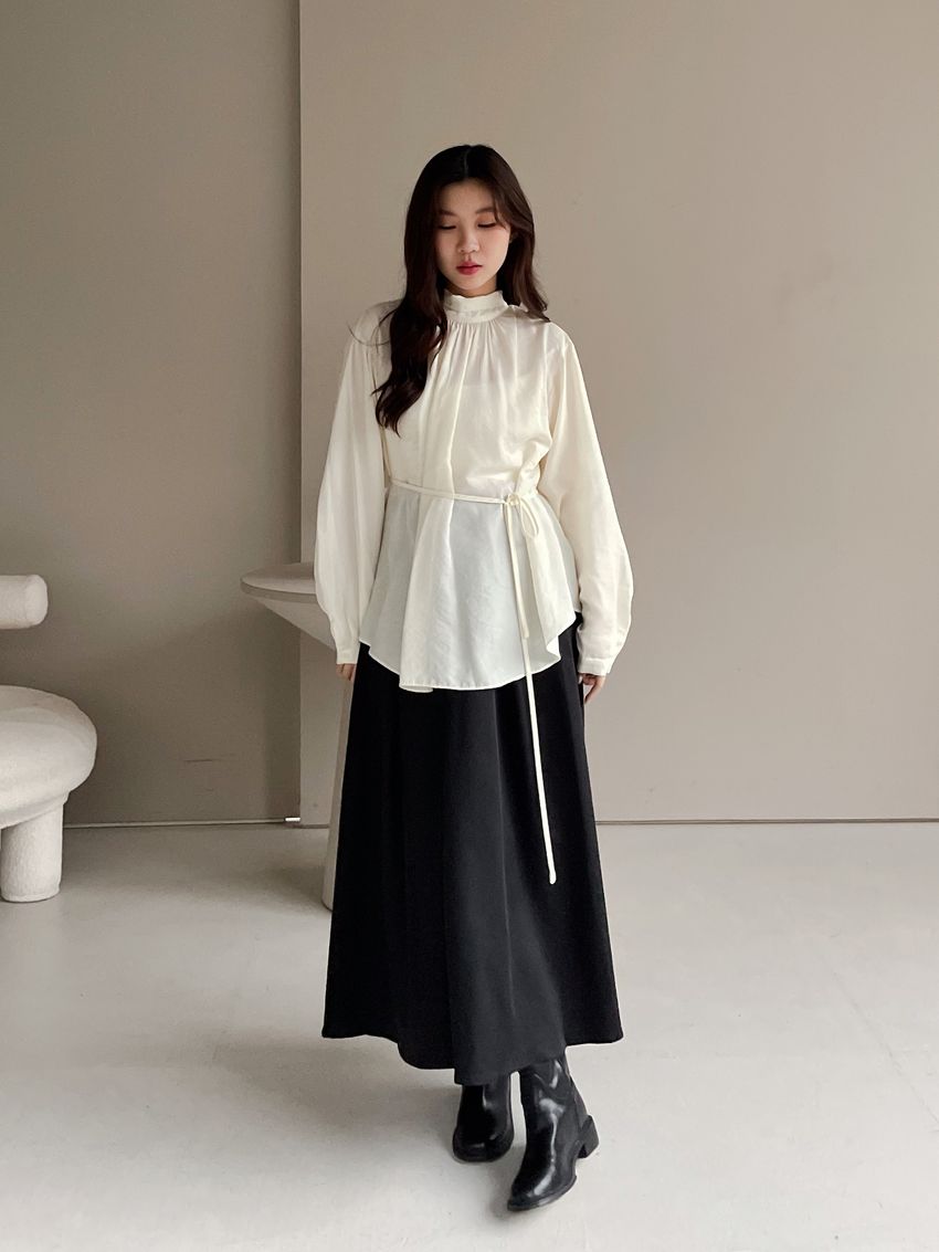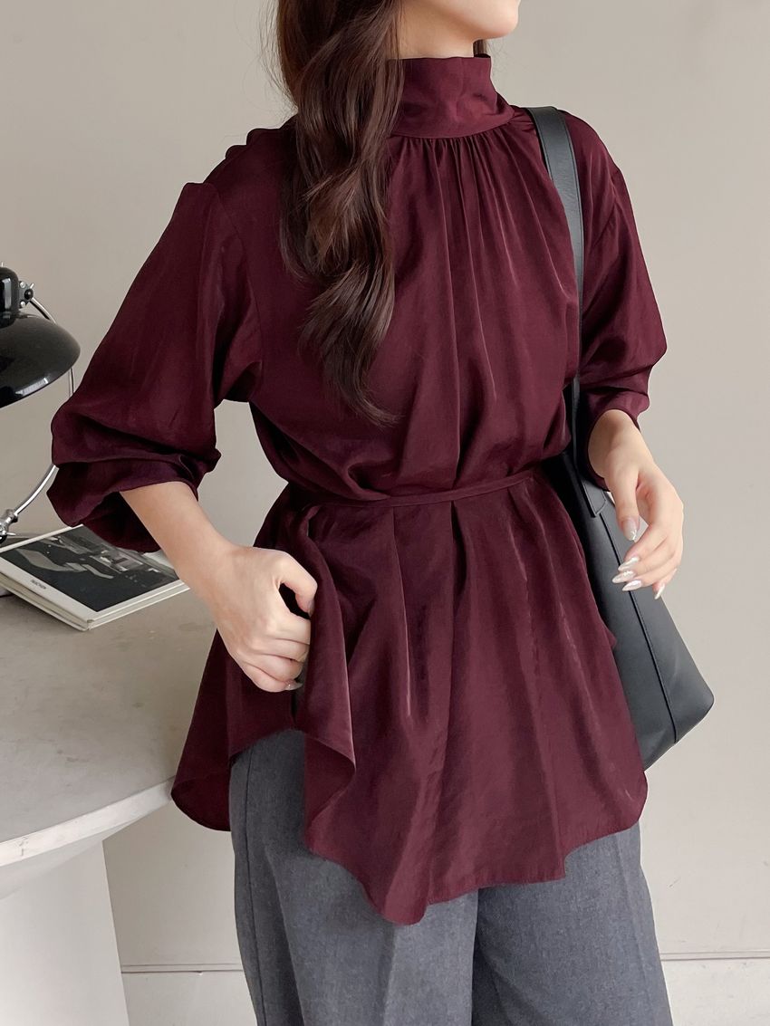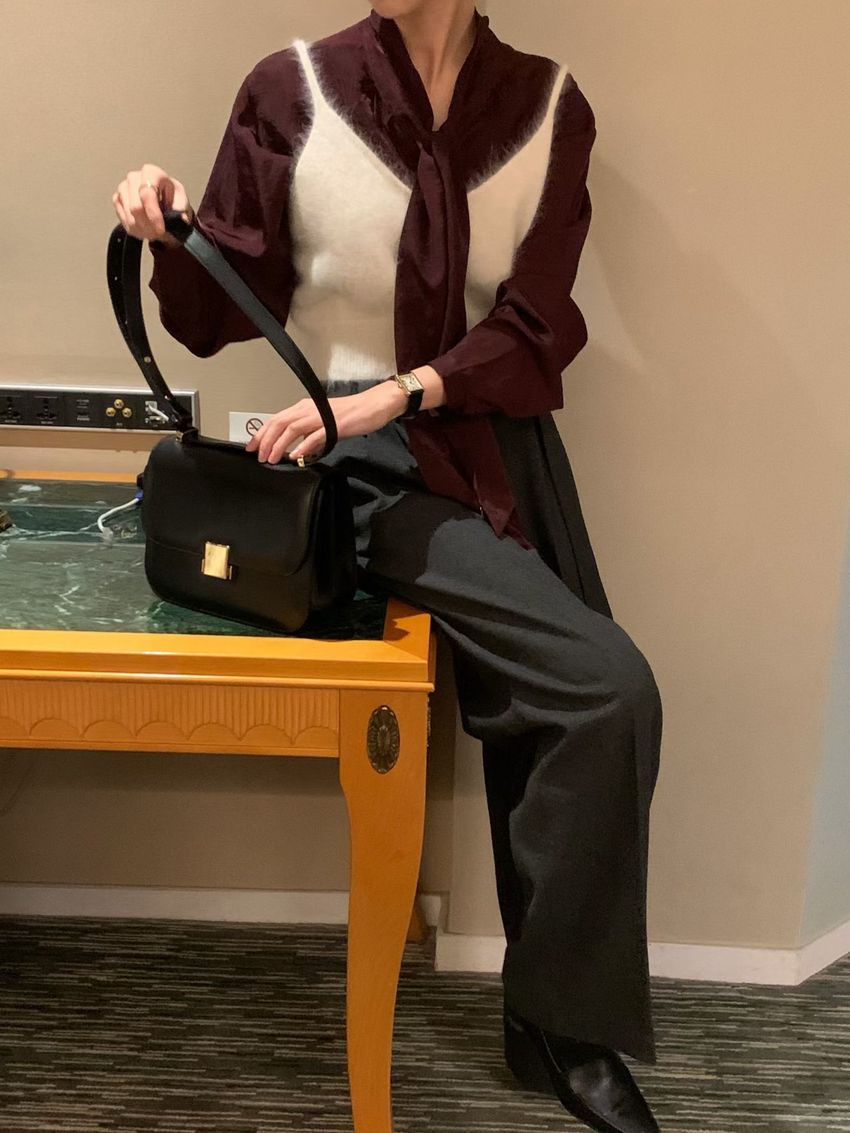 > Connie推薦款!唯美壓紋光澤領帶雪紡衫(附細帶)