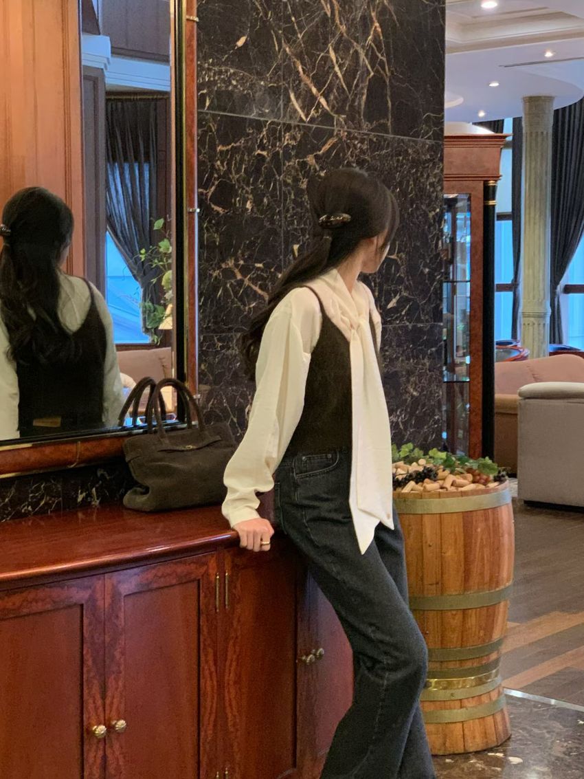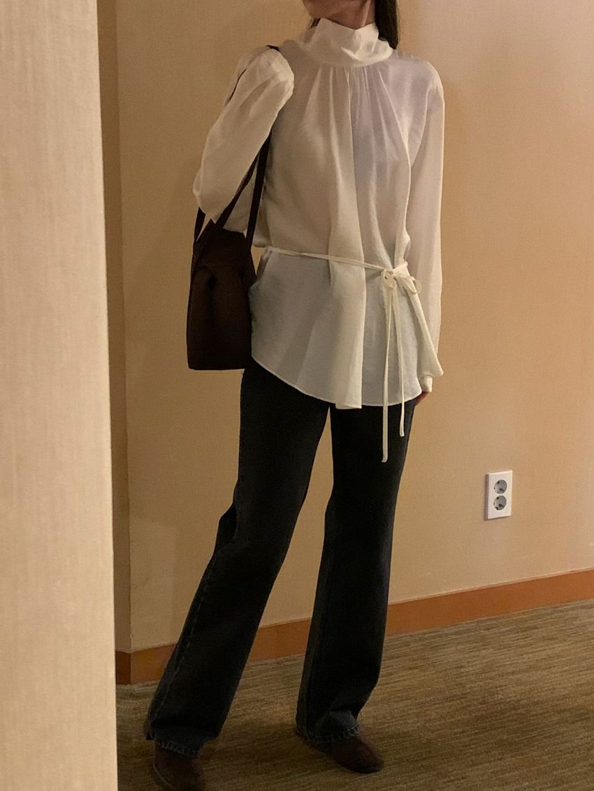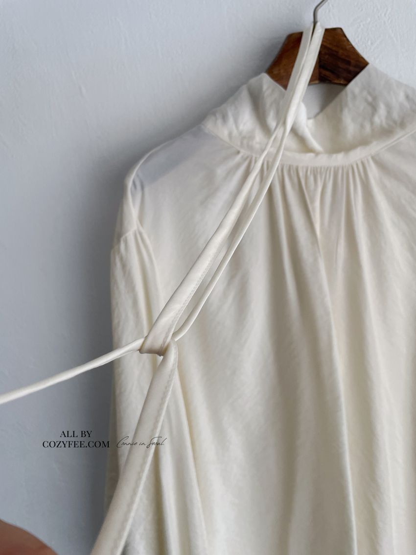 Connie推薦款!唯美壓紋光澤領帶雪紡衫(附細帶)