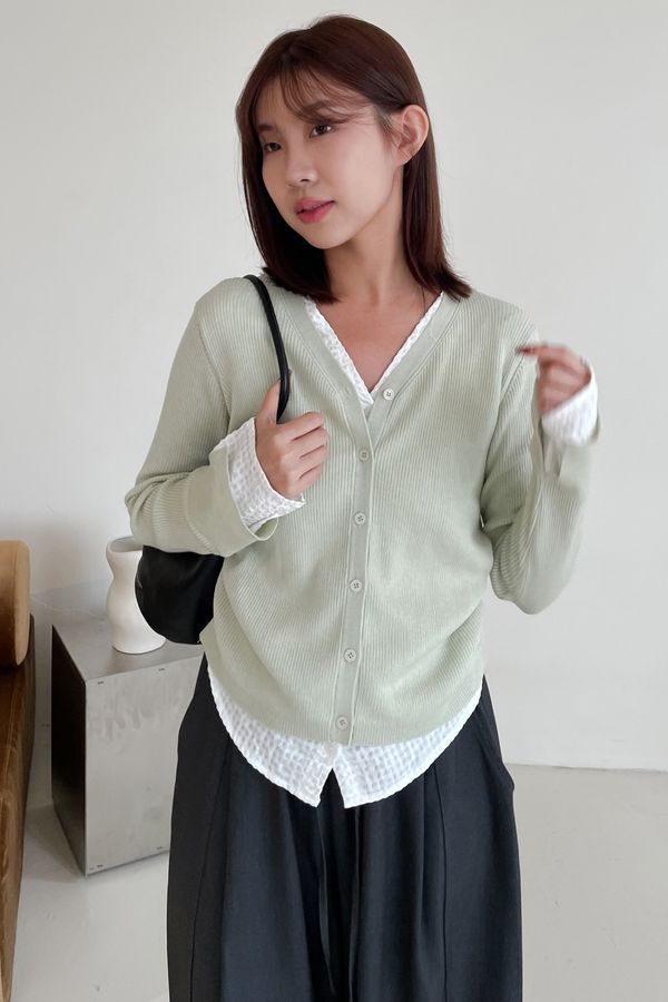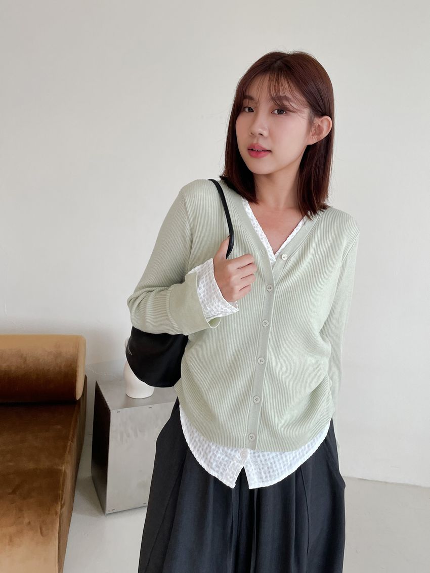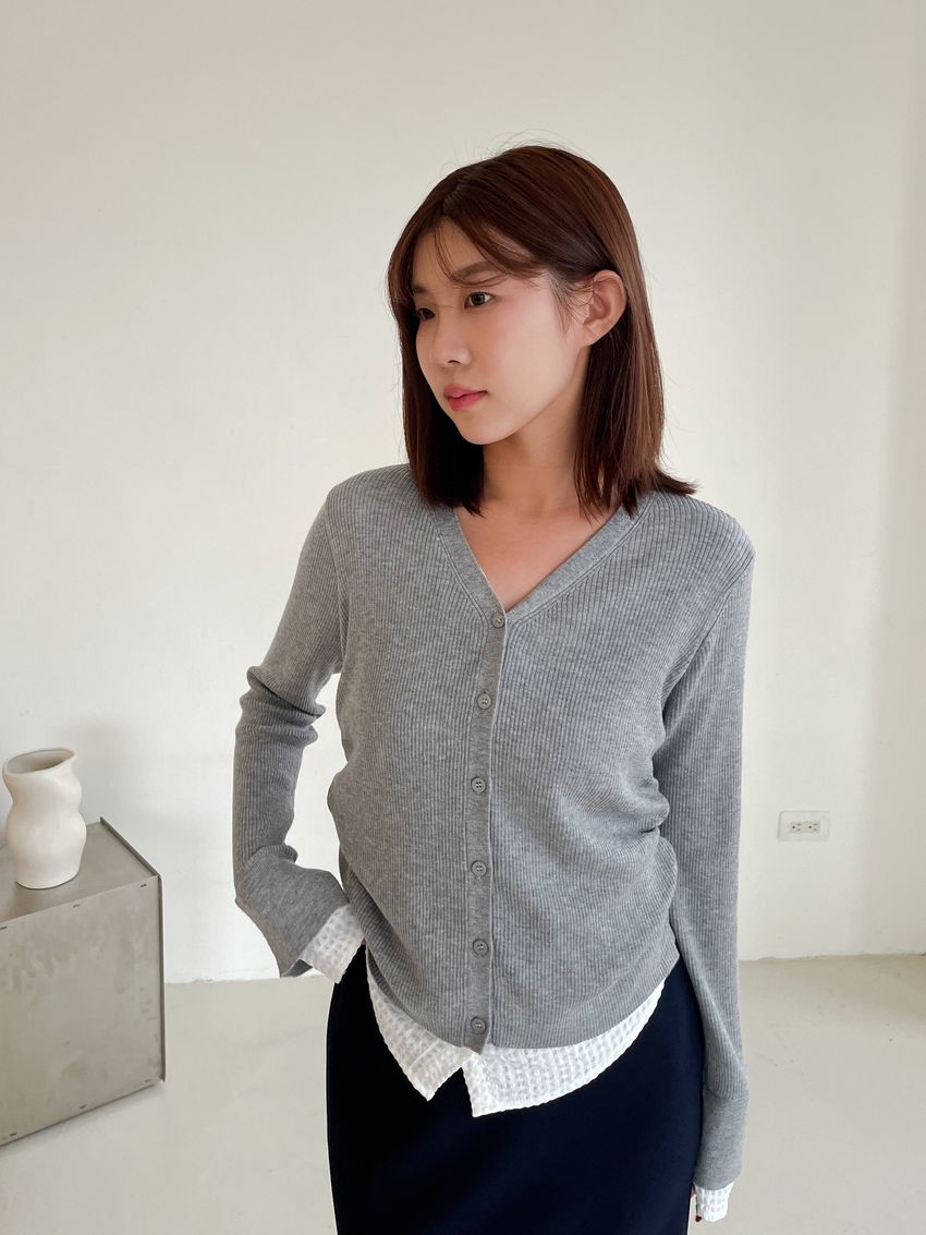 > Connie推薦款!內格拼接假兩件排釦針織衫