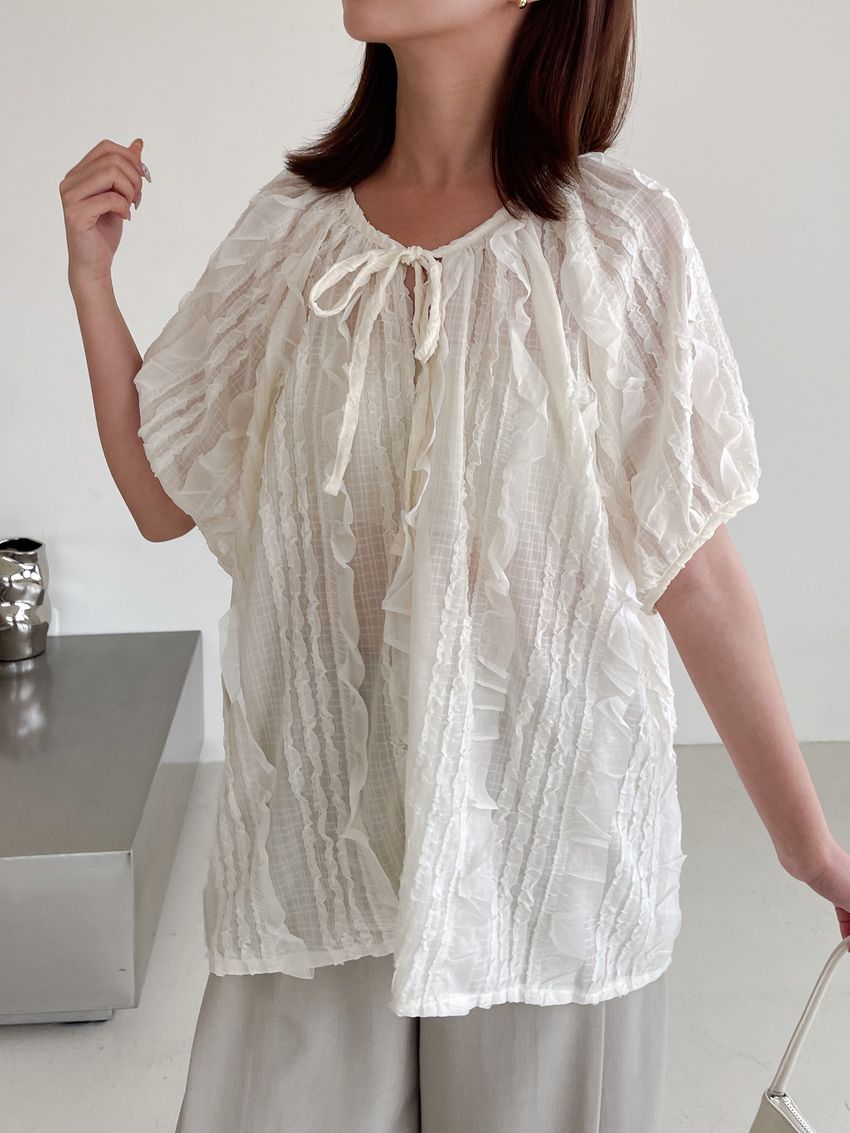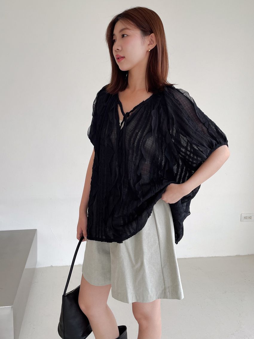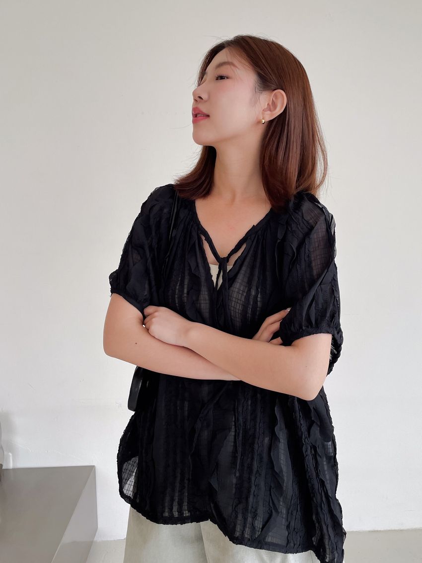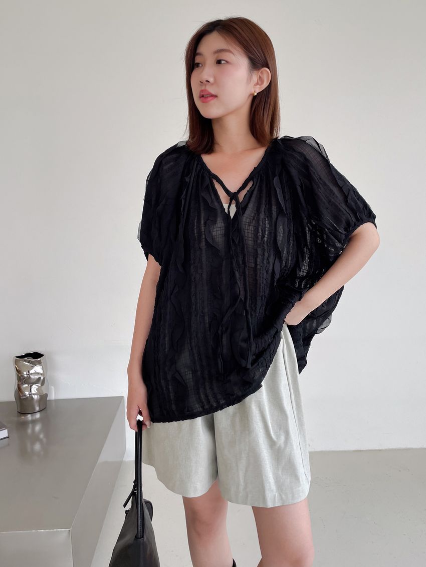 紛飛花紗綁帶領雪紡衫
