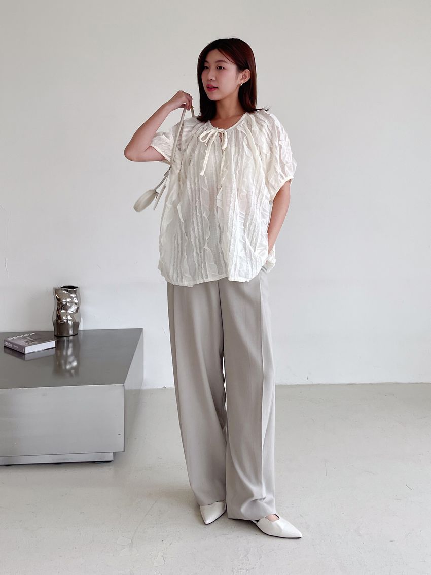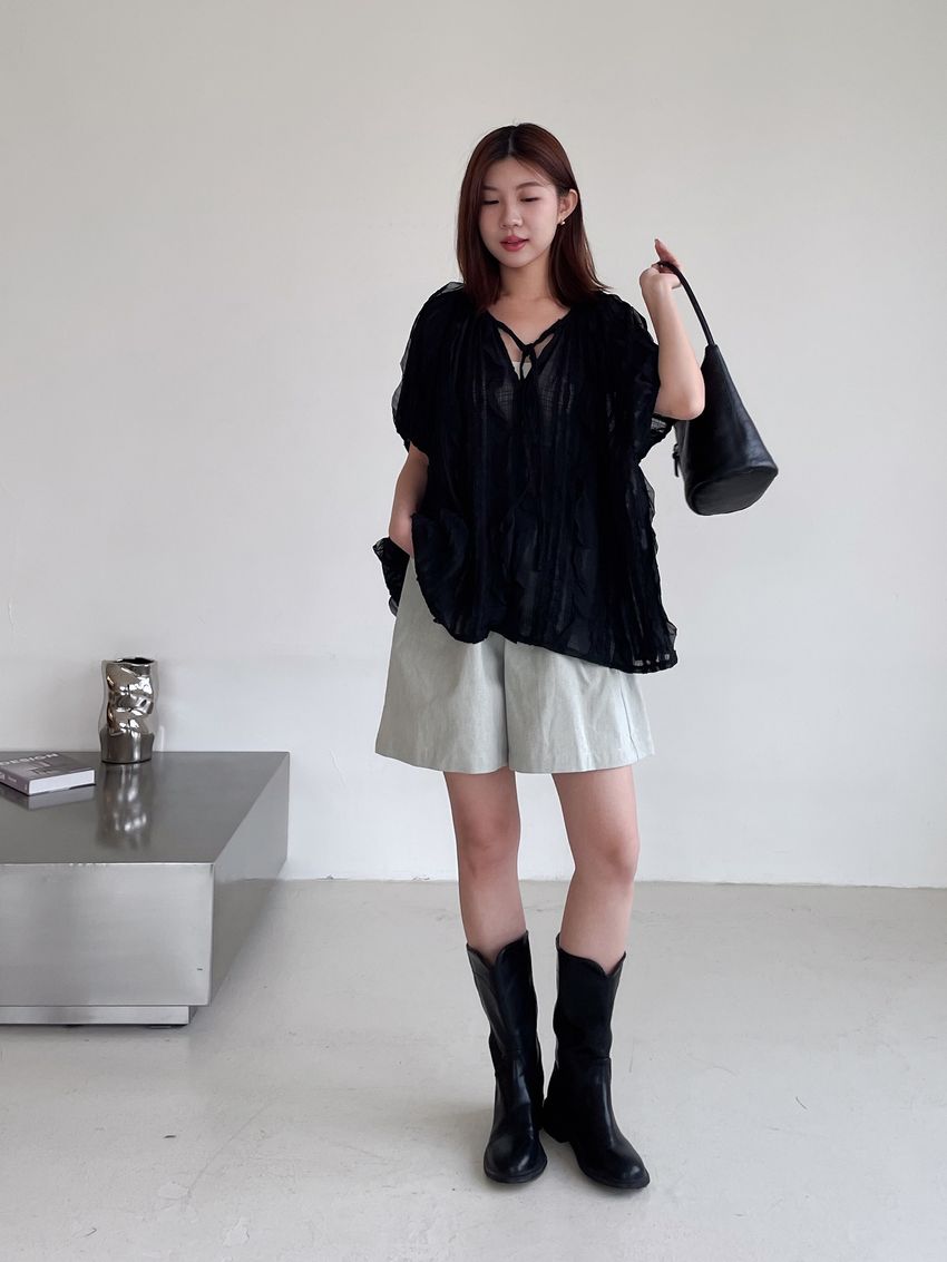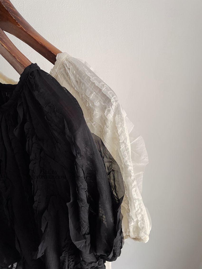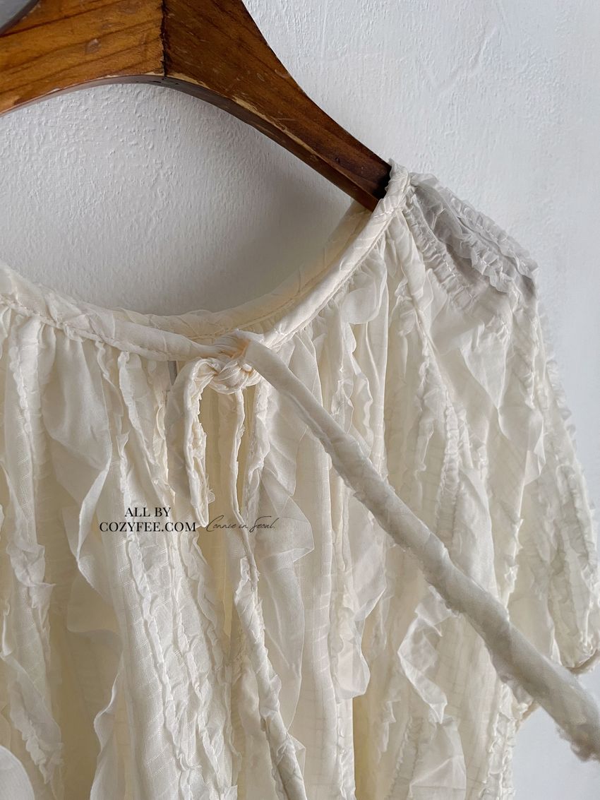 紛飛花紗綁帶領雪紡衫