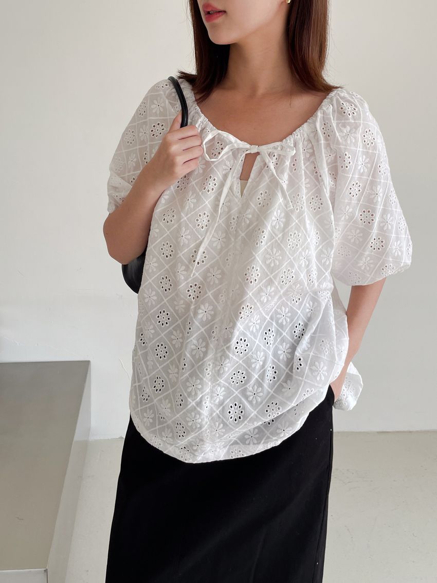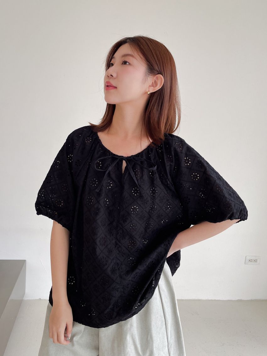 > 方塊花布蕾娃娃衫
