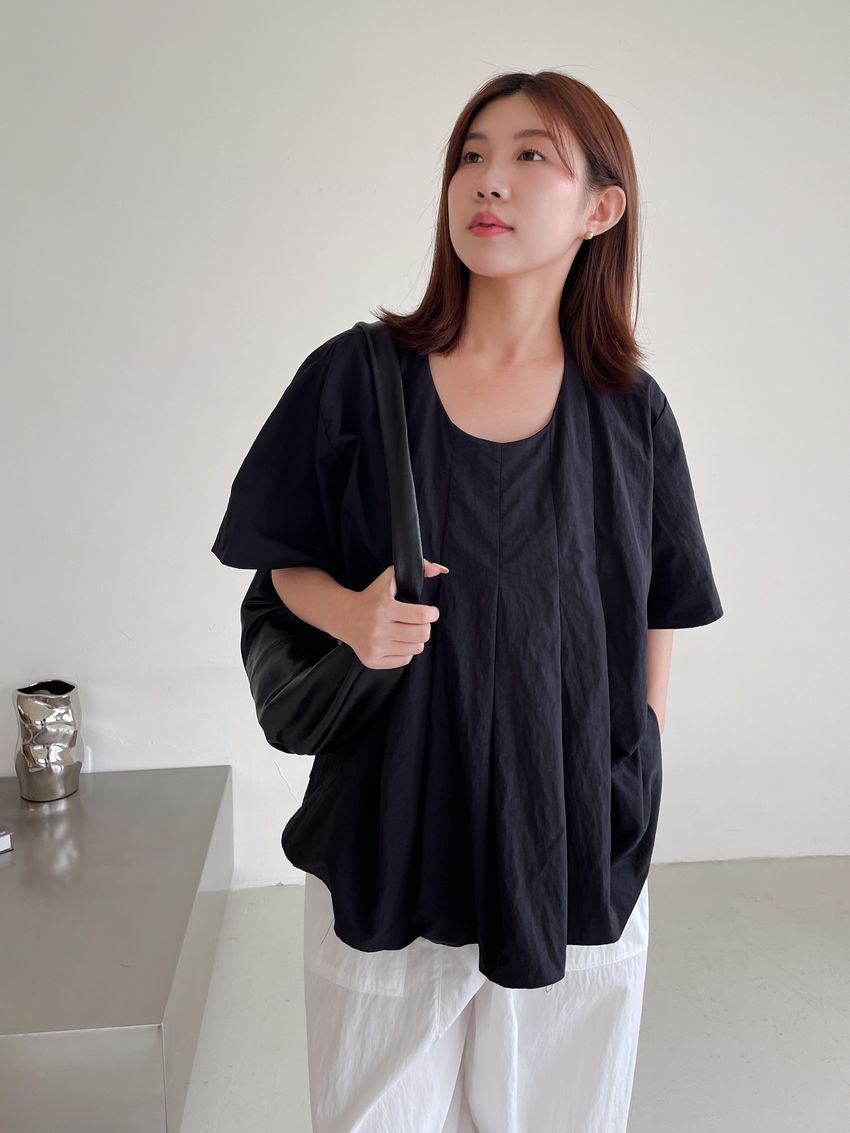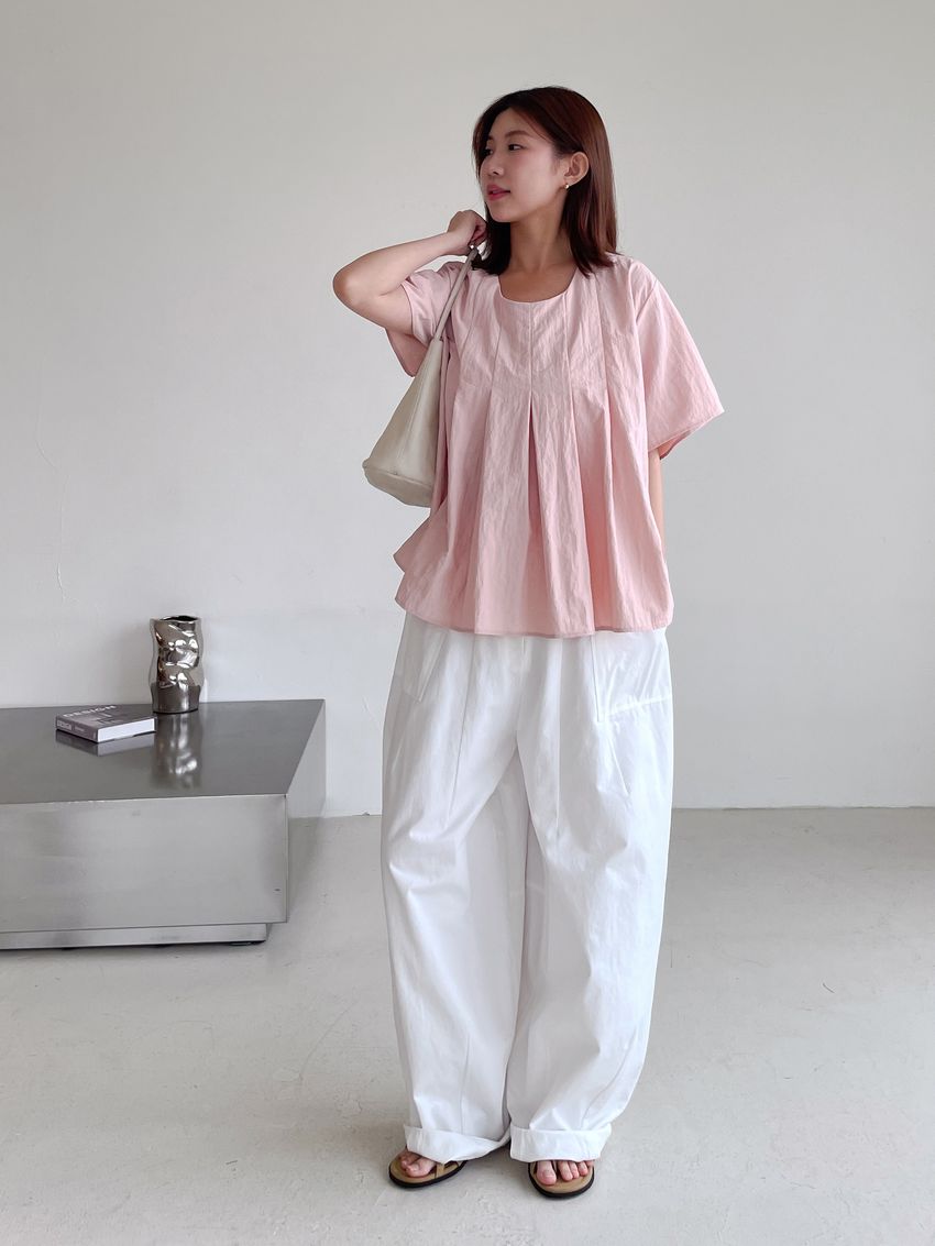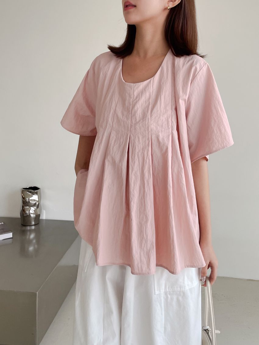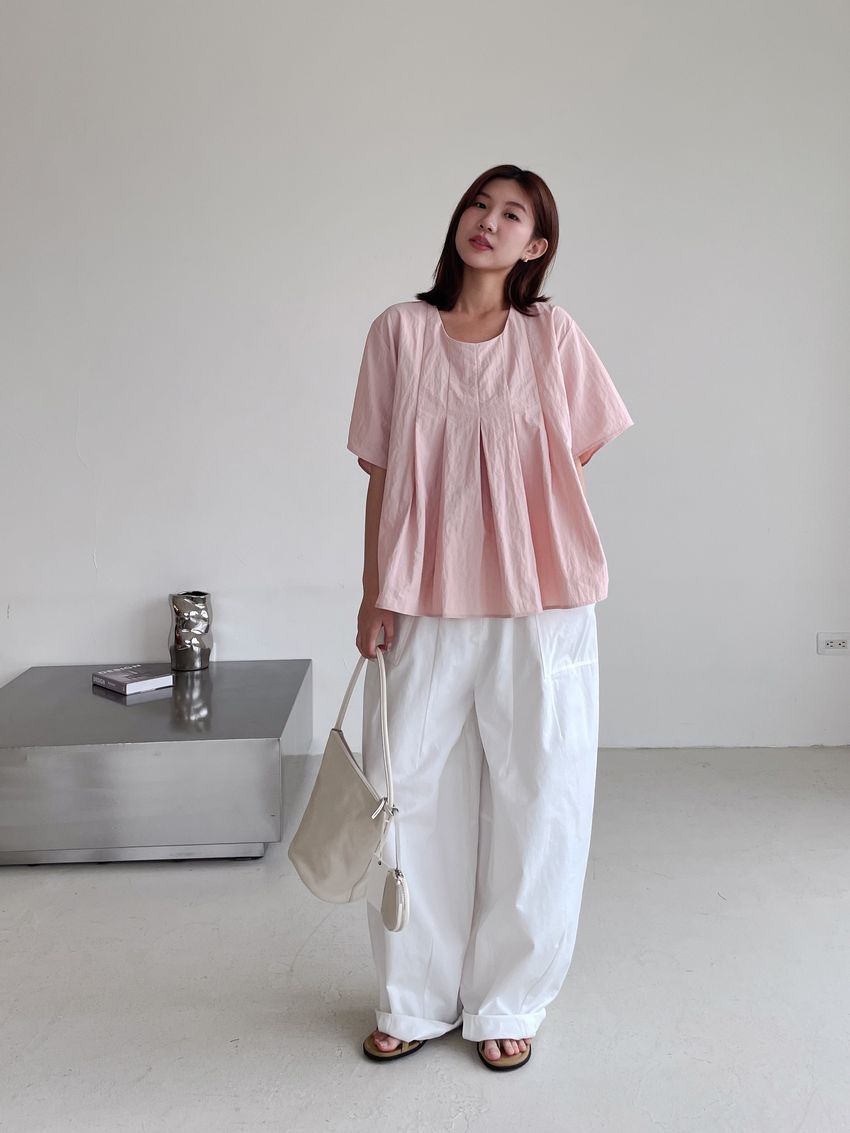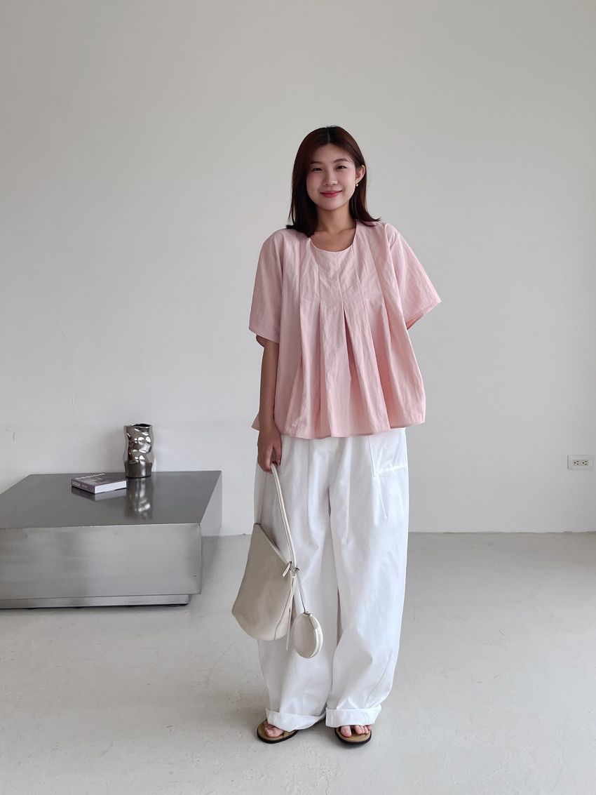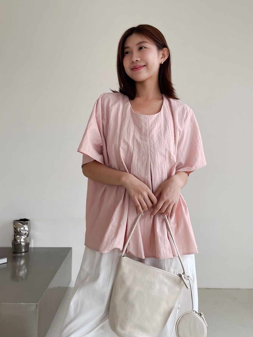 > 前百摺傘擺滑步娃娃衫