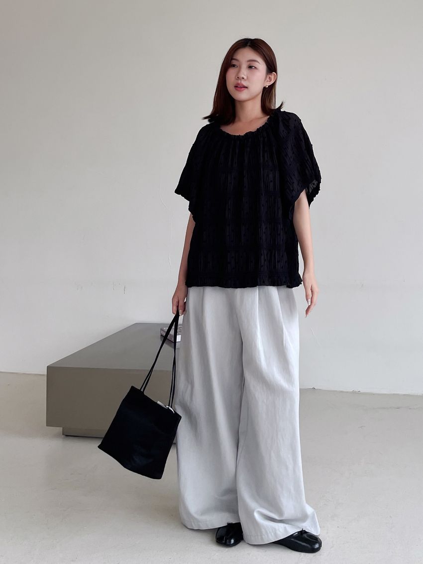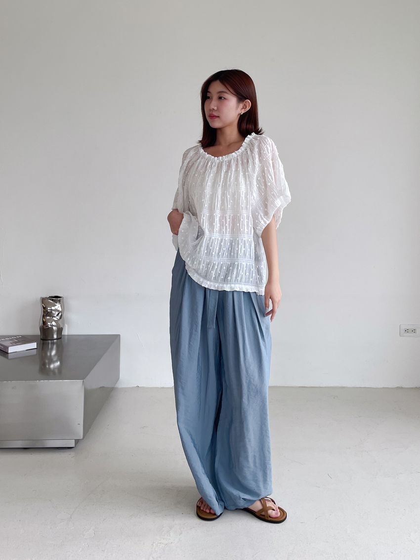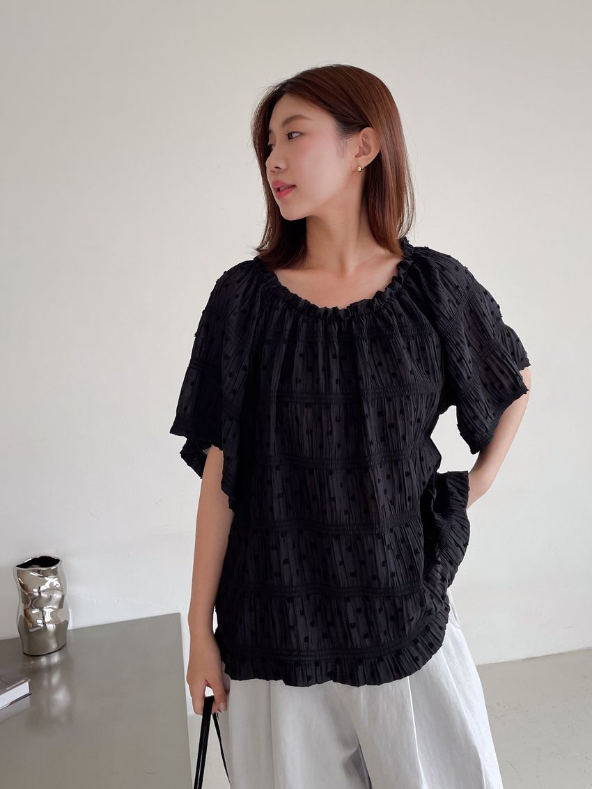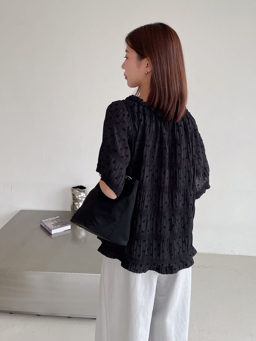 Connie推薦款!植絨點點鬆緊皺折雪紡衫