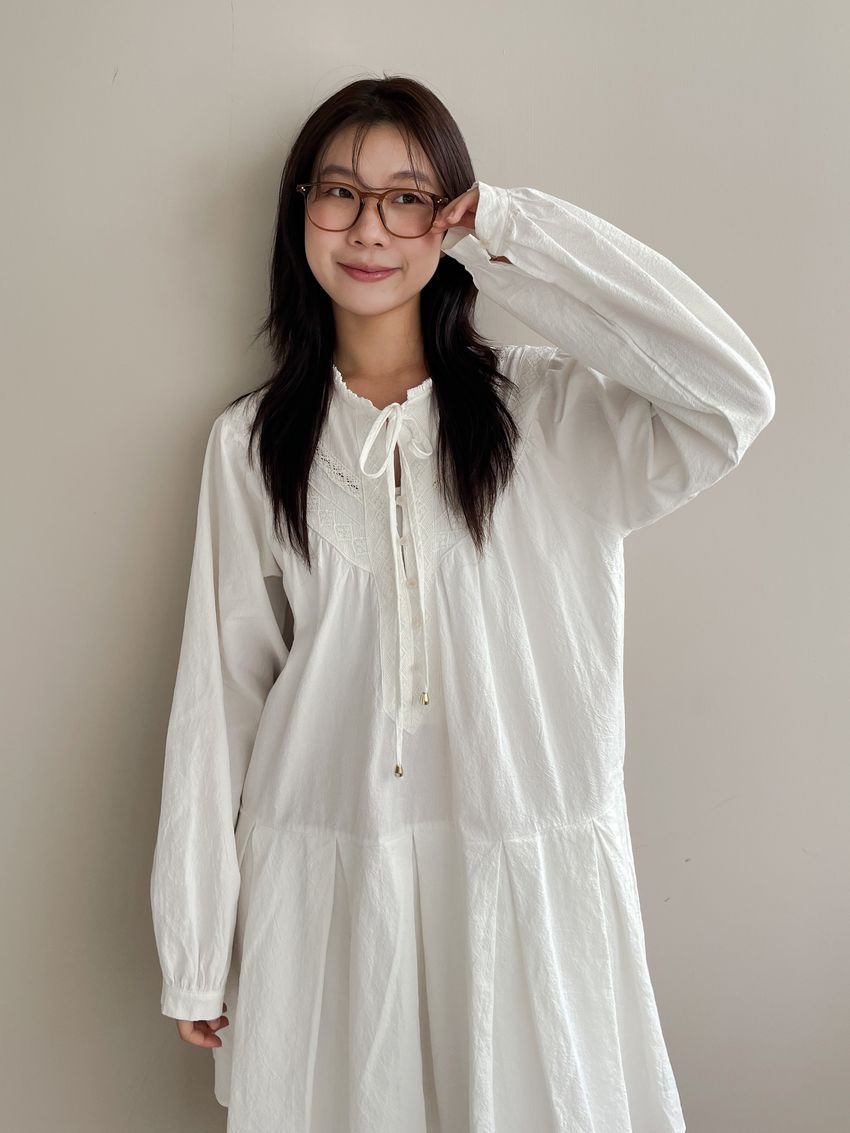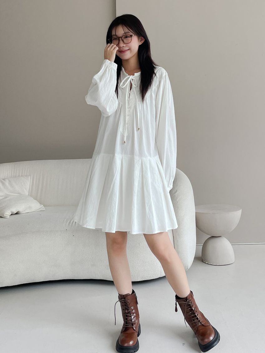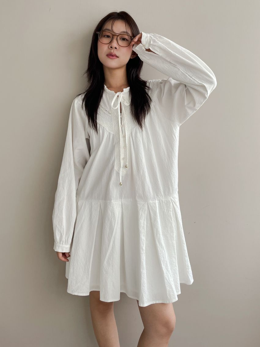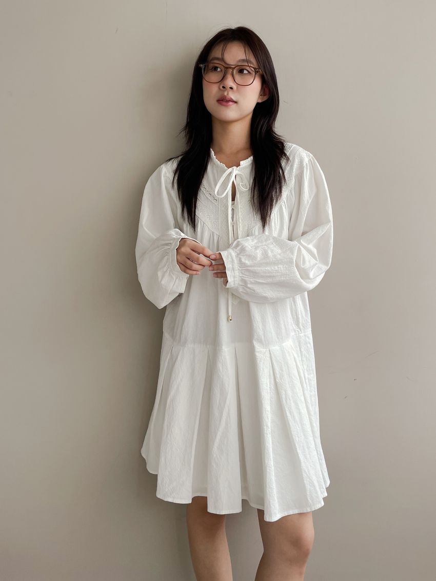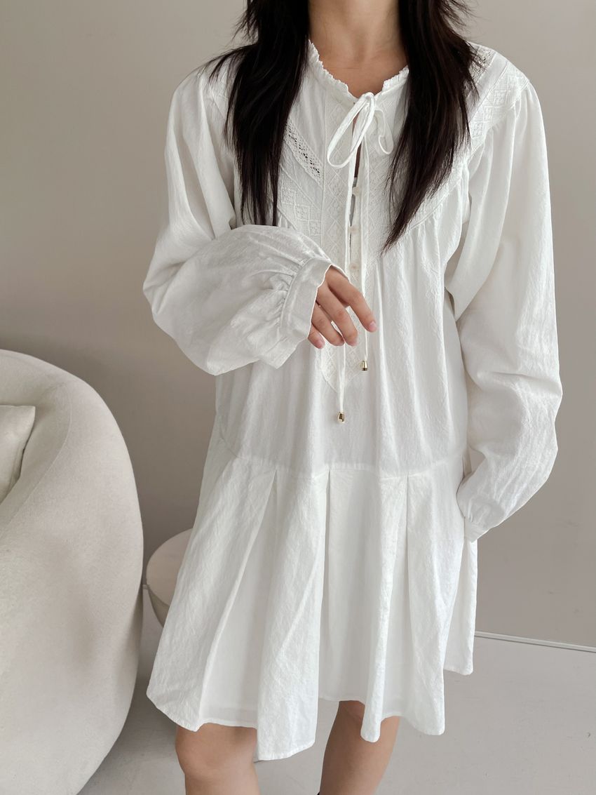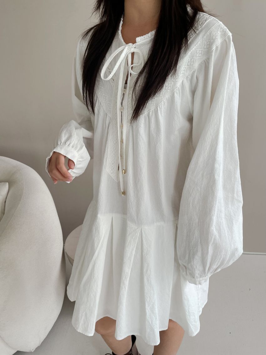 > 潔白蕾絲綁帶短洋裝(直播影片)(特)