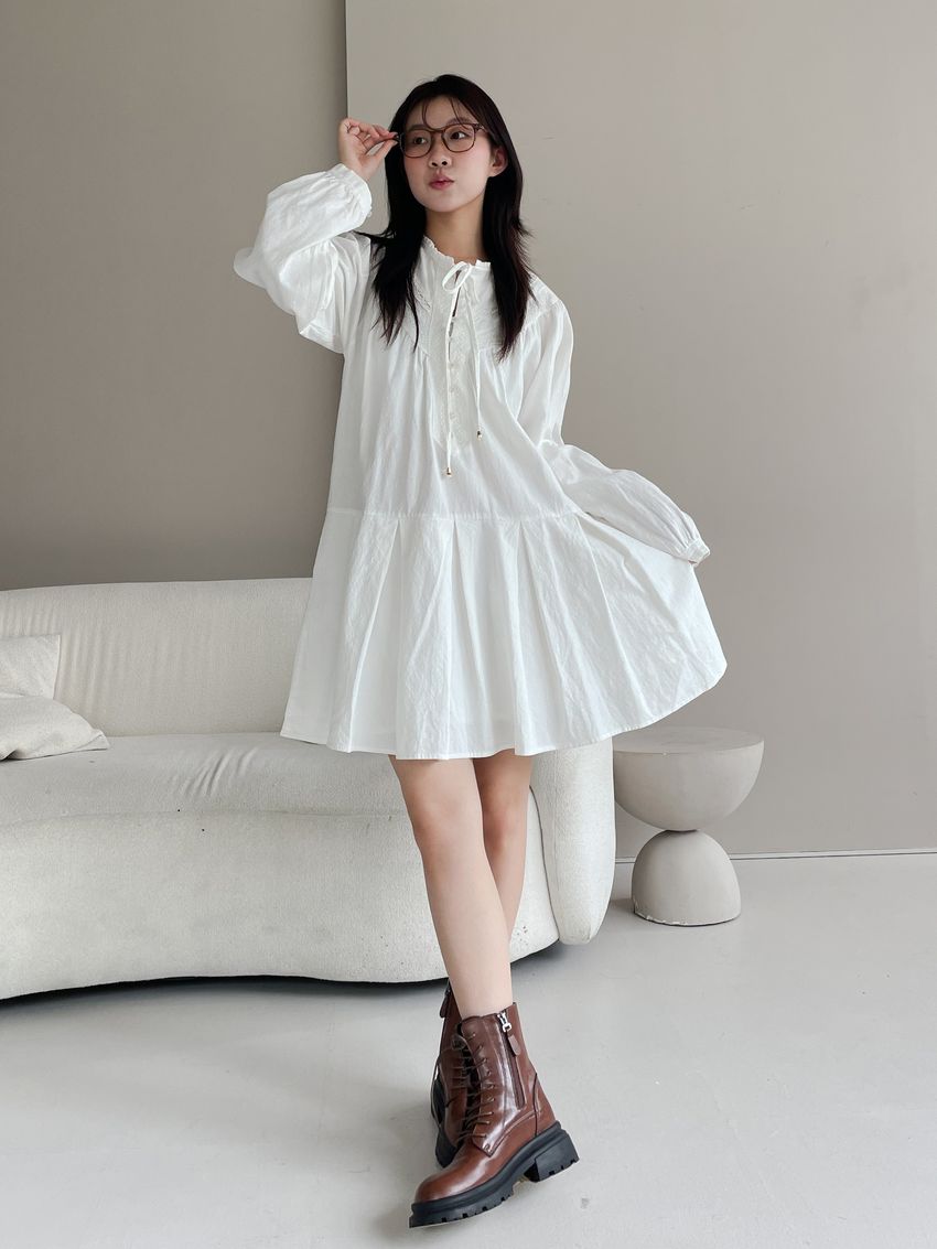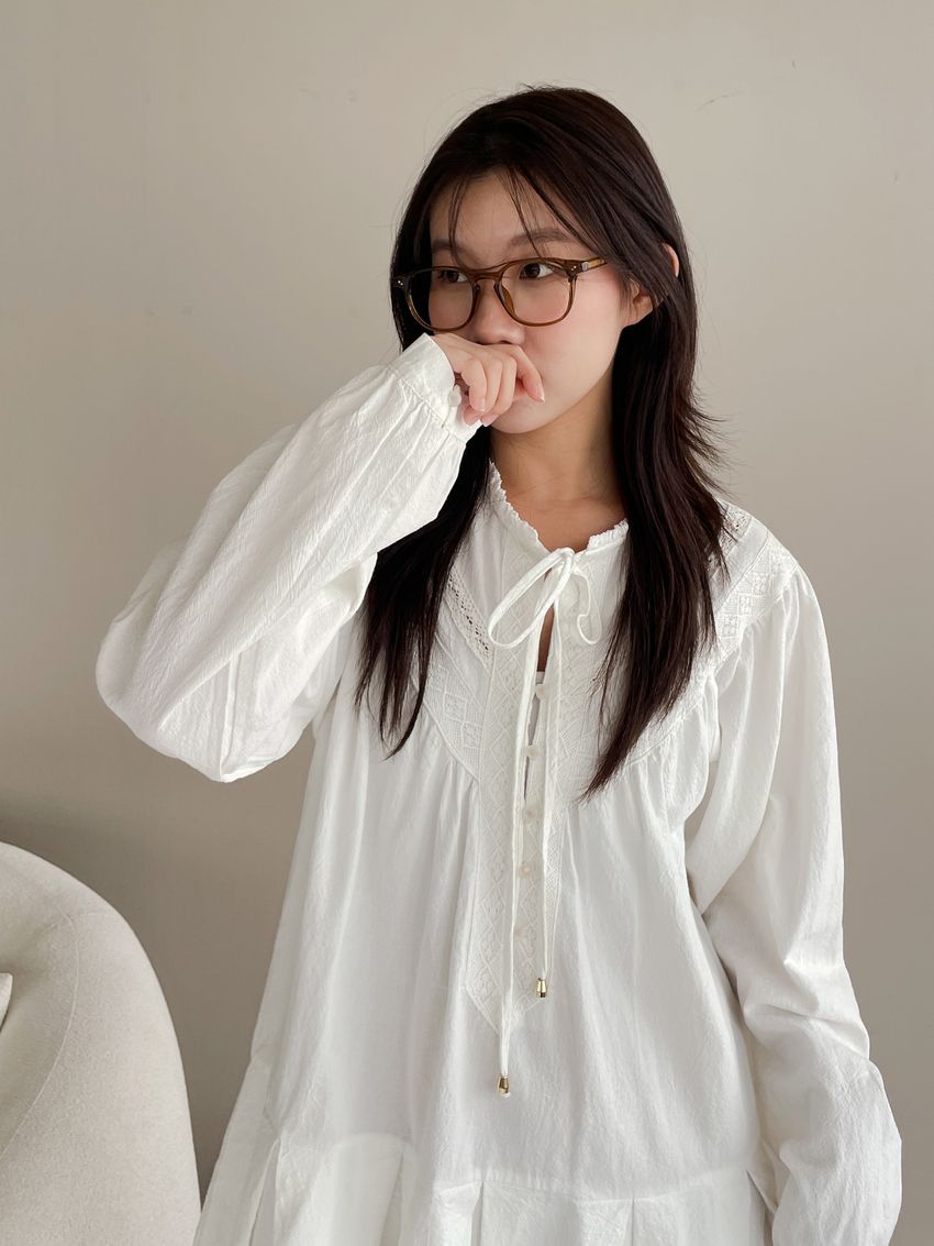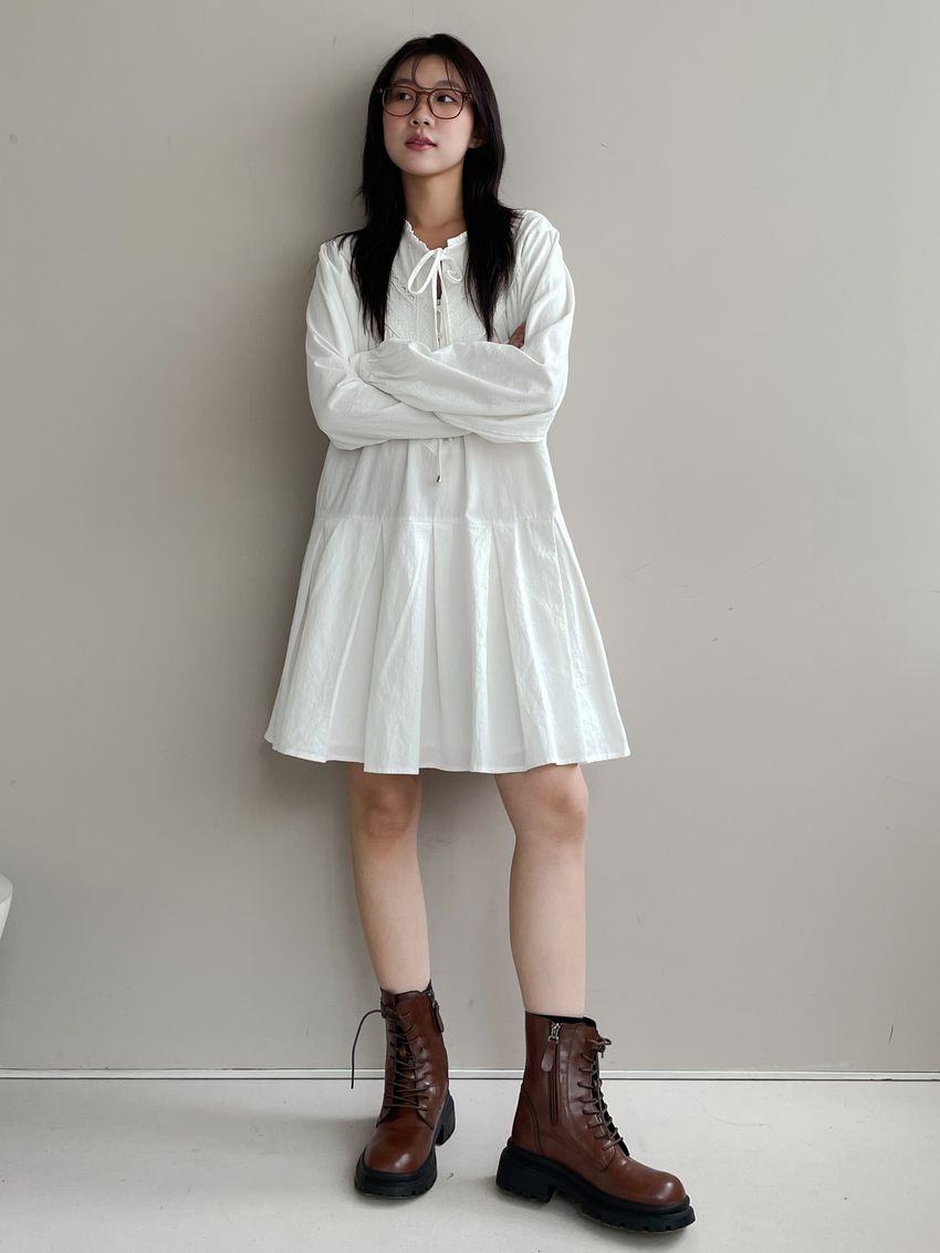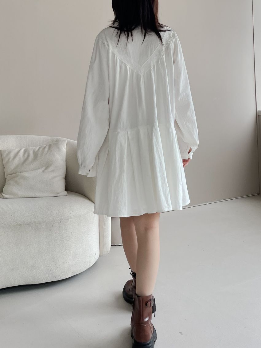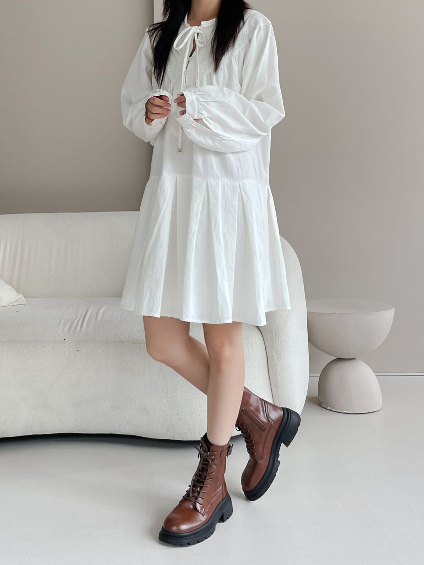 > 潔白蕾絲綁帶短洋裝(直播影片)(特)